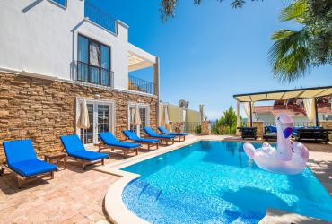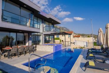 Kalkan’ın Kalamar Mevkiisin de yer alan villamiz.11 kişi kapasiteli villamızın 5 yatak odası ve her yatak odasında ebeveyn banyosu mevcuttur. Açık mutfaklı modern ve kullanışı açısından rahat edebileceğiniz imkânlar olup lüks ve konforlu salona sahiptir. Salondan havuz başına doğrudan çıkış bulunmaktadır. Kendinizi güvende hissedebileceğiniz, sevdiklerinizle huzur dolu keyifli zaman geçirip dilerseniz havuz başında güneşlenerek, hoş sohbetler ederek güzel anılar biriktirebilirsiniz. Geniş aileler arkadaş gruplar için ideal bir villadır.