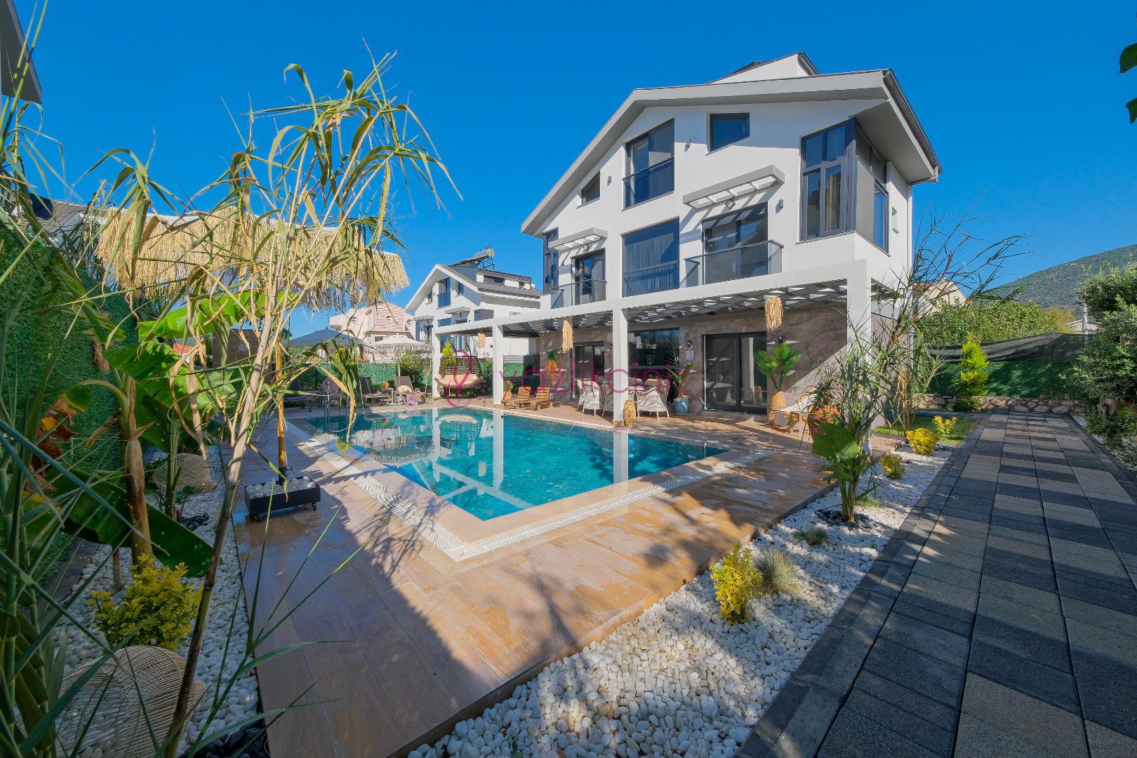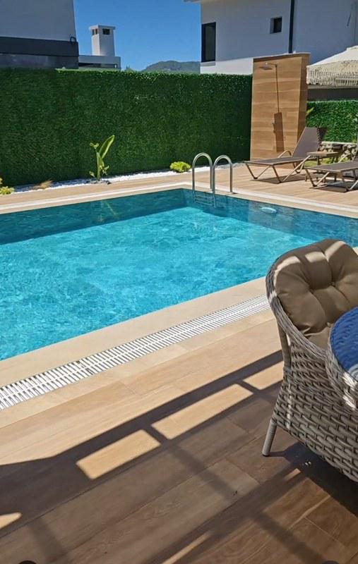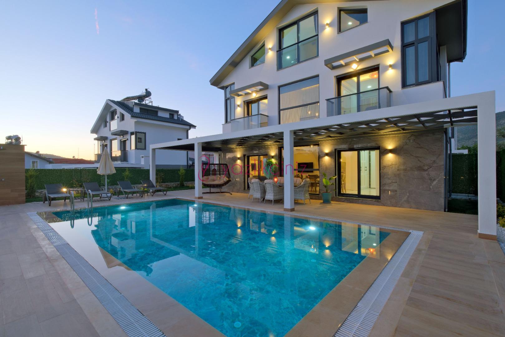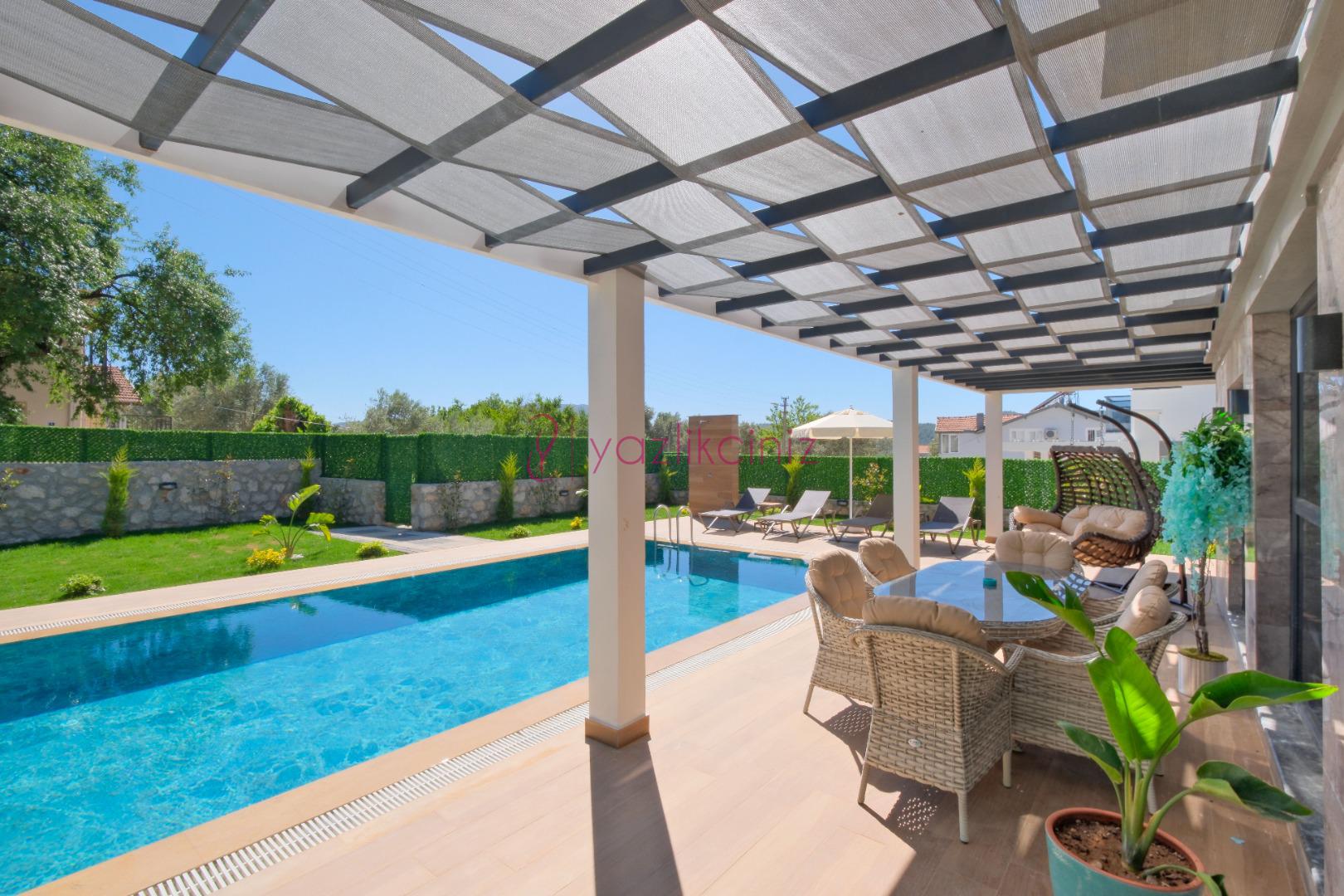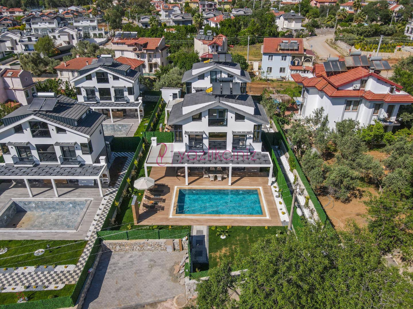 Villanın güneşlenme terası ve havuzunun dış taraftan görünmemesi için gerekli önlemler alınmıştır fakat villanın diğer bölümlerinin görünürlüğü kesin olarak garanti edilememektedir.