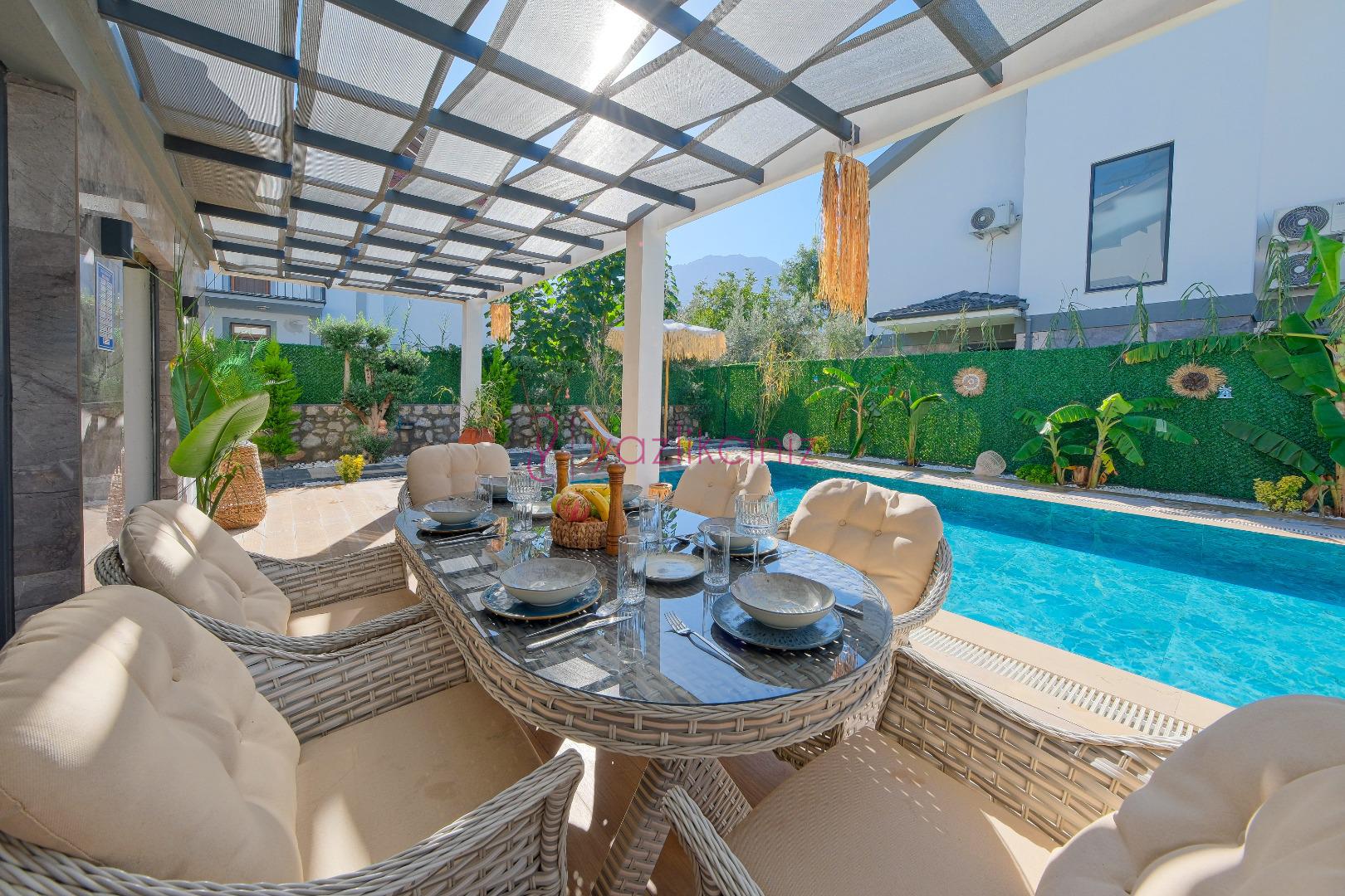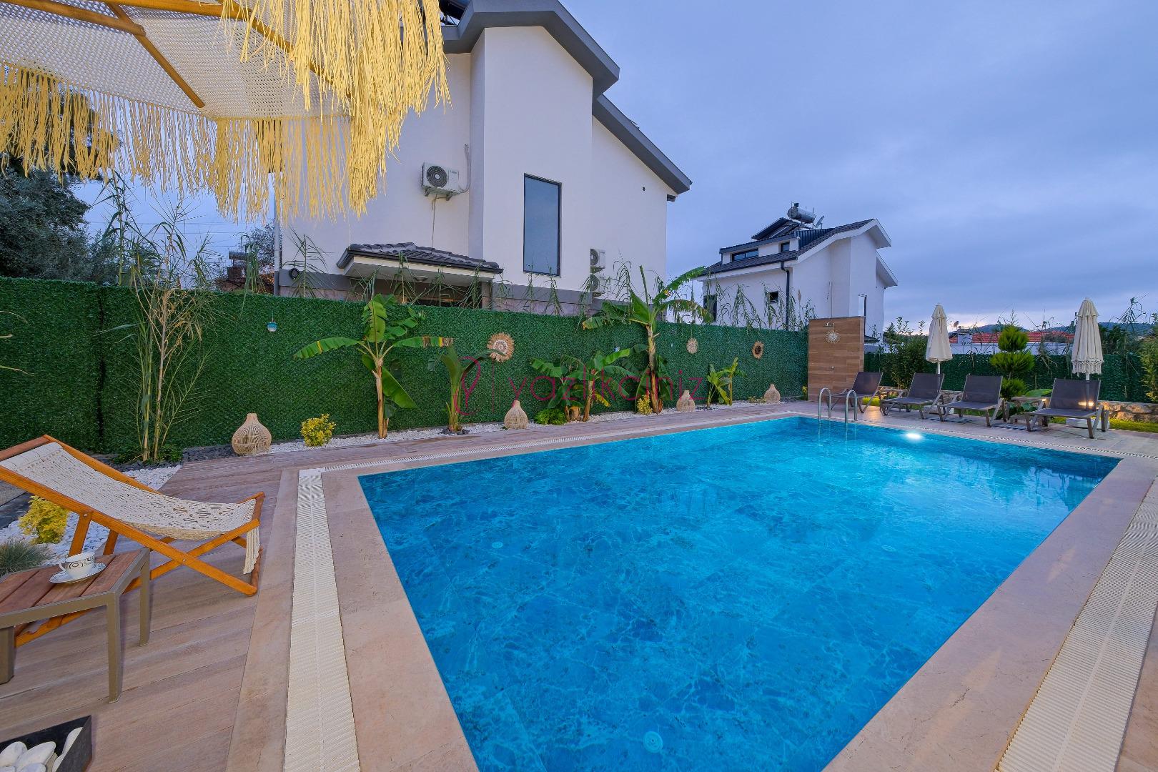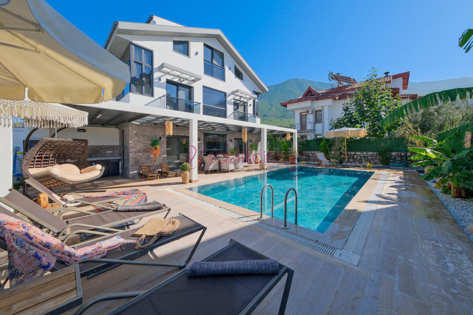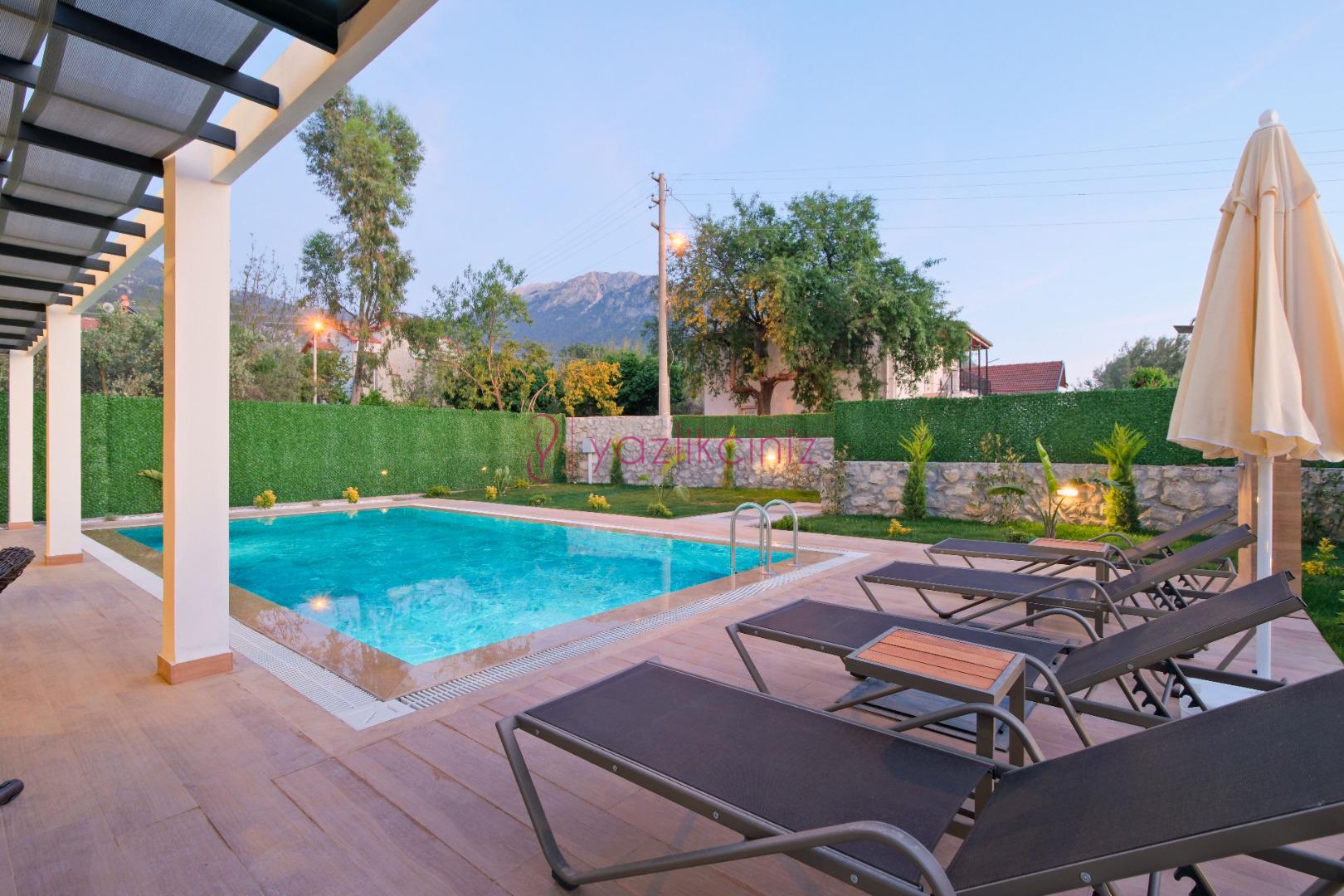 Fethiye Ovacık bölgesinde yer alan Villa Alya Ovacık, 6 kişi kapasiteli 3 yatak odalıdır. Geniş bahçe alanı, özel yüzme havuzu bulunan villamız Ölüdeniz bölgesine 5 km mesafede yer almaktadır. Villamızda geniş aileler ve arkadaş grubunuz ile konaklama sağlayabilirsiniz. Yemyeşil bahçe içerisinde yılın yorgunluğunu atabilir, sevdikleriniz ile unutulmaz tatil anıları biriktirebilirsiniz.