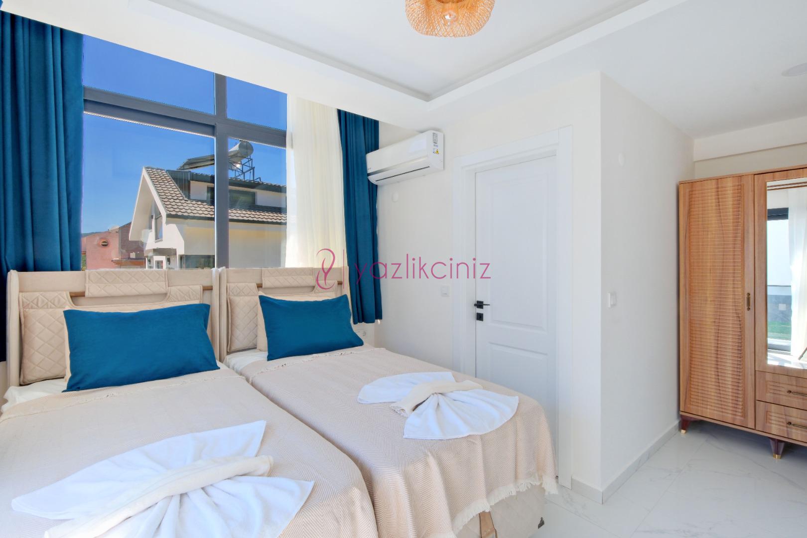 2.Yatak Odası: 2 adet tek kişilik yatak, komodin, klima, elbise dolabı, bebek yatağı, tuvalet ve banyo bulunmaktadır. (Birinci kat)