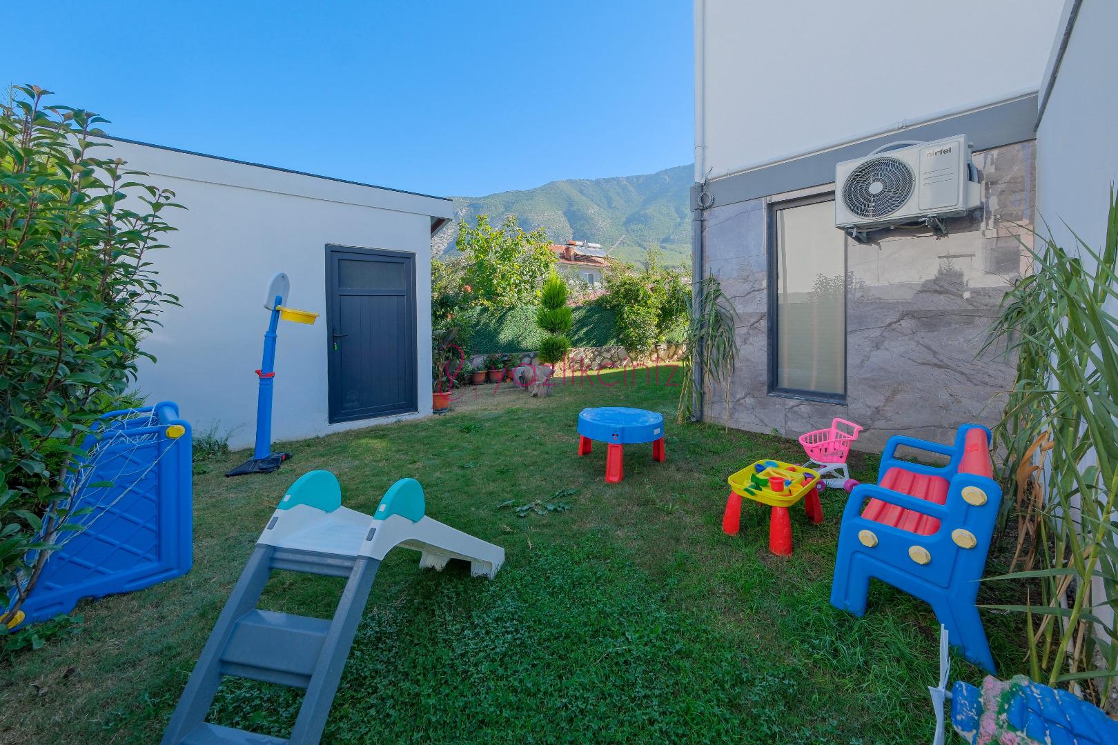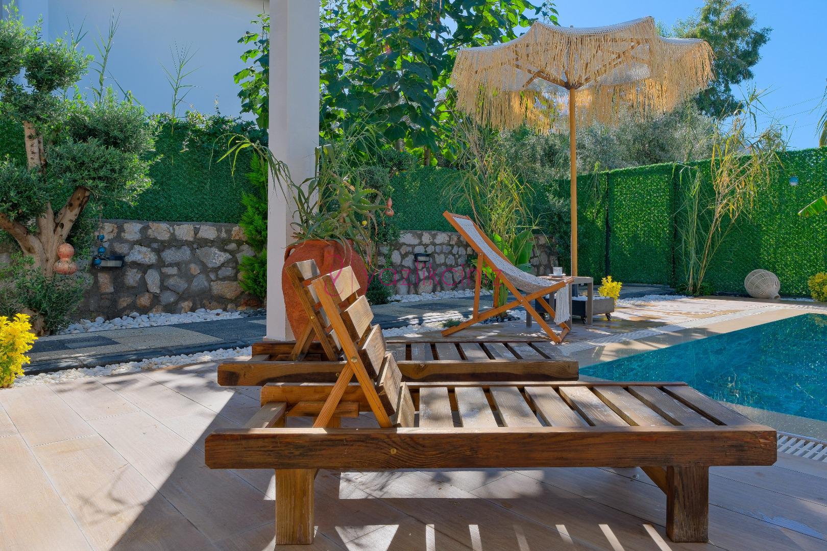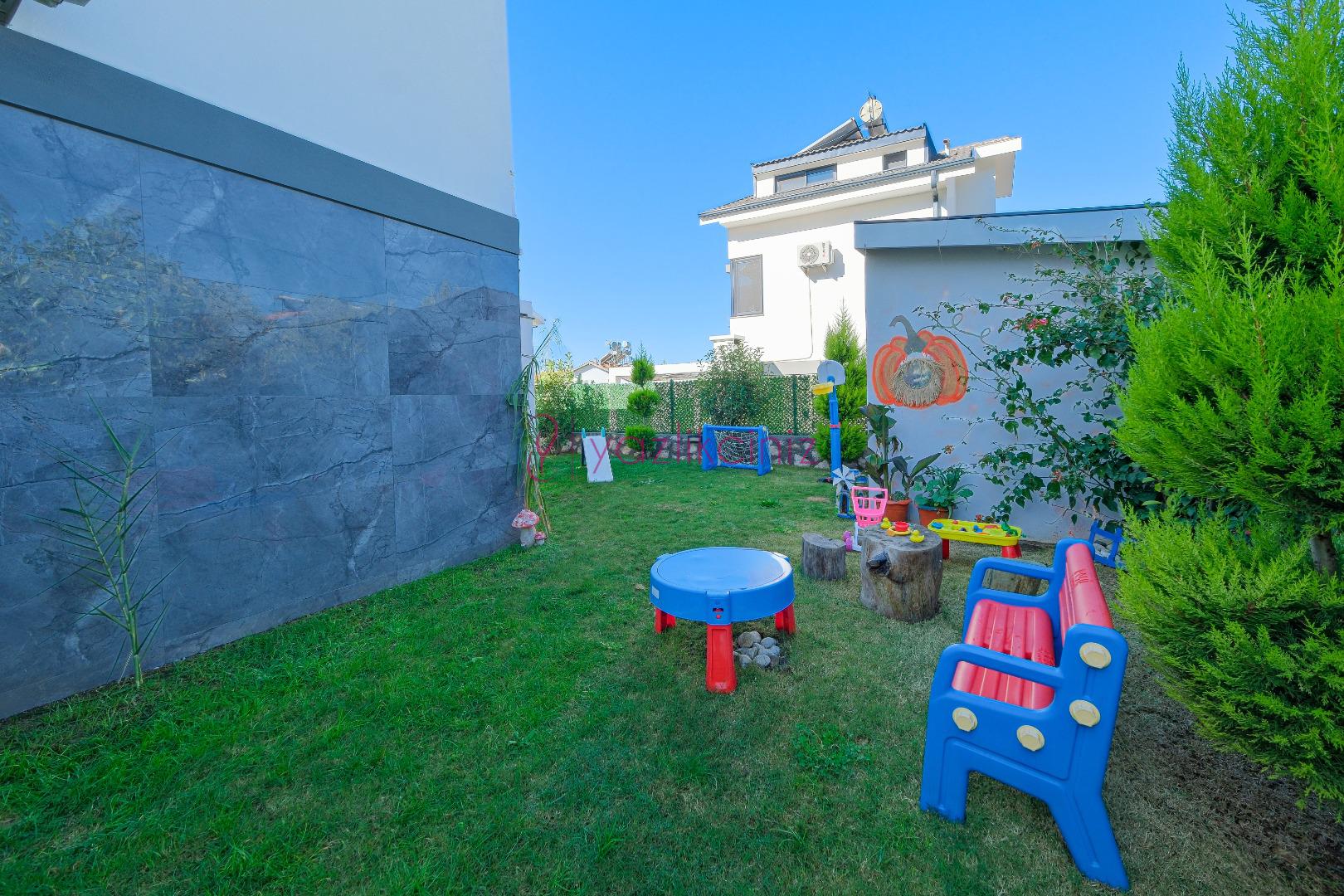 Bahçe alanı içerisinde şezlong, oturma grubu, yemek masası, barbekü, salıncak bulunmaktadır.