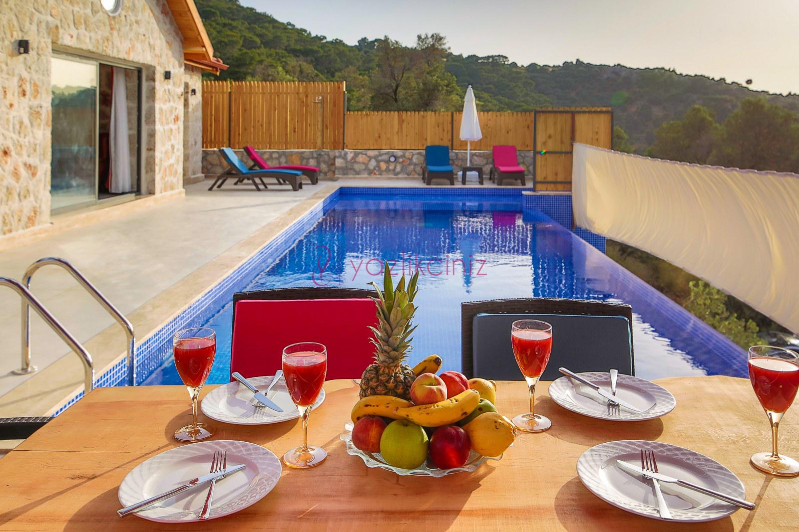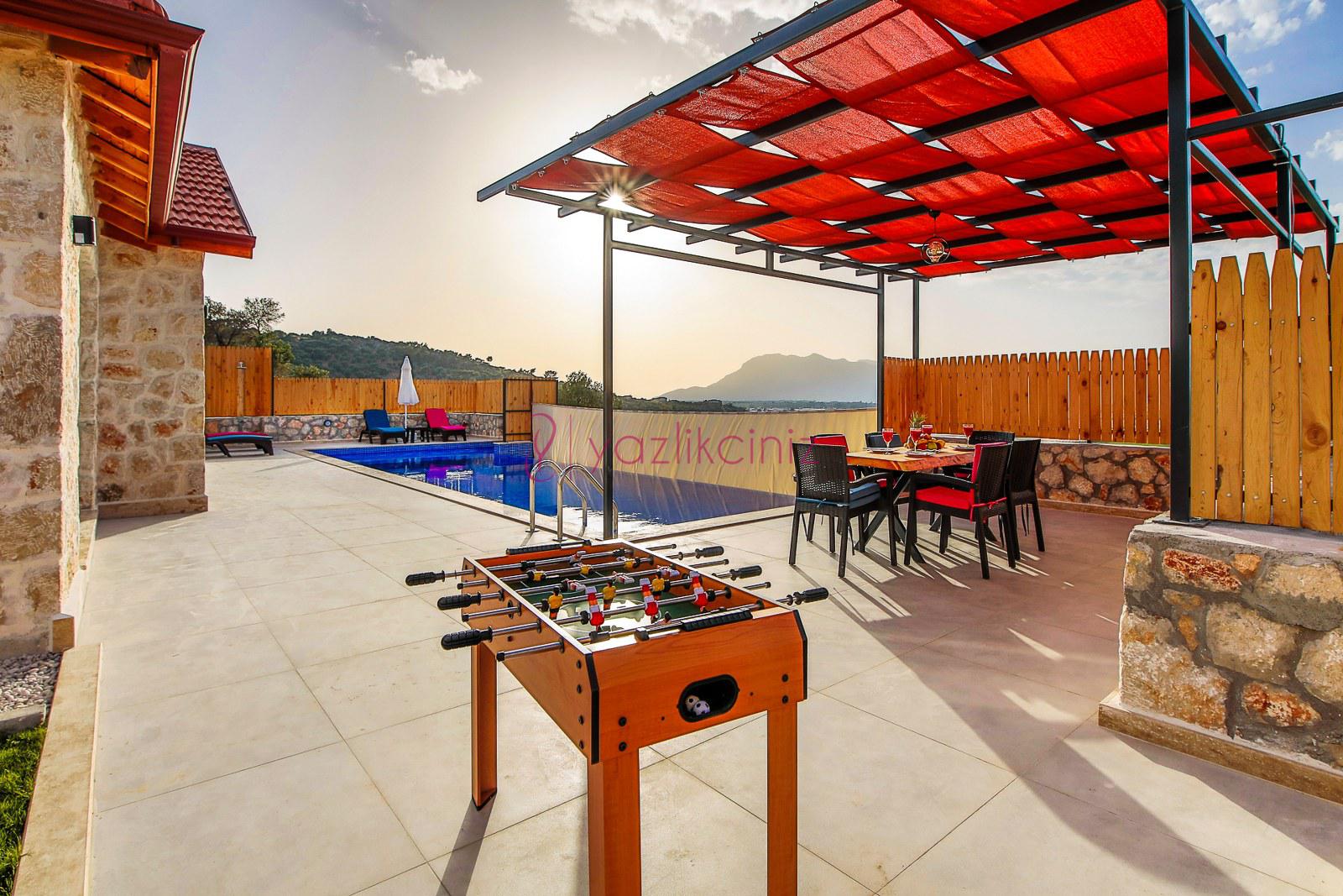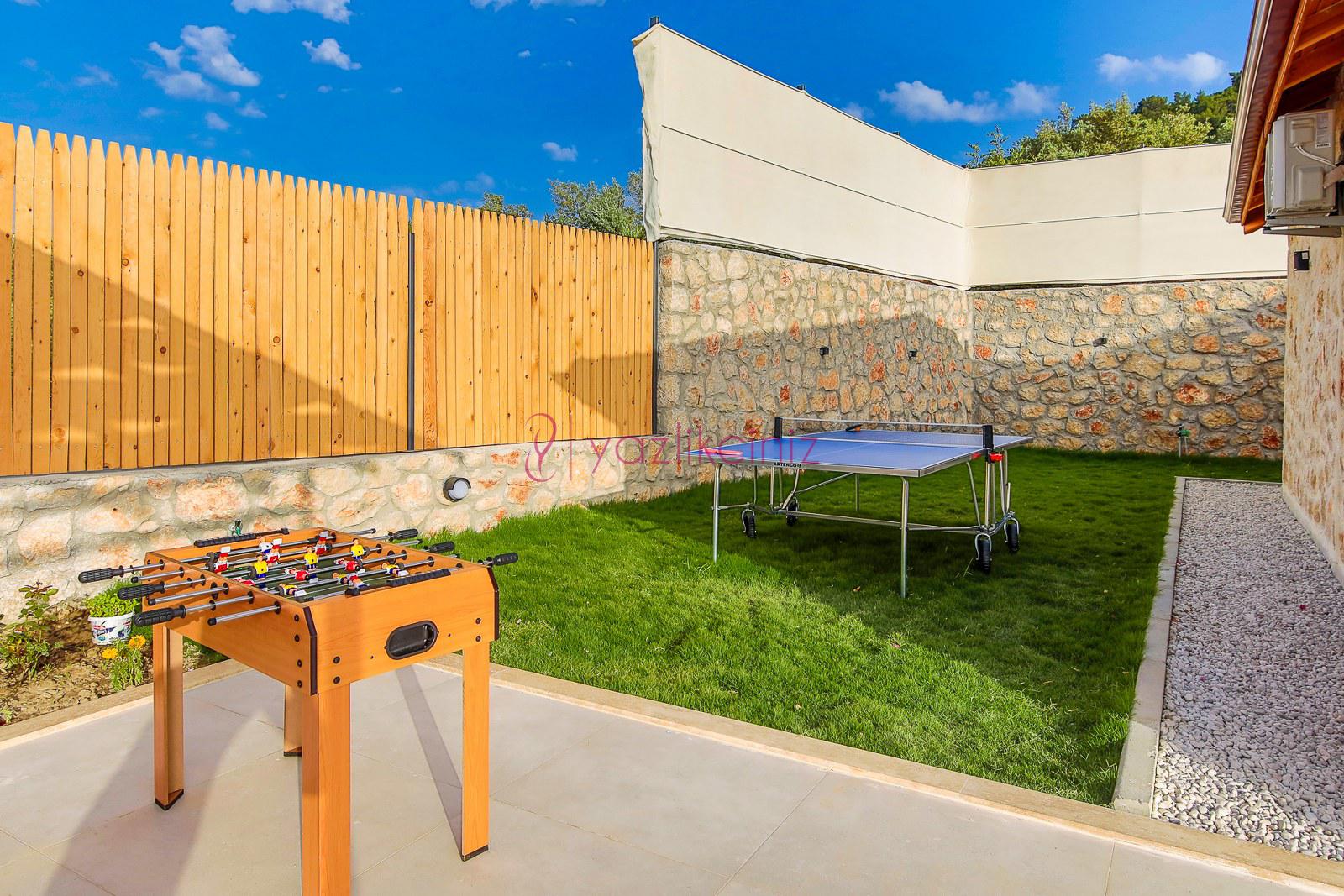 Özel Bahçe, Özel Yüzme Havuzu, Güneşlenme Alanı, 4 Adet Şezlong, Şemsiye, Oturma Grubu, 4 Kişilik Yemek Masası, Barbekü bulunmaktadır.