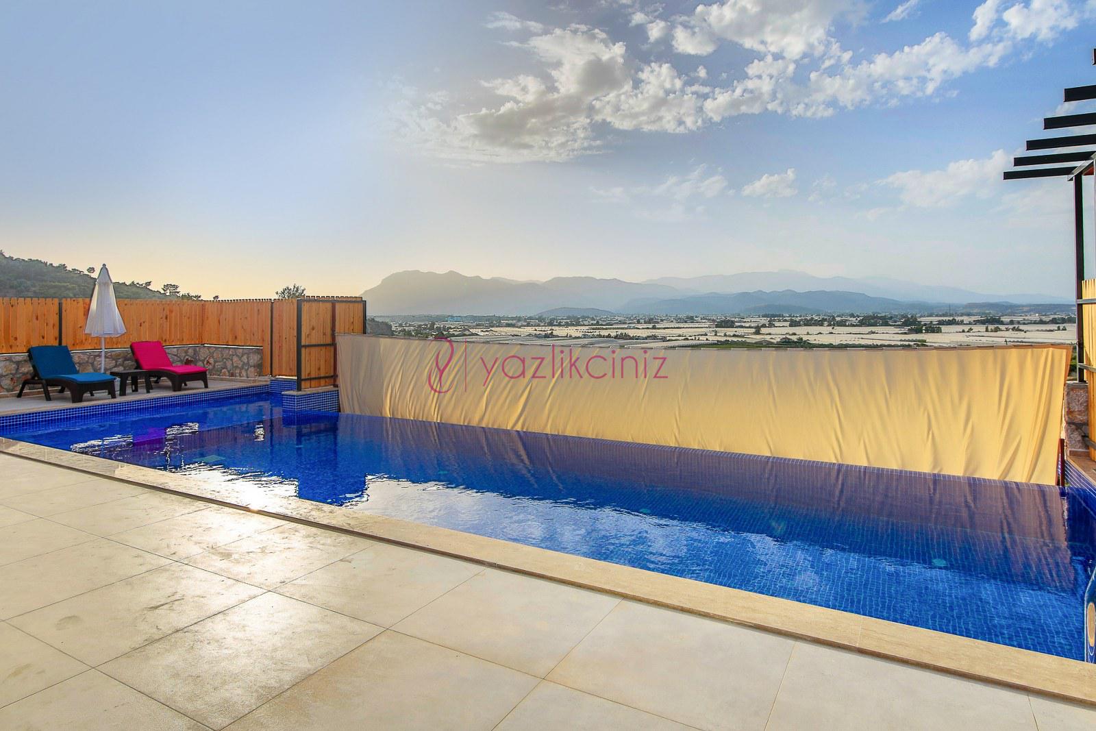 Villanın güneşlenme terası ve havuzunun dış taraftan görünmemesi için gerekli önlemler alınmıştır, fakat villanın diğer bölümlerinin görünürlüğü kesin olarak garanti edilememektedir.