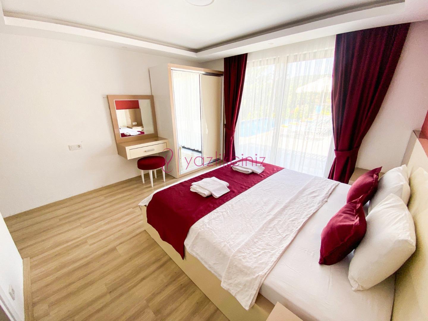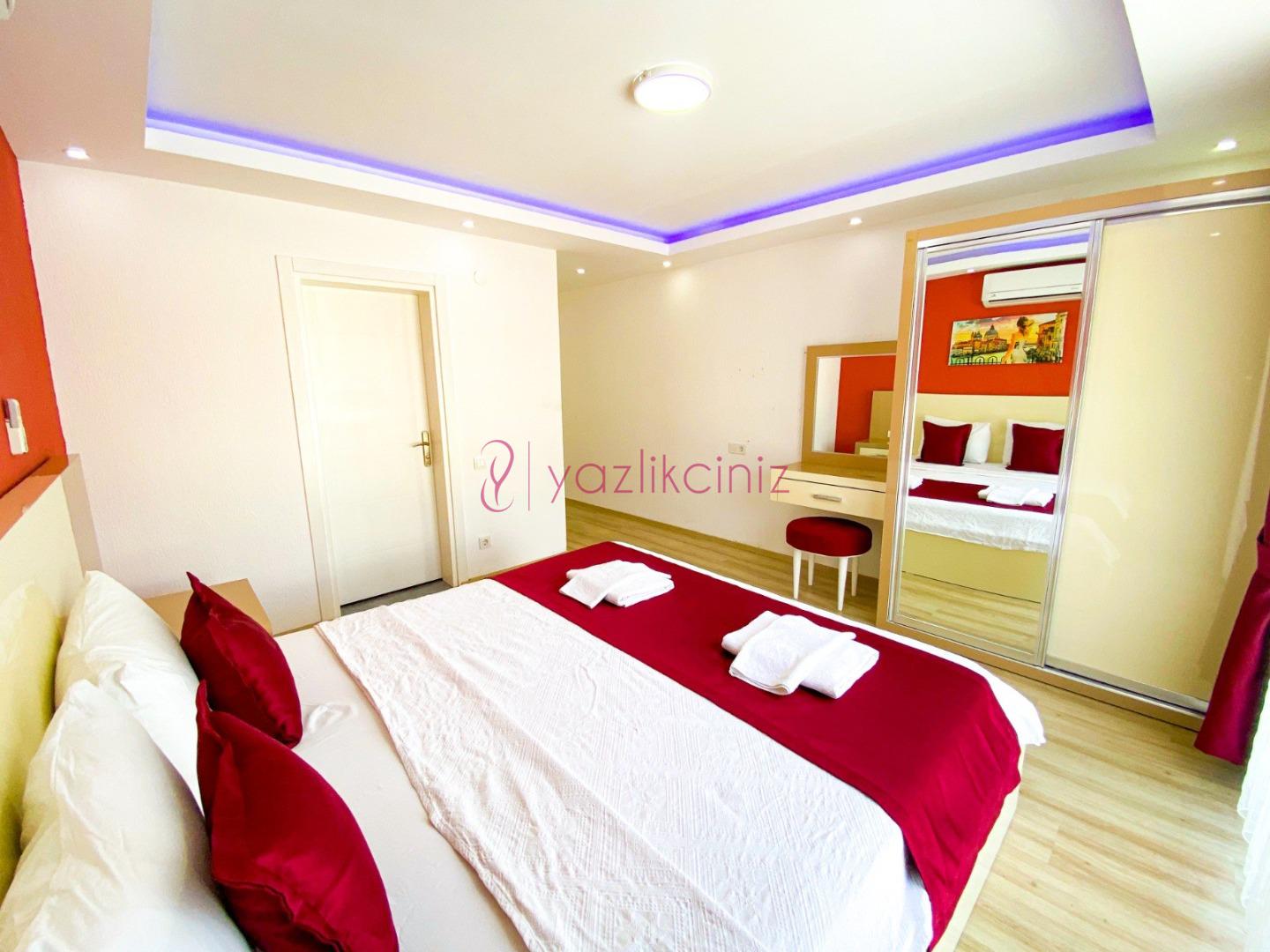 Yatak Odası 2 : 1 adet çift kişilik yatak, komodin, makyaj masası, televizyon, klima tuvalet ve banyo bulunmaktadır.