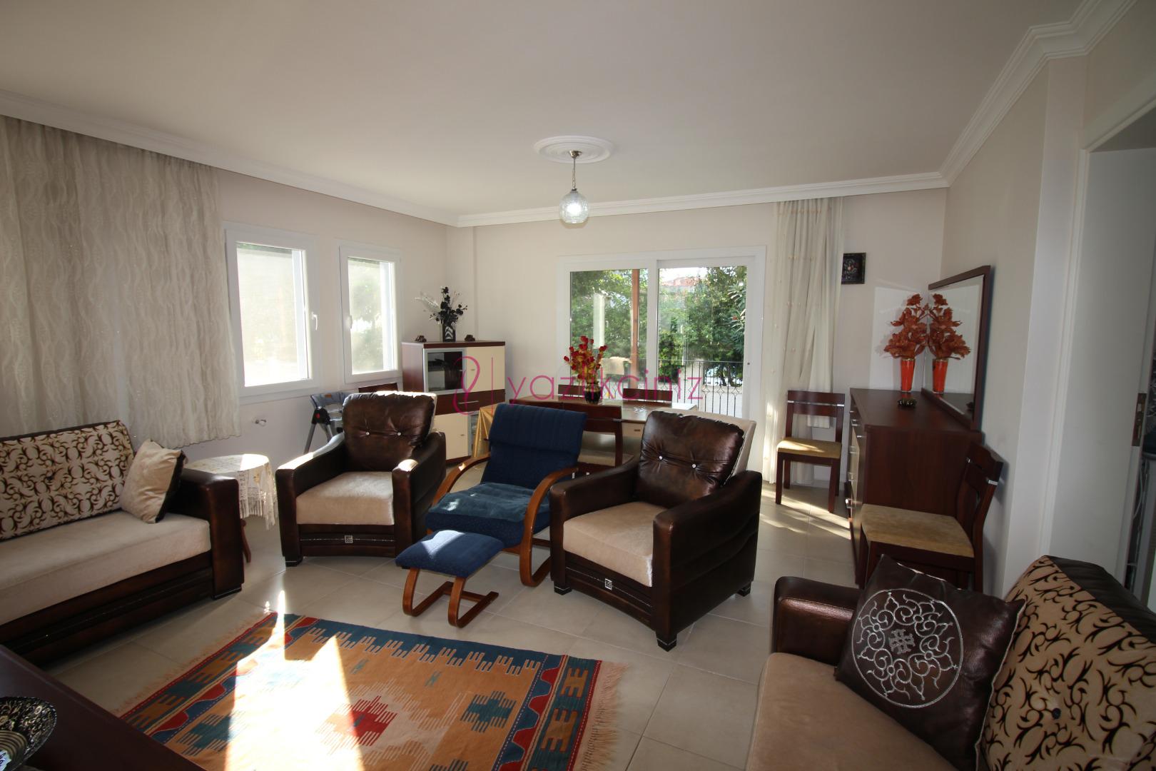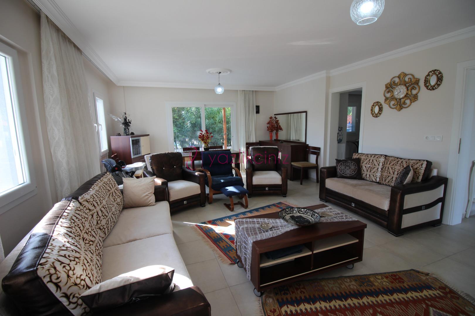 Oturma grubu, televizyon, orta sehpa, klima, yemek masası, internet, Havuz terasına çıkış bulunmaktadır.