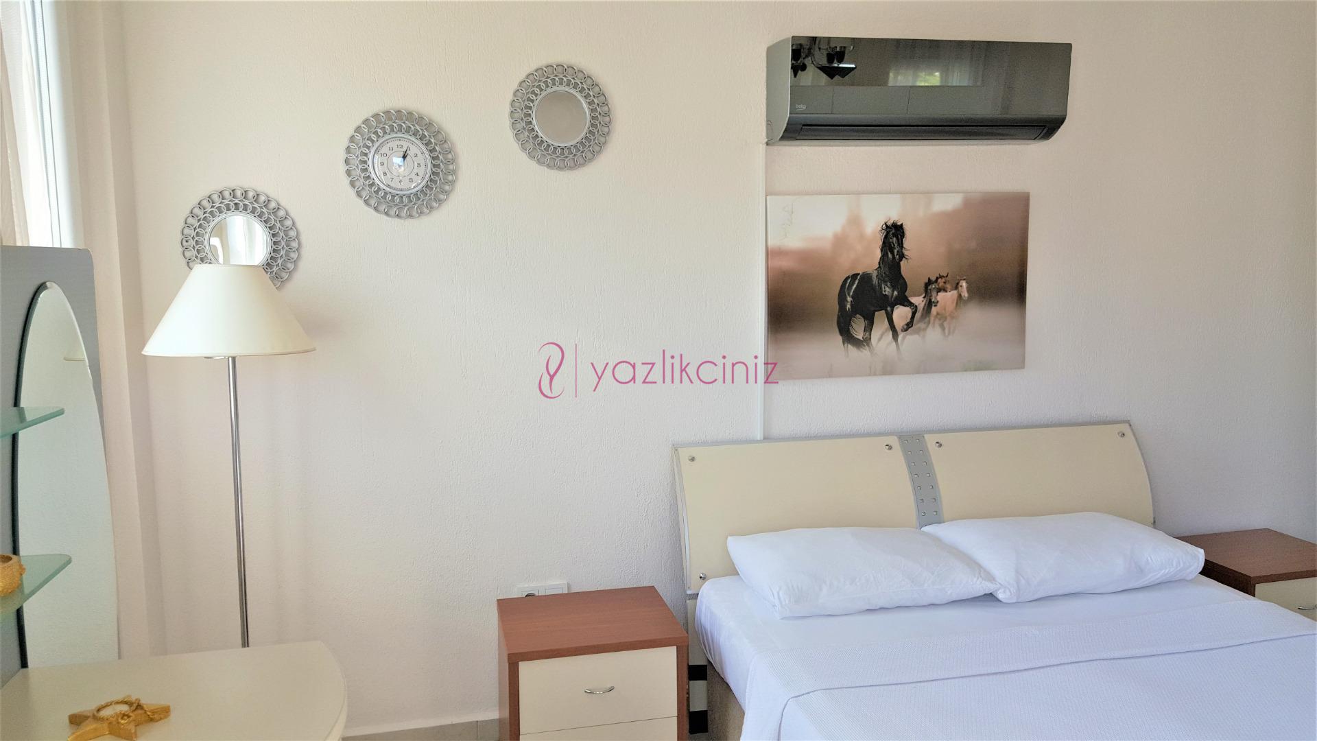 1.Yatak odası: Çift kişilik yatak odası , elbise dolabı, klima, komidin, makyaj masası, banyo ve tuvalet bulunmaktadır. Balkona çıkış bulunmaktadır.