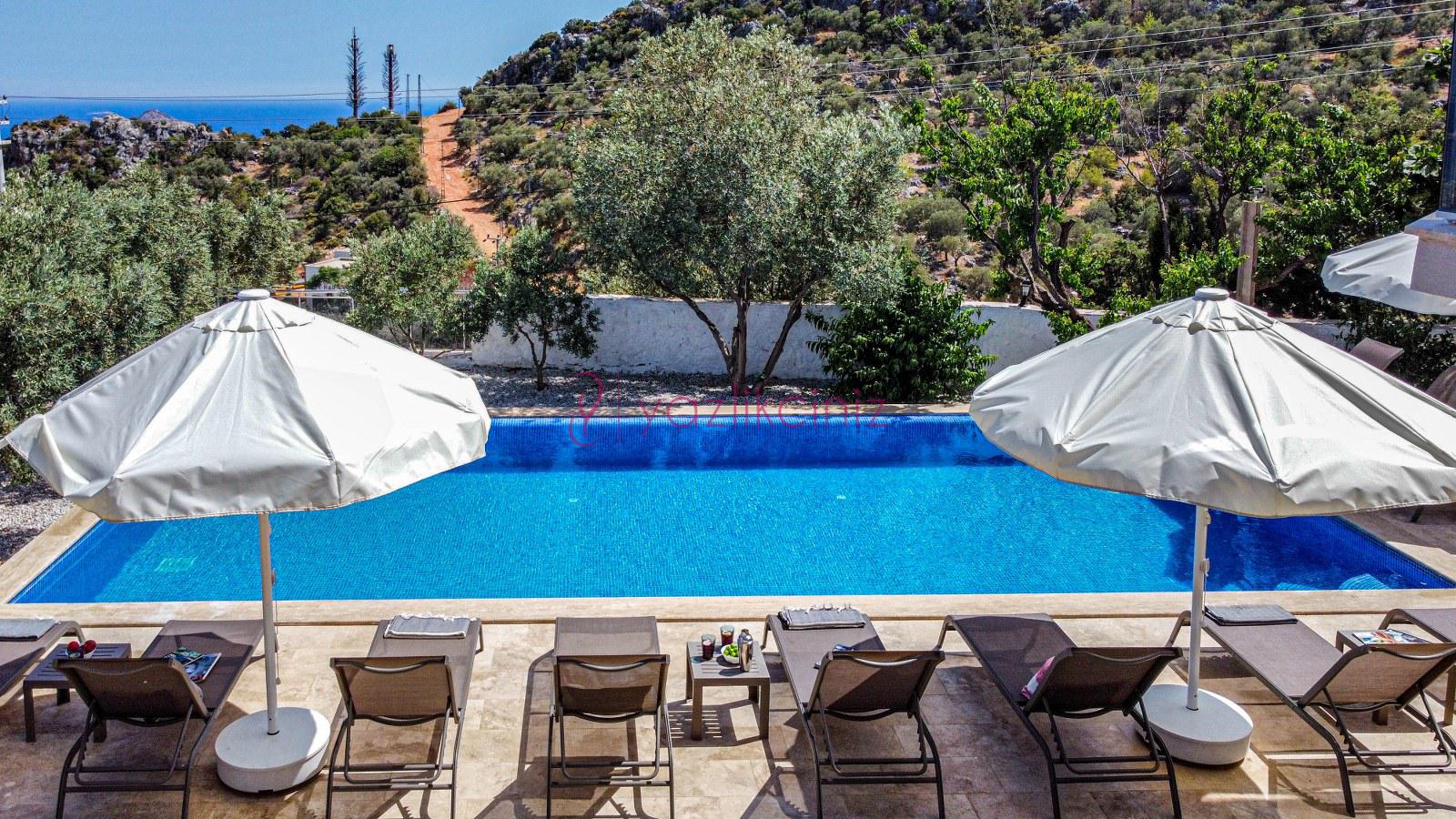 Kalkan sehir merkezine yaklasik 4 km uzaklikta bulunan yazlik kiralik villamiz Villa Aristo sizlere huzur dolu, muhtesem bir tatil imkani sunuyor. Kiralik villamizin bahçe kati korunakli olup disaridan görünmemektedir. Bu nedenle muhafazakar ailelerimiz için oldukça uygun olan ekonomik kiralik villamizda 6 yatak odasi bulunmakta olup 12 kisi konaklama kapasitesine sahiptir. Villa Aristo , genis ailelerimiz ve genis arkadas gruplarimiz için oldukça uygun olup , oldukça sik ve modern dizayn edilmistir. Villamizin havuz terasinda korunaklilik için önlemler alinmis olup tam olarak korunakli halde olmamaktadir. Genis bir bahçeye ve havuz terasina sahip olan villamiz siz degerli misafirlerimize kapilarini aralamaktadir.