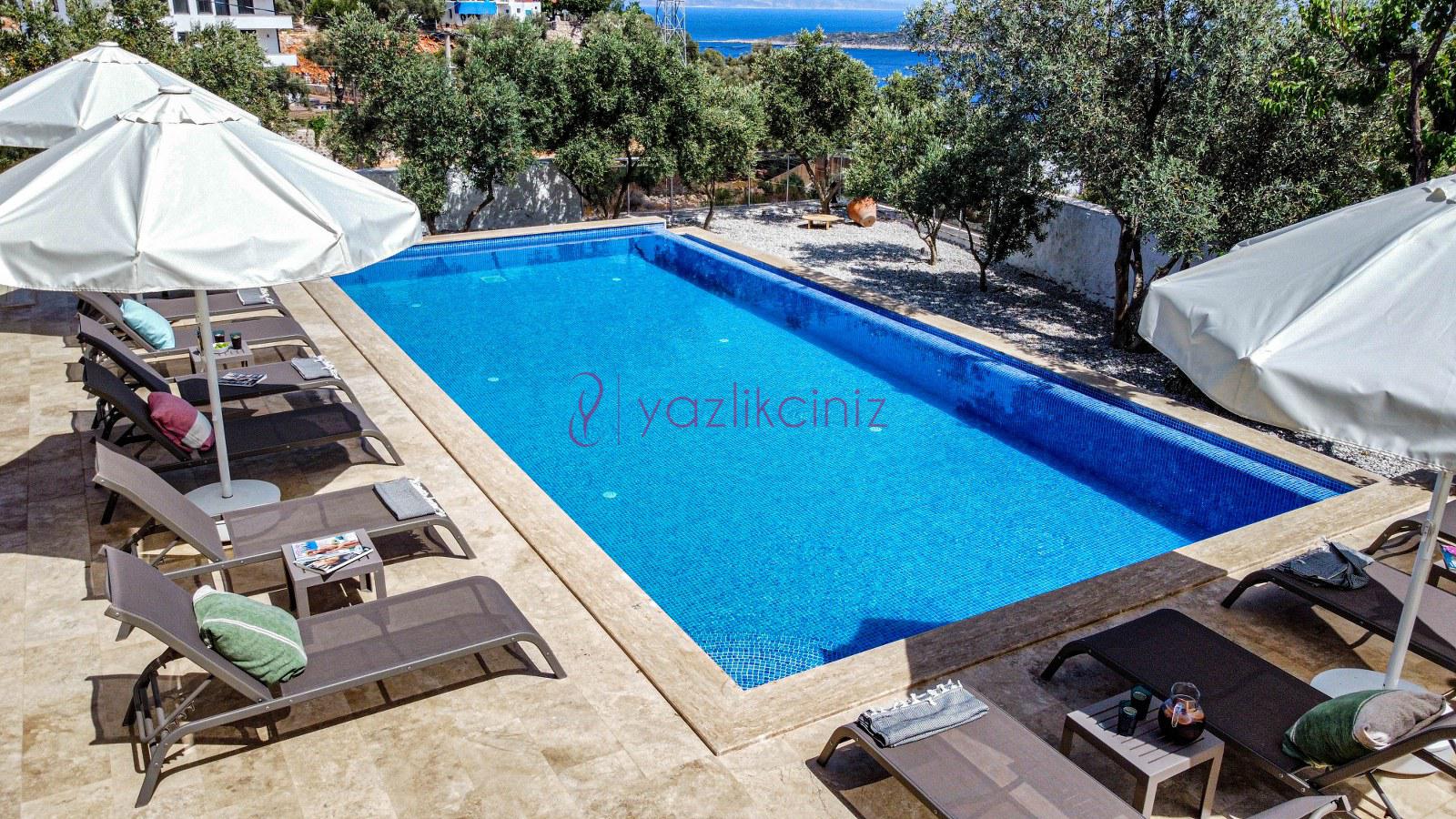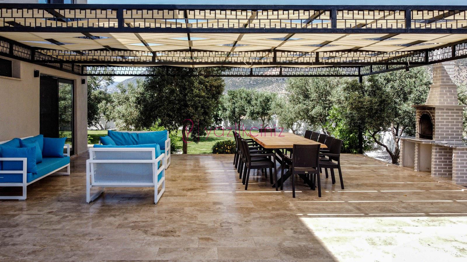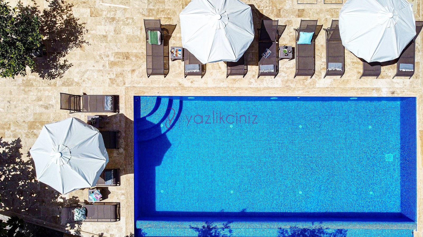 Bahçede havuz, yemek masasi, oturma gurubu ve sandalyeler, barbekü, sezlong ve semsiye bulunmaktadir.