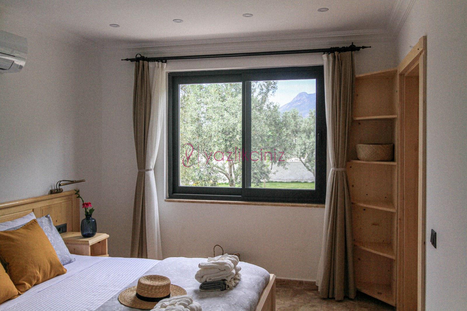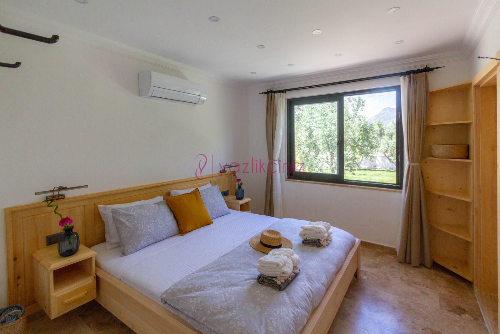 2.Yatak Odasi: 1 adet çift kisilik yatak, komodin, elbise dolabi, klima, makyaj masasi, banyo ve tuvalet bulunmaktadir.