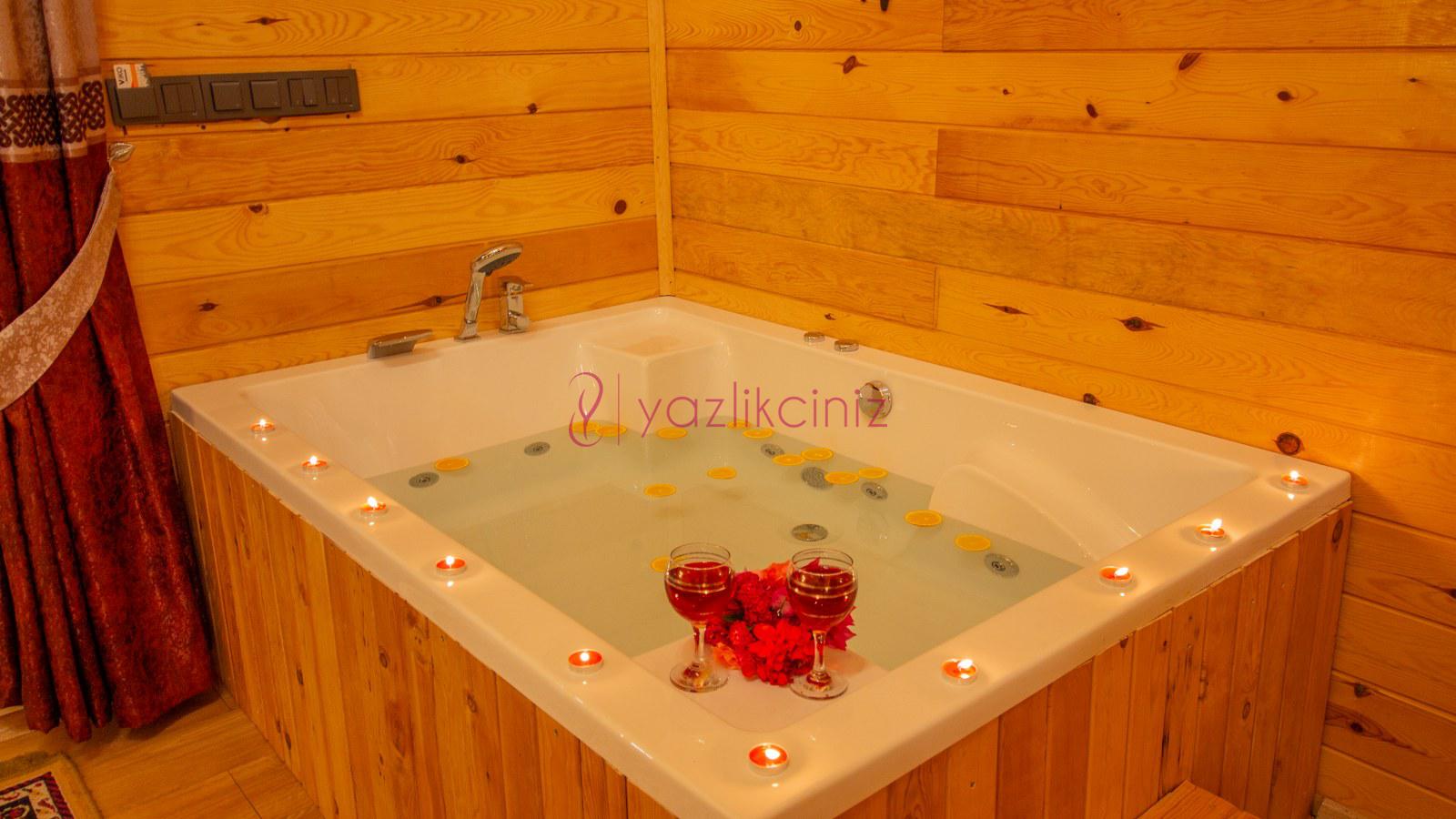 1. Yatak Odası: 1 adet çift kişilik yatak, klima, komodin, elbise dolabı, makyaj masası, jakuzi, banyo ve tuvalet bulunmaktadır.
