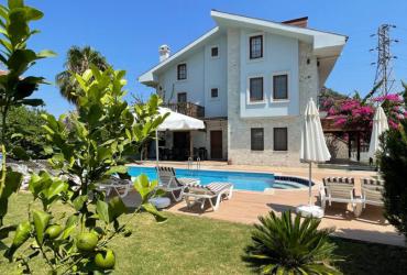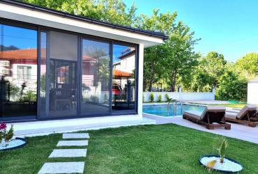 Villamizin genis salonunda oturma grubu, klima, televizyon, uydu, internet ve havuz terasina çikis bulunmaktadir.