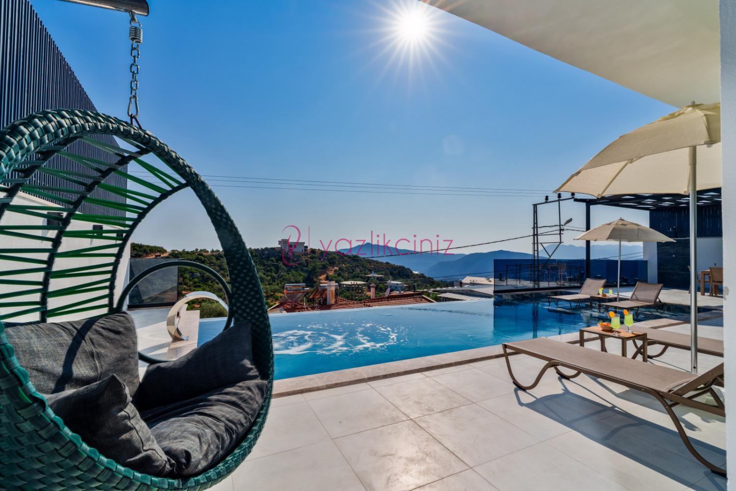 Havuz terasında özel yüzme havuzu, şezlonglar, güneş şemsiyesi, salıncak, yemek masası, bahçe oturma grubu, barbekü, duş bulunmaktadır.