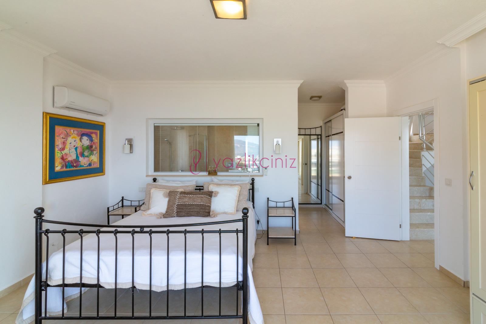 1. Yatak Odası: 1 adet çift kişilik yatak, klima, elbise dolabı, komodin, makyaj masası, banyo tuvalet bulunmaktadır.