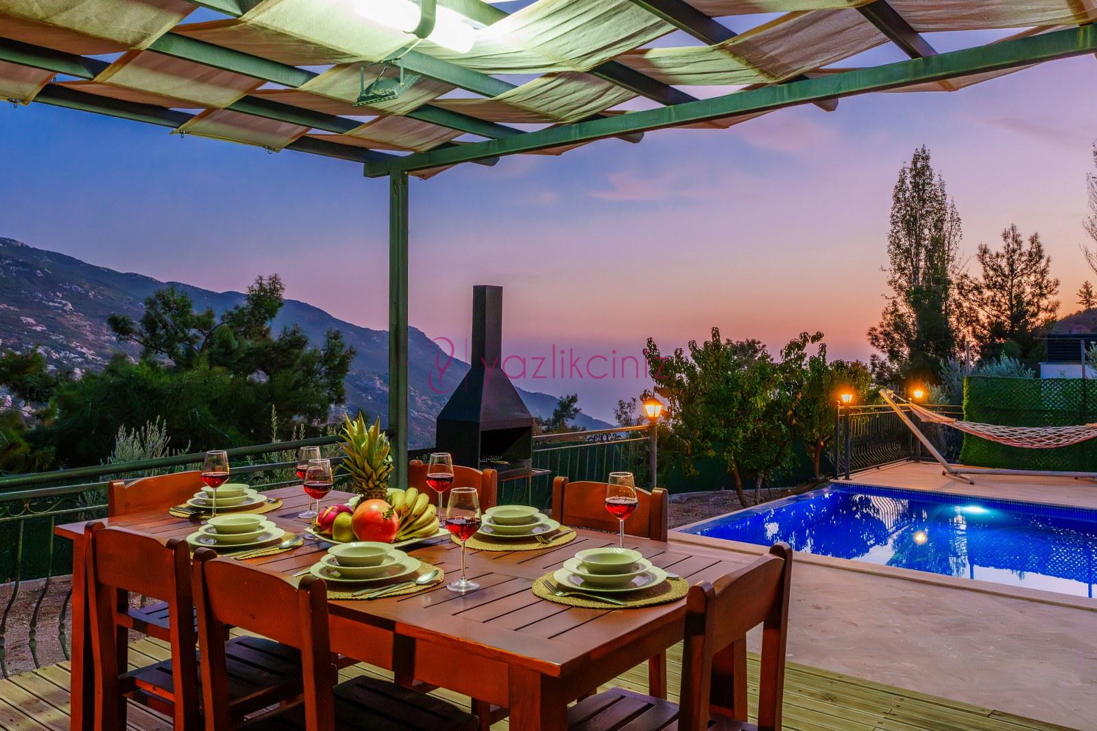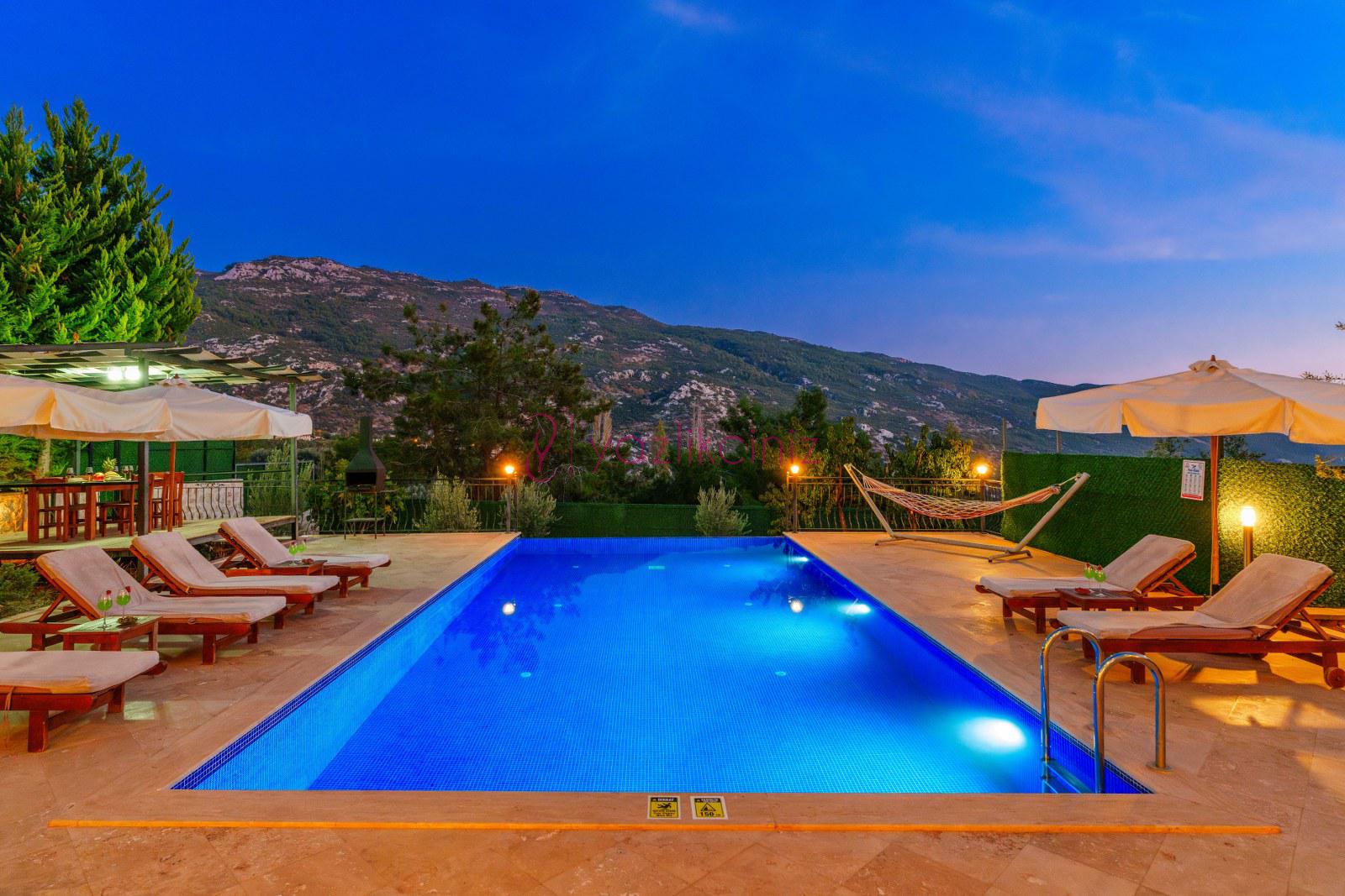 Kalkan İslamlar mevkiinde bulunan olağanüstü bir doğa manzarasına sahip Villa Beyazım, 3 yatak odası ile 6 kişilik kapasiteli aileler, balayı çiftleri ve muhafazakâr aileler için ideal villalarımızdandır. Korunaklı havuzu bulunan villamızda langırt, masa tenisi, hamak bulunmaktadır, Doğa ile iç içe sakin bir tatil hayal eden misafirlerimiz için en uygun villalarımızdandır.