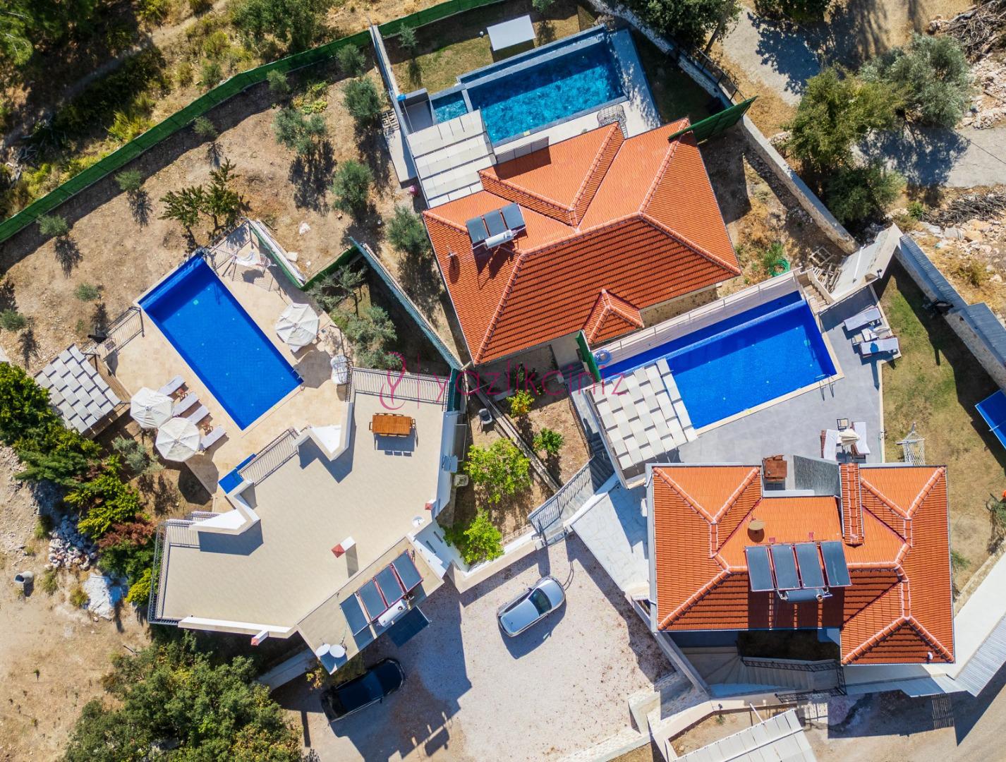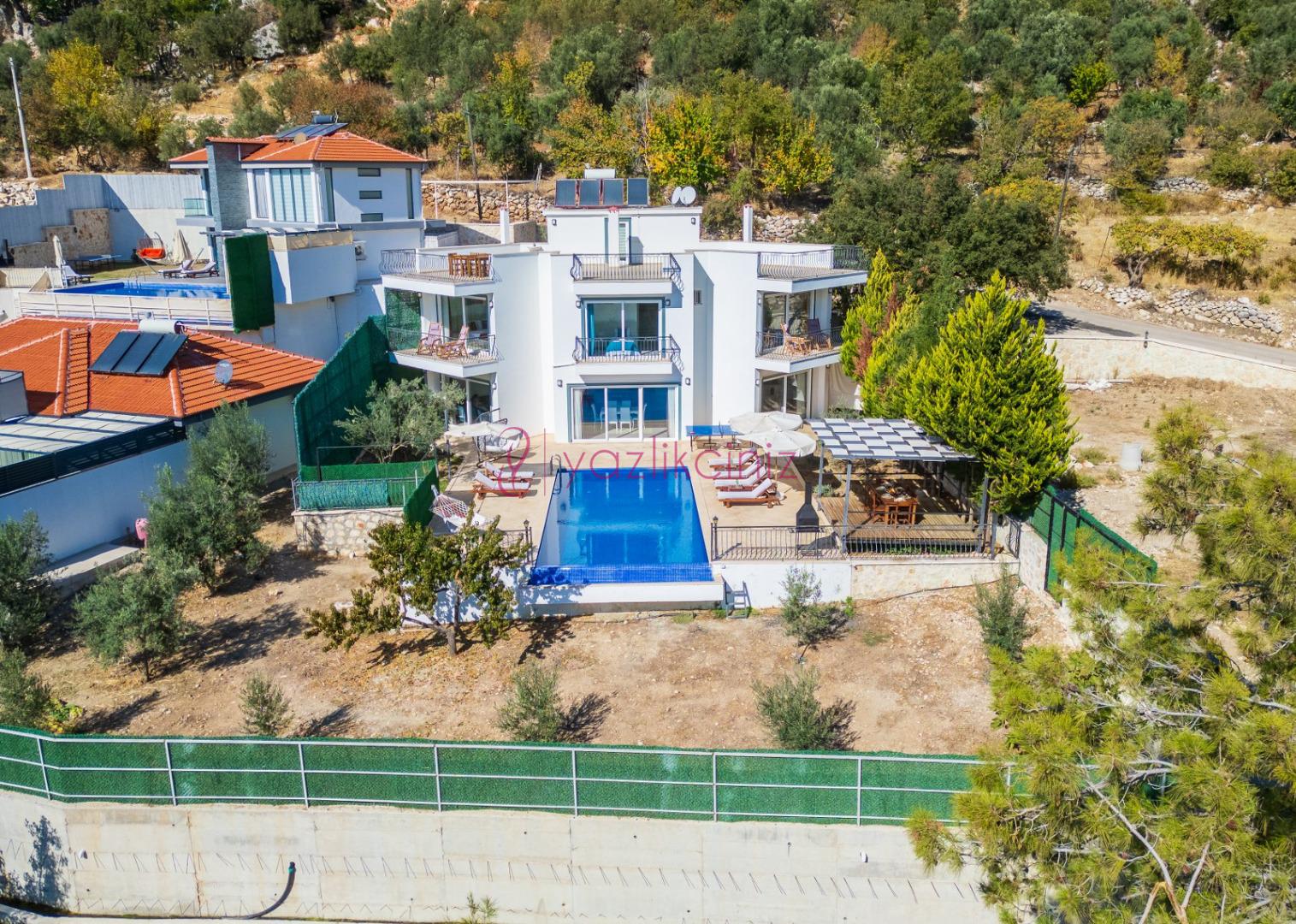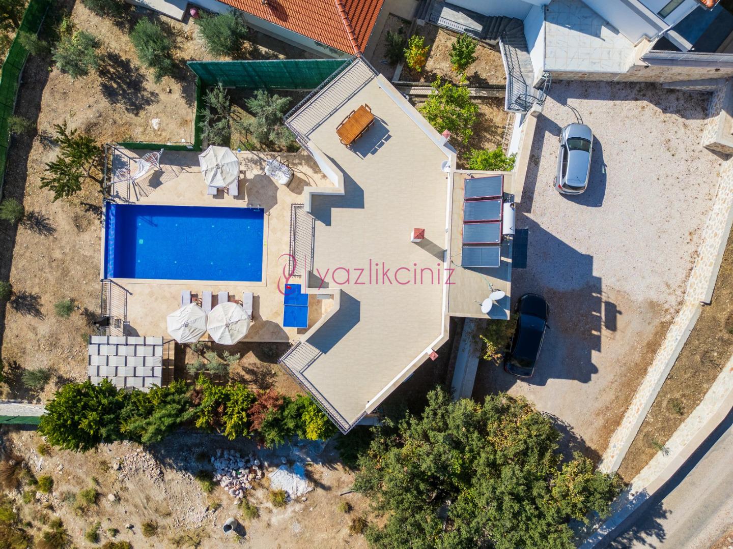 Not: Villanın güneşlenme terası ve havuzunun dış taraftan görünmemesi için gerekli önlemler alınmıştır, fakat villanın diğer bölümlerinin görünürlüğü kesin olarak garanti edilememektedir