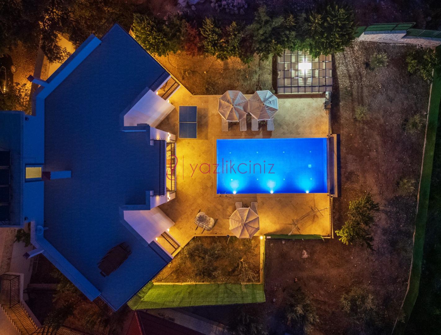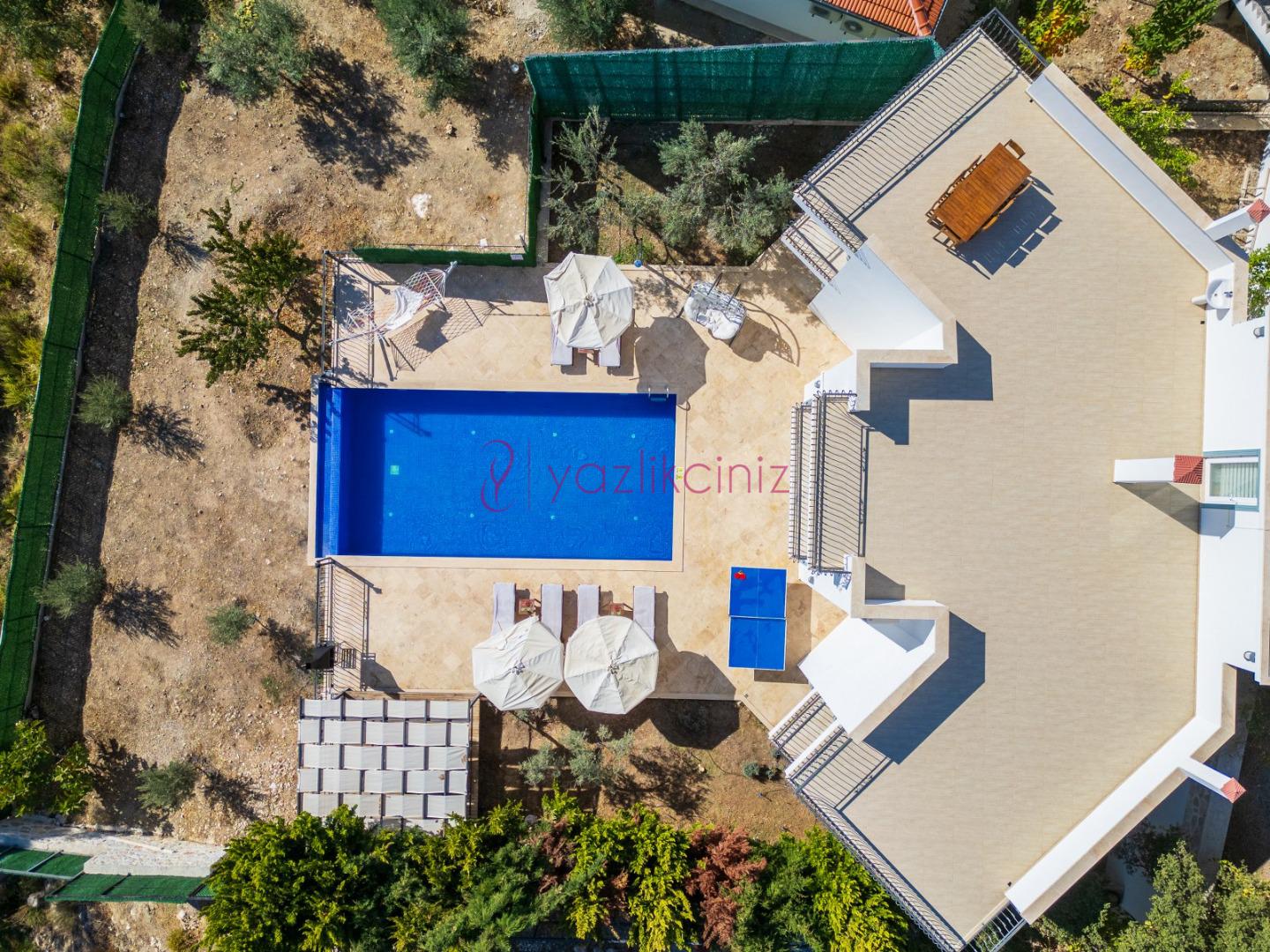 Boy: 10 m x Eni 5 m Derinliği 150 cm. olan havuzu bulunmaktadır. Havuz terasında şemsiye, şezlong, pergola, mangal ve yemek masası bulunmaktadır.