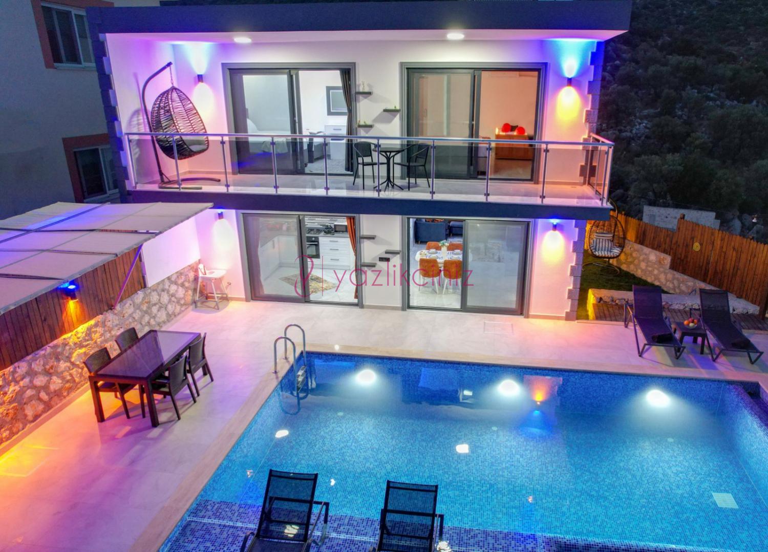 Kaş’ın Sısla mevkiinde bulunan deniz ve doğa manzaralı lüks kiralık villamız Villa Bozdağ, modern ve konforlu yapısı ile sizlere muhteşem bir tatil imkânı sunuyor. 2 adet yatak odası bulunan kiralık villamız 4 kişi konaklama kapasiteli, jakuzili olup balayı çiftleri ve çekirdek aileler için oldukça uygundur. Balayı villası olarak da tercih edebileceğiniz kiralık villamızda, tatiliniz boyunca ihtiyacınız olabilecek tüm temel eşyalar mevcut olup kullanımınıza hazır durumdadır. Hem doğa hem deniz manzarasına sahip olup sessiz sakin bir konumdadır. Aydınlık ve ferah bir yapısı olan ekonomik kiralık villamızın bahçesinde kendisine ait özel yüzme havuzu, güneşlenme alanı, salıncak, yeşil bahçesi, yemek masası, oturma alanı ve barbekü bulunmaktadır. Ayrıca Üzüm İskelesi olarak bilinen işletmesi olmayan küçük bir koya da 500 metre mesafededir.