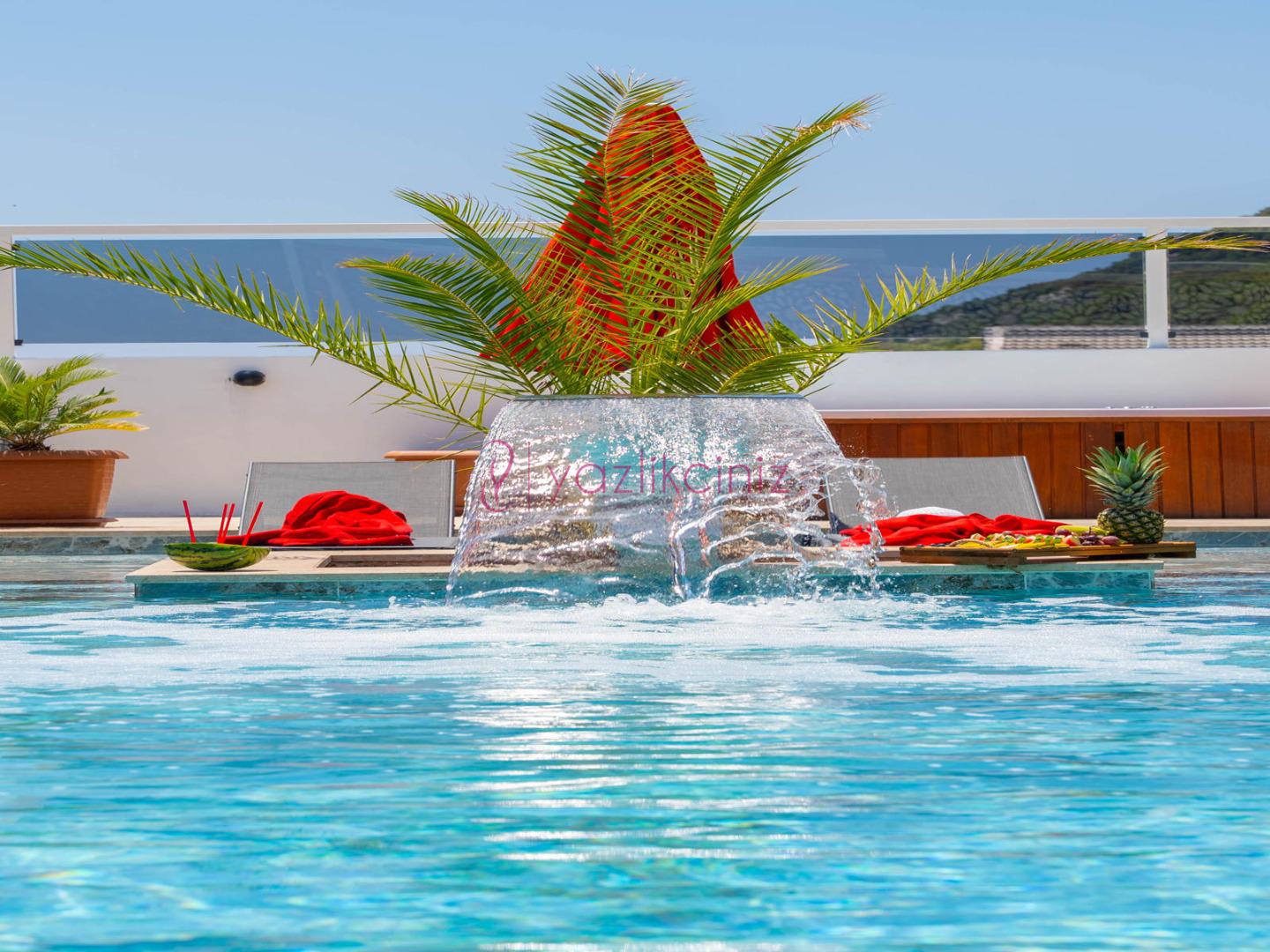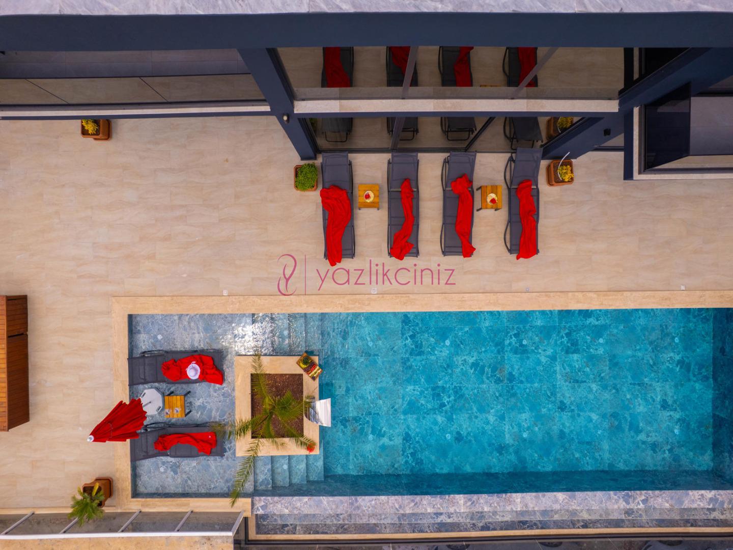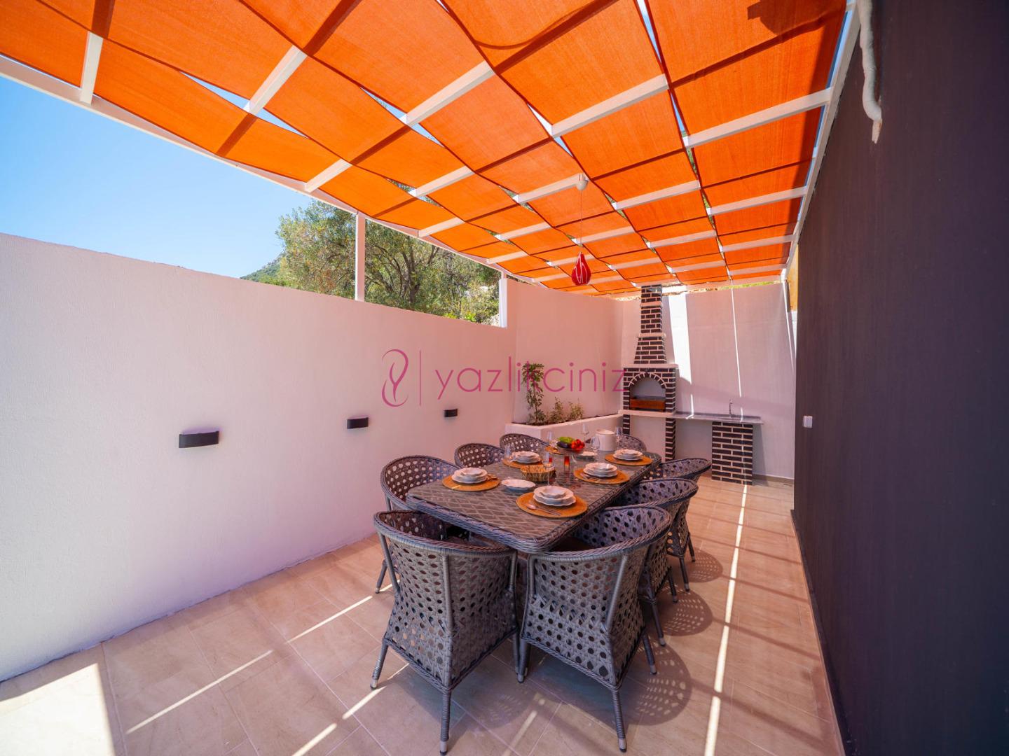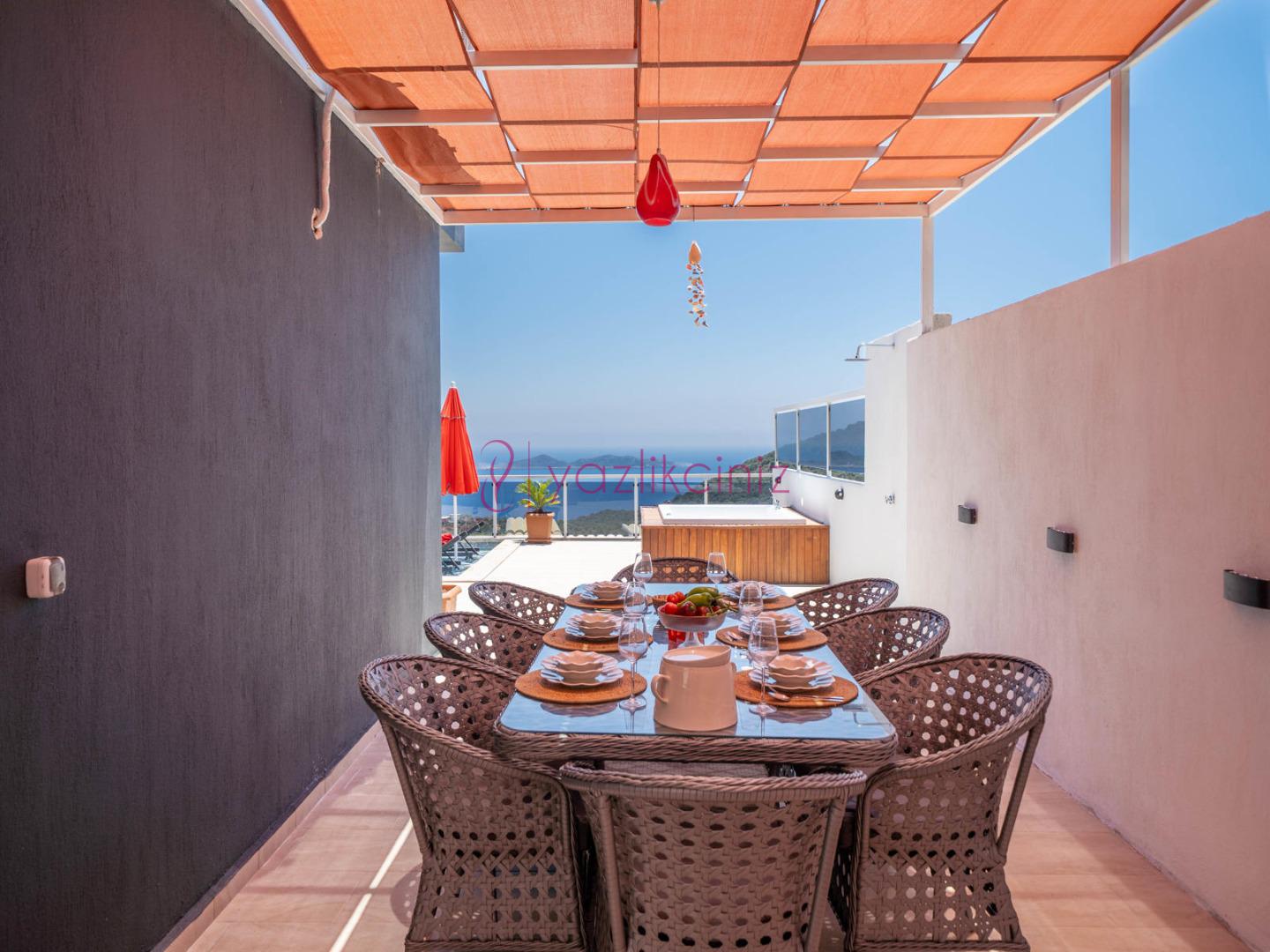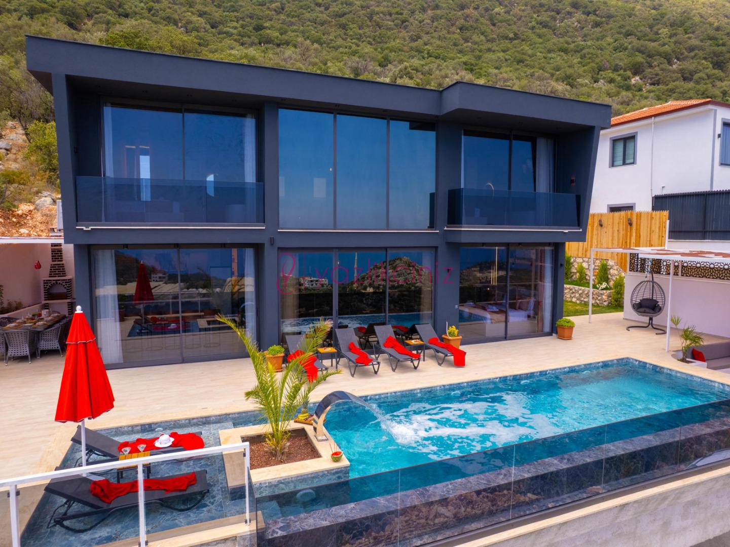 Özel yüzme havuzu, havuz başında güneşlenme alanı, oturma grubu,  barbekü, yemek masası ve sandalyeleri, salıncak bulunmaktadır.