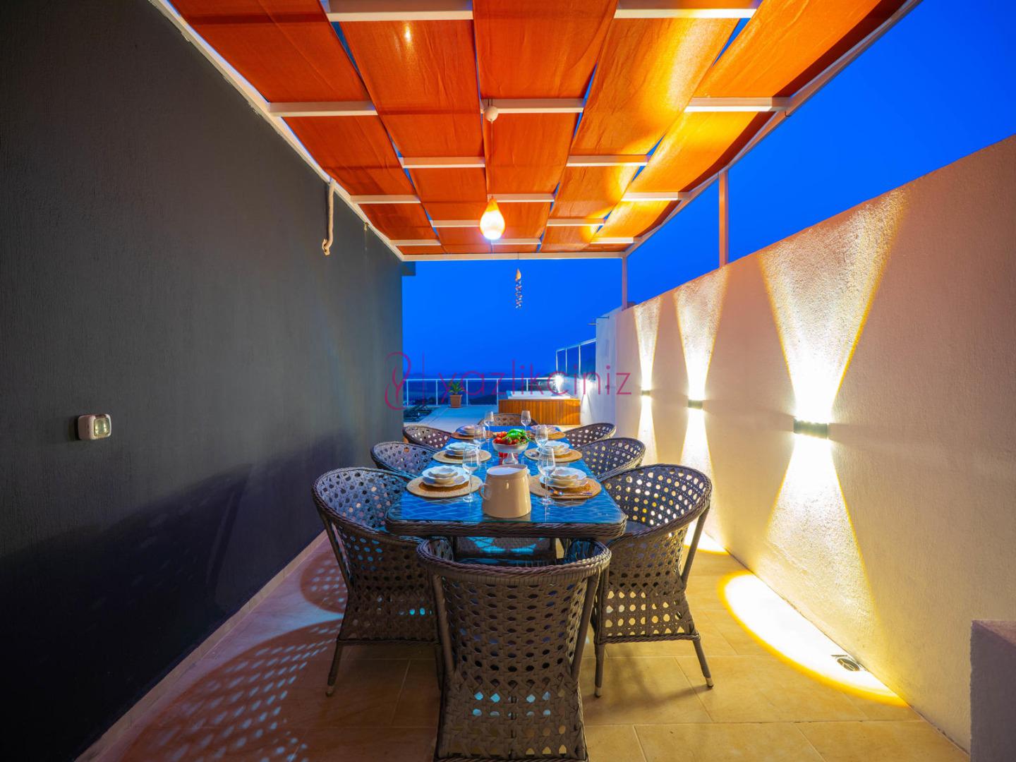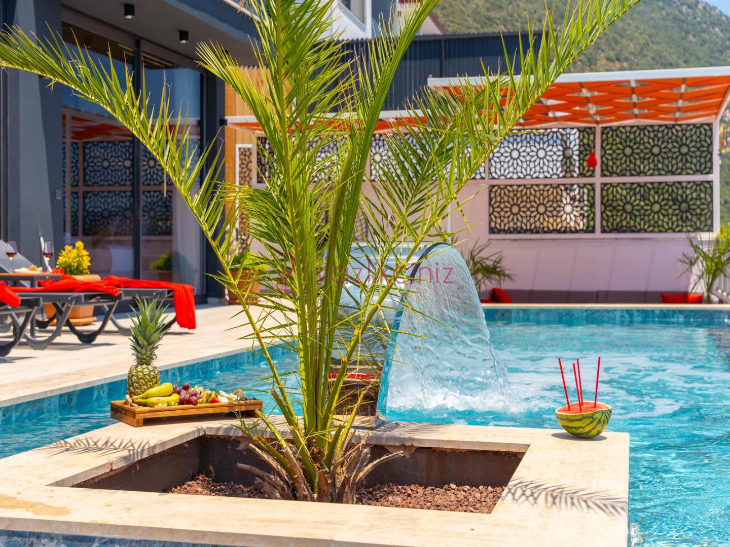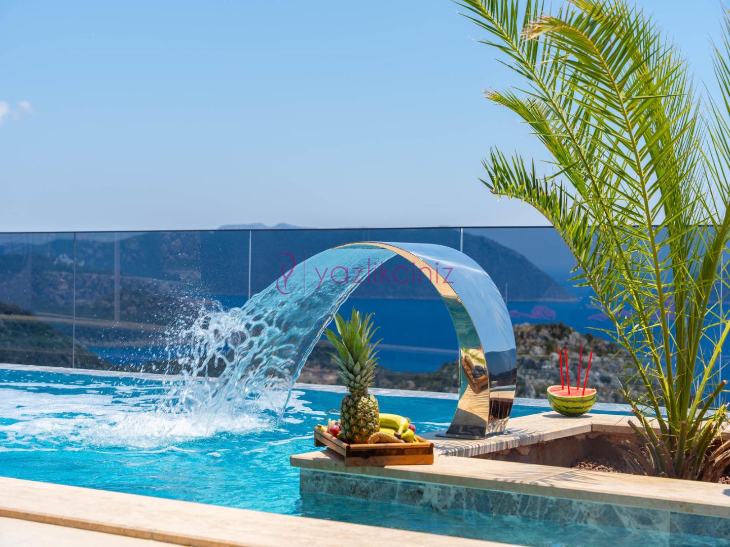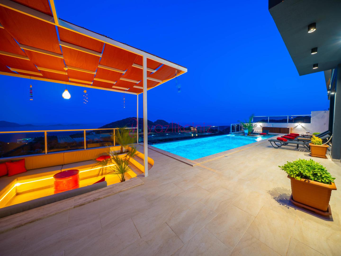 Özel yüzme havuzu, havuz başında güneşlenme alanı, oturma grubu,  barbekü, yemek masası ve sandalyeleri, salıncak bulunmaktadır.