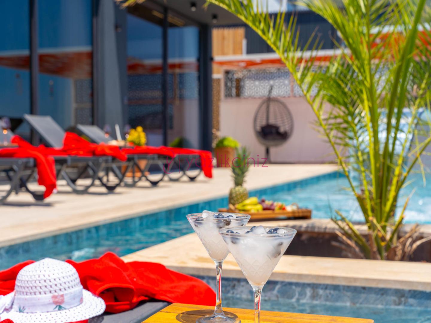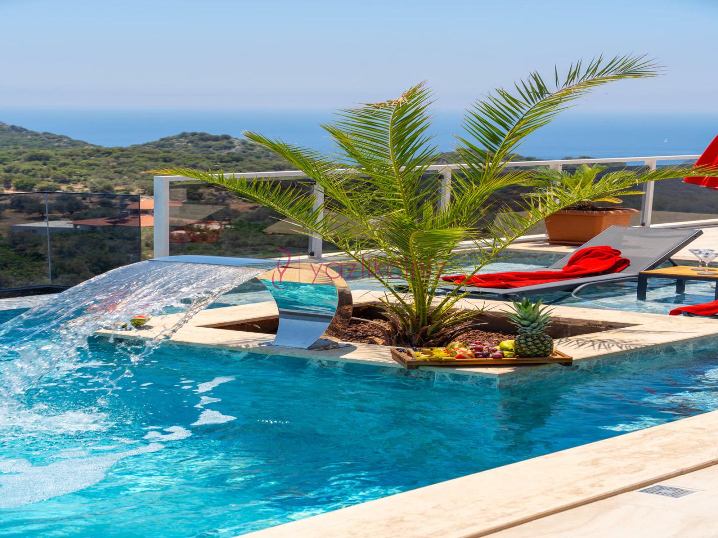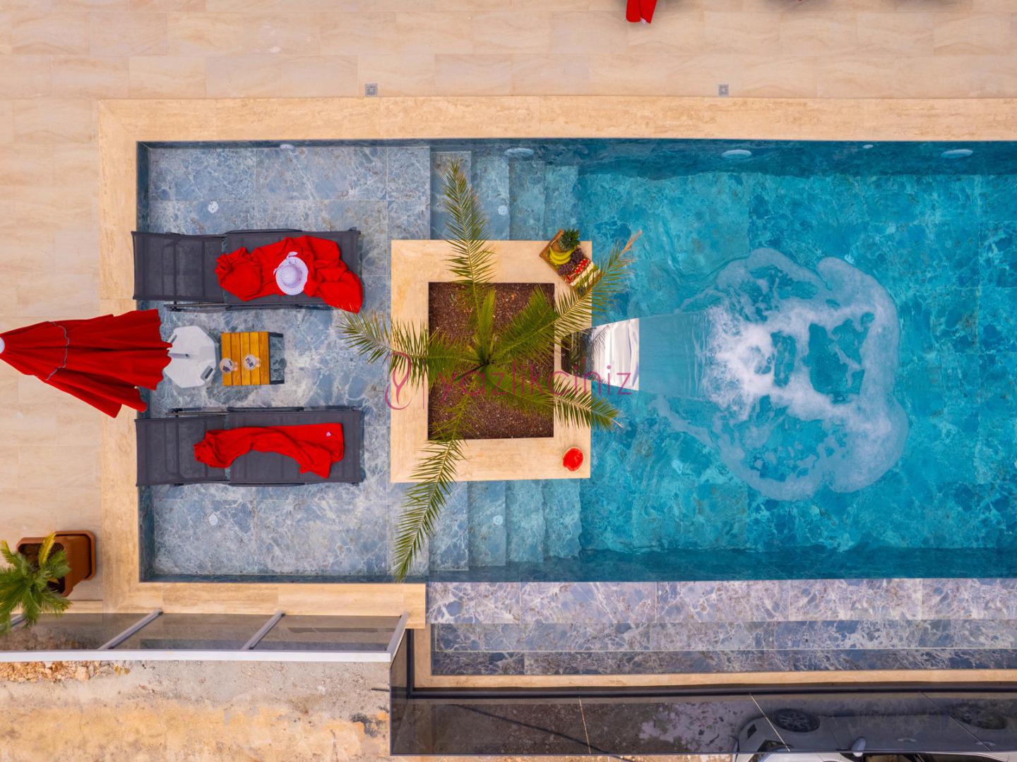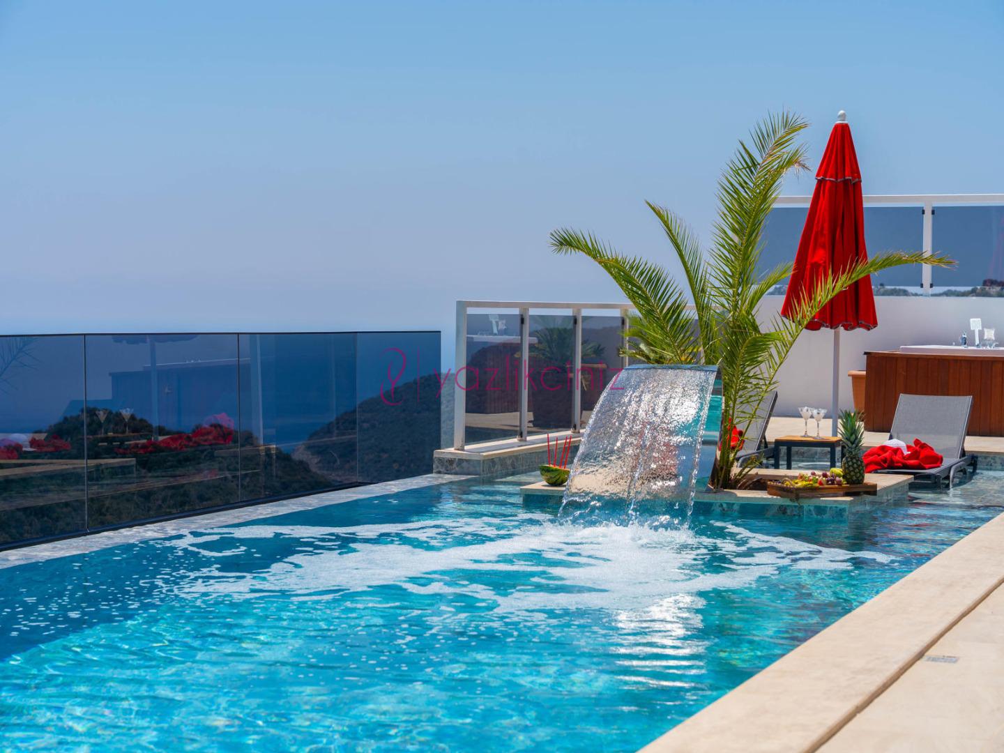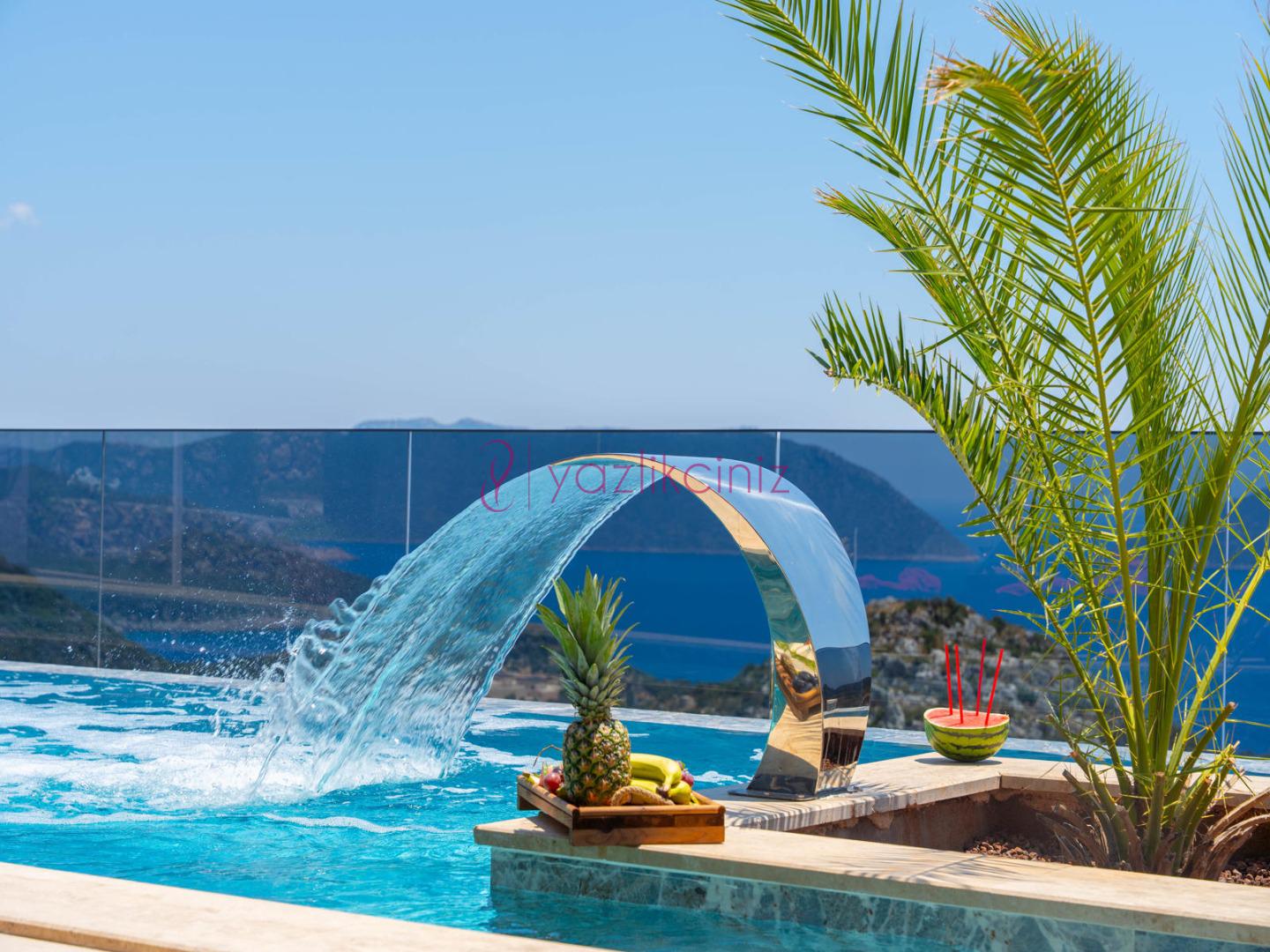 Özel yüzme havuzu, havuz başında güneşlenme alanı, oturma grubu,  barbekü, yemek masası ve sandalyeleri, salıncak bulunmaktadır.