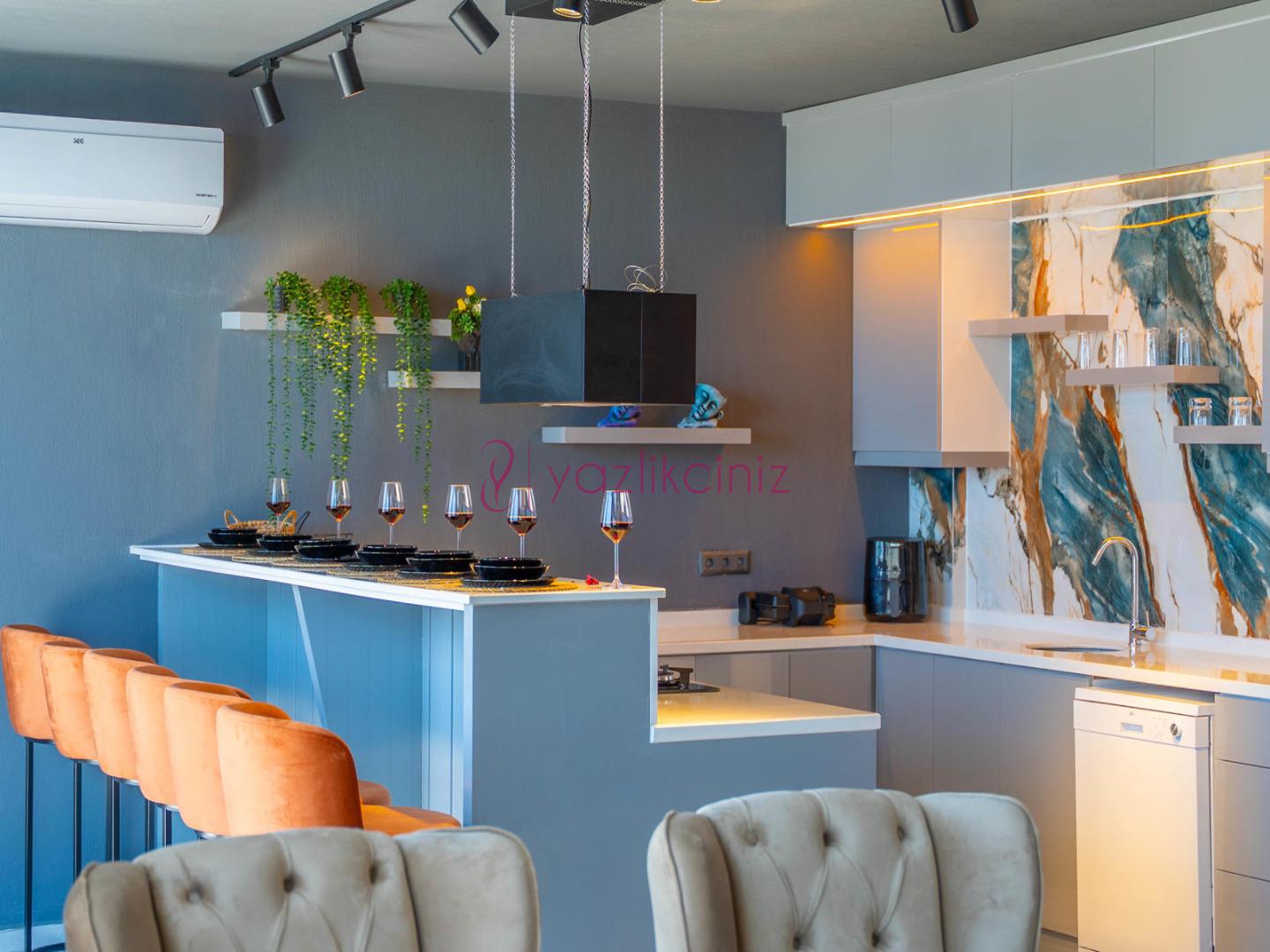 Modern Amerikan mutfak, buzdolabı, bulaşık makinesi, çamaşır makinesi, ankastre fırın,  ankastre 4’lü ocak, elektrikli su ısıtıcı (kettle),  yemek takımı, çeşitli mutfak araç gereçleri bulunmaktadır.