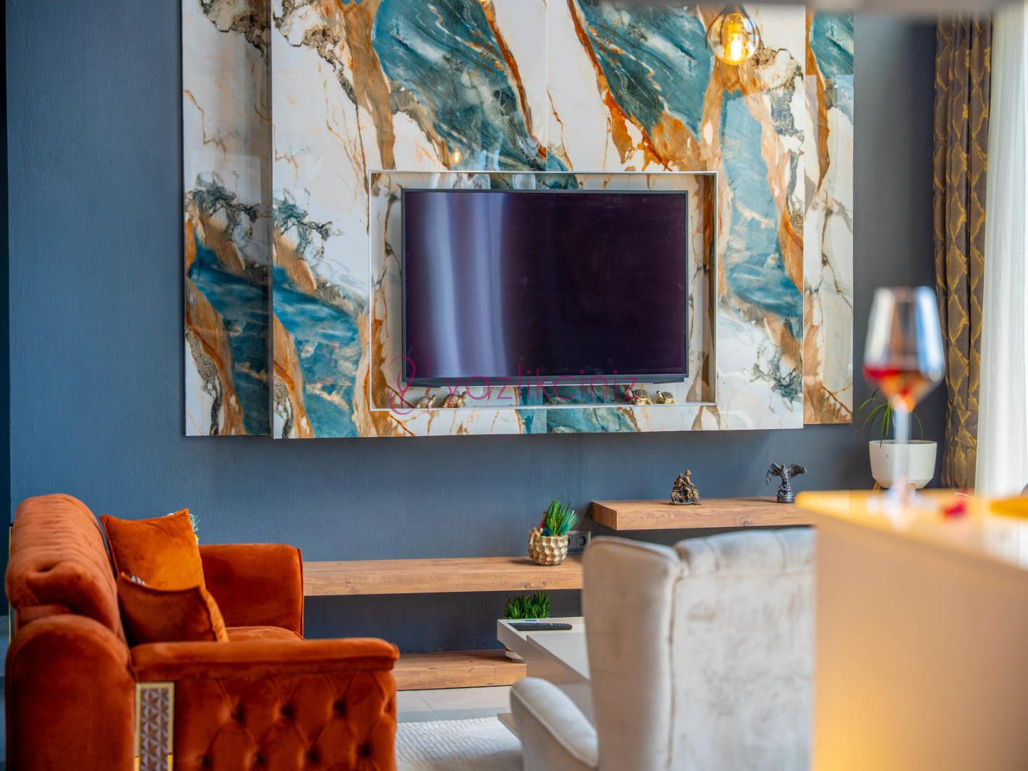 Lüks modern oturma grubu, uydu alıcı, televizyon, klima, ütü ve ütü masası, elektrik süpürgesi, havuza çıkış bulunmaktadır.