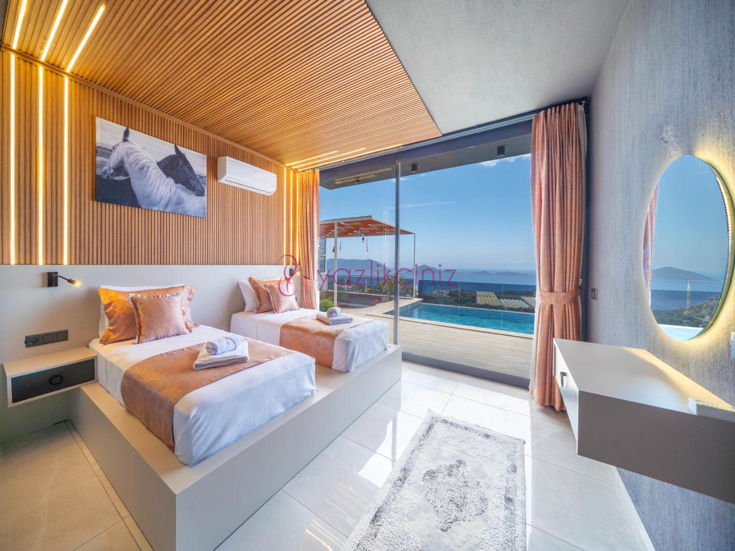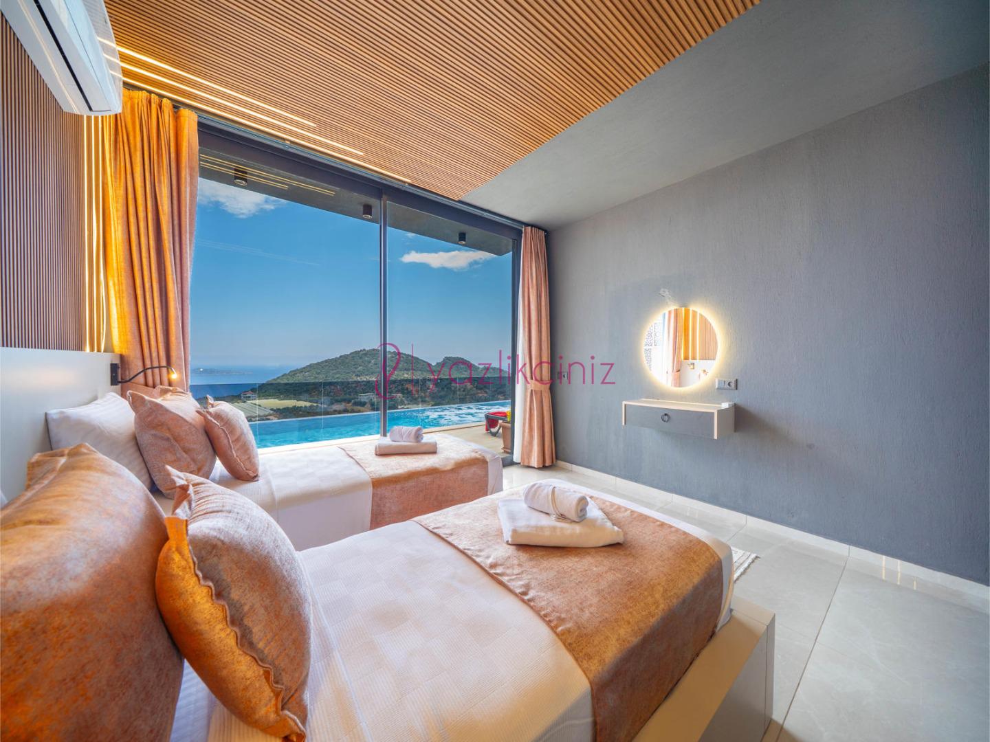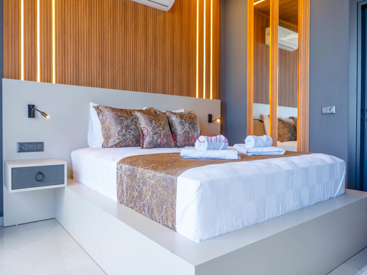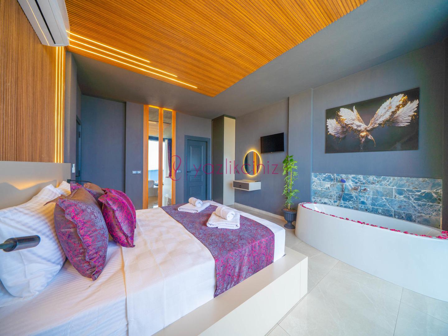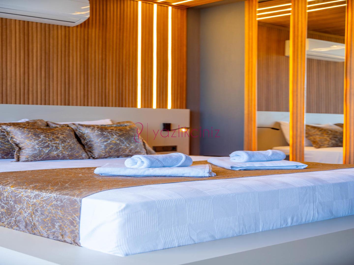 1. Yatak Odası: 1 adet çift kişilik yatak, komodin, elbise dolabı, makyaj masası, klima, jakuzi banyo ve tuvalet bulunmaktadır.