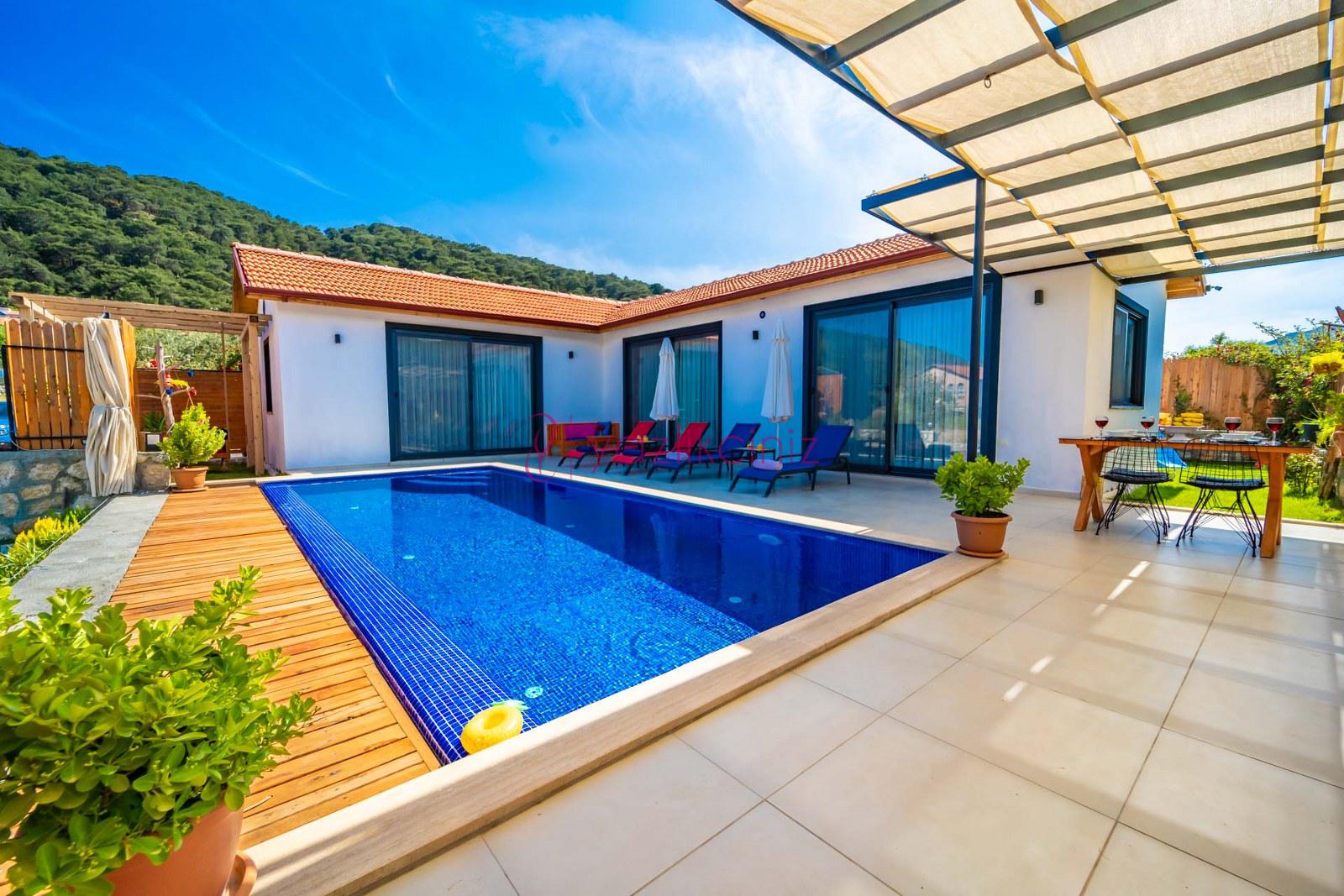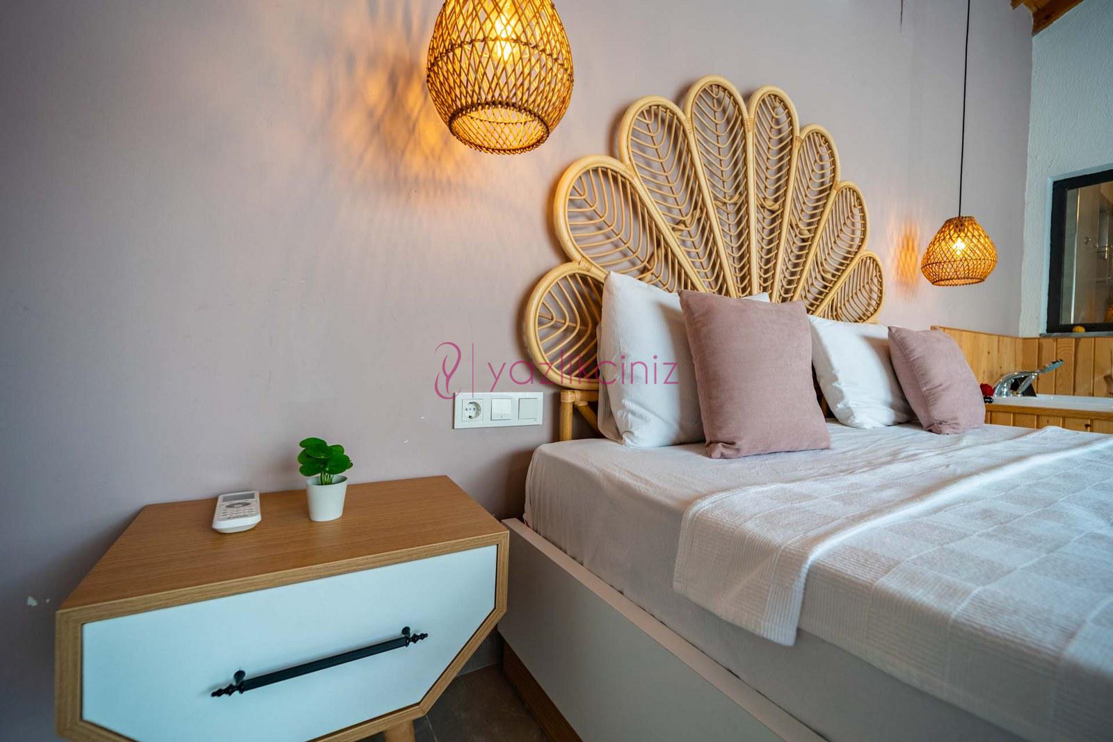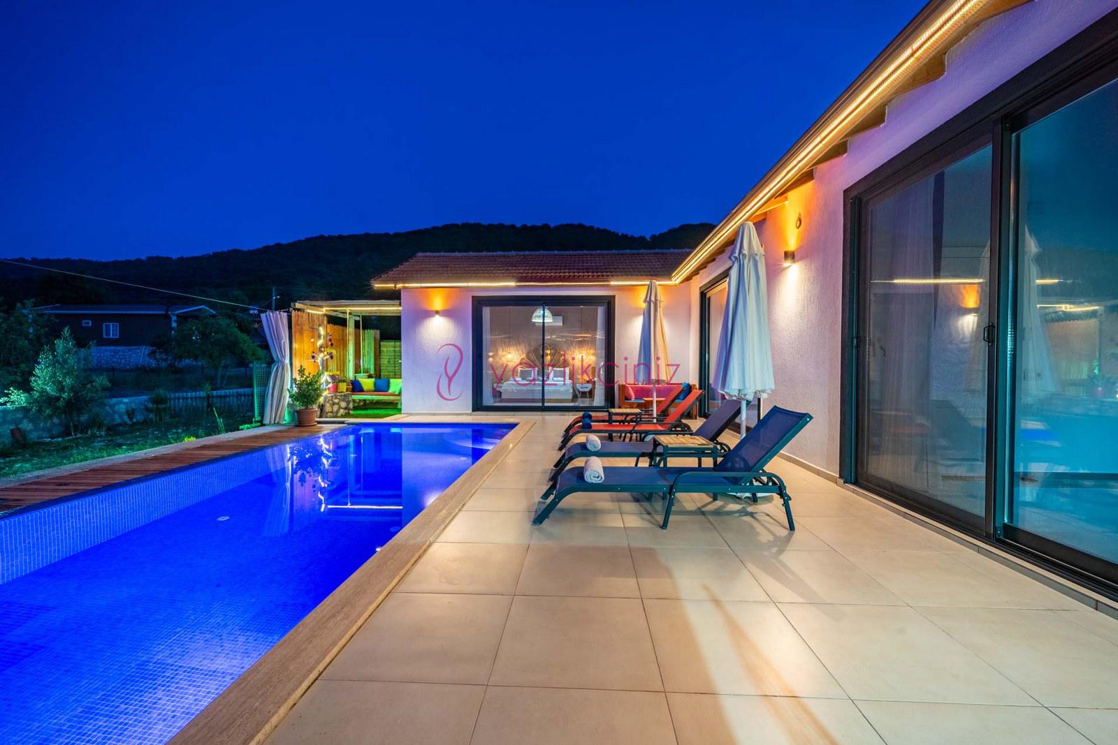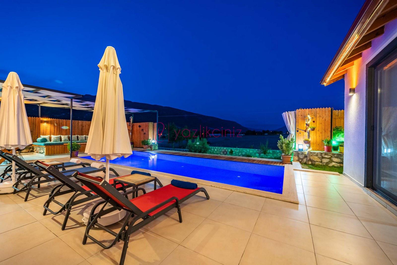 Muhafazakâr doğa içerisinde korunaklı havuzlu kiralık villa,4 kişilik 2 yatak odalı