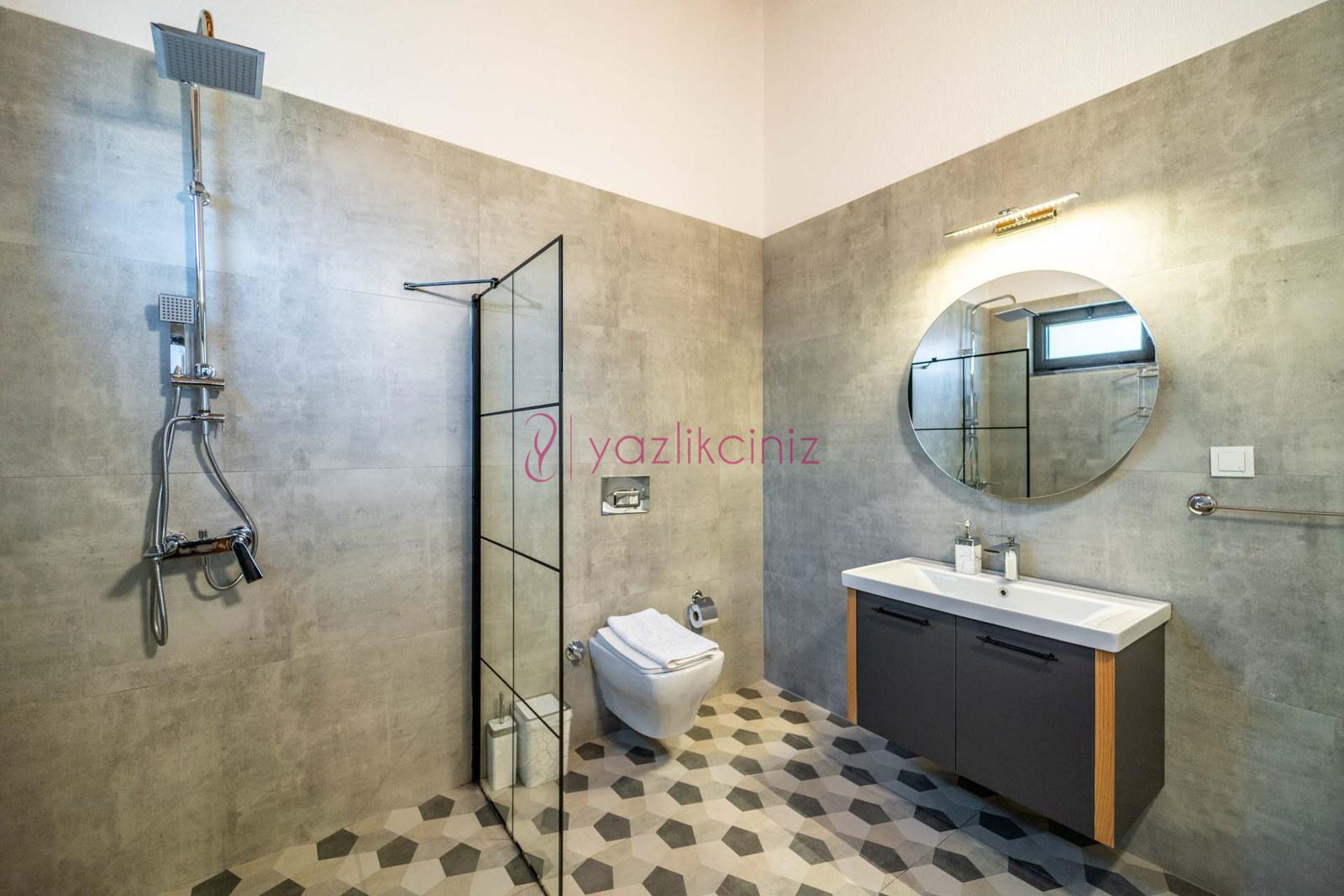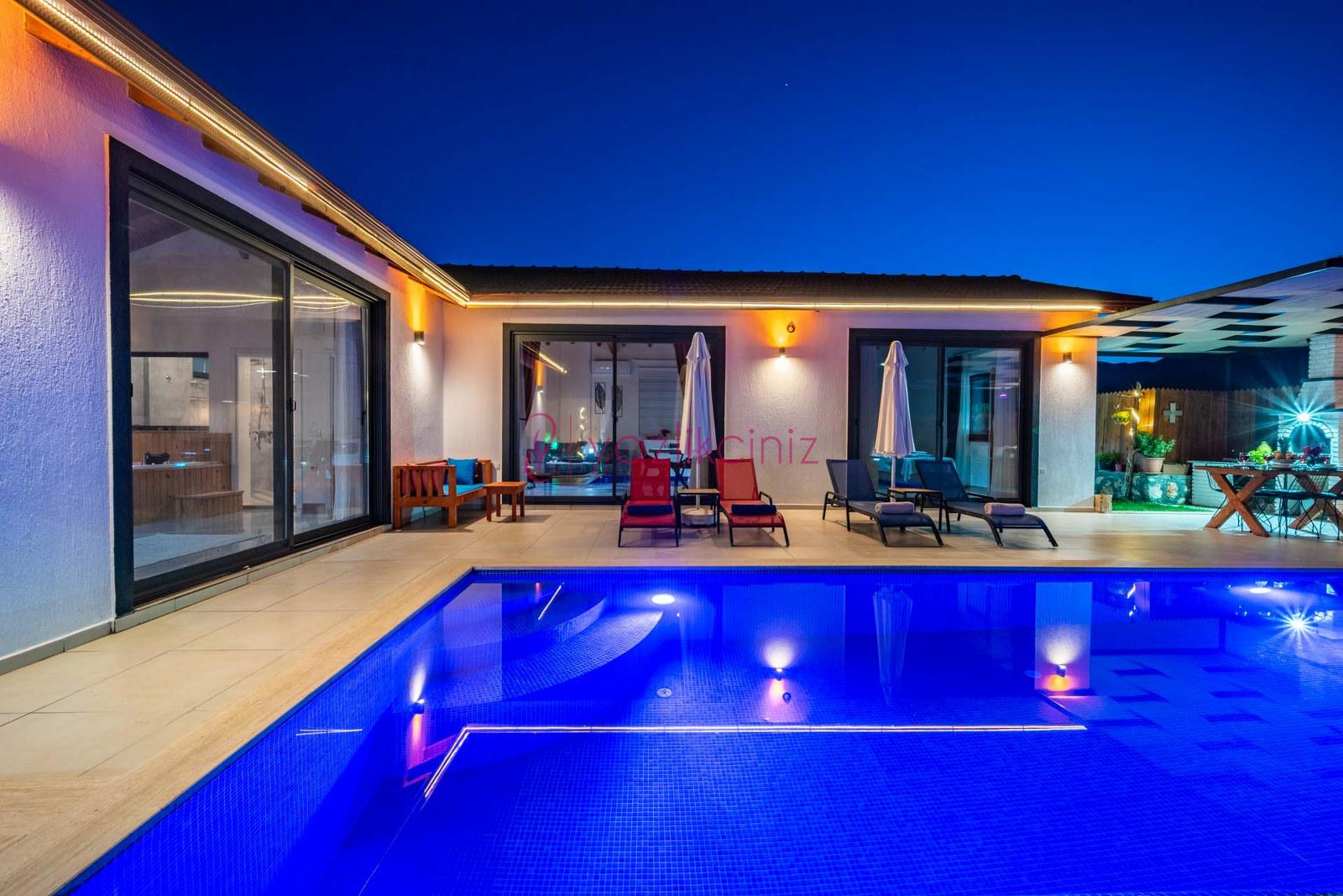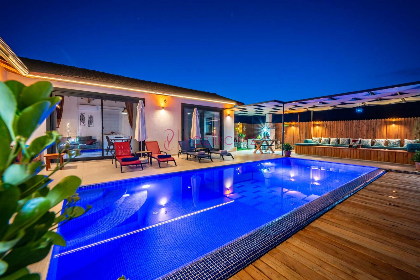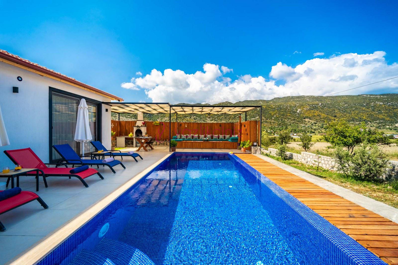 Muhafazakâr doğa içerisinde korunaklı havuzlu kiralık villa,4 kişilik 2 yatak odalı