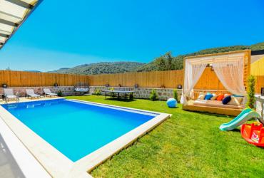 Villamızın özel yüzme havuzu muhafazakâr olup dışarıdan kesinlikle görünmemektedir. Şezlong, şemsiye, yemek masası, mangal bulunmaktadır.
