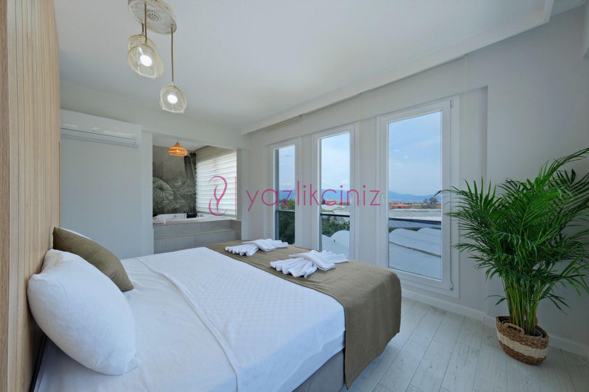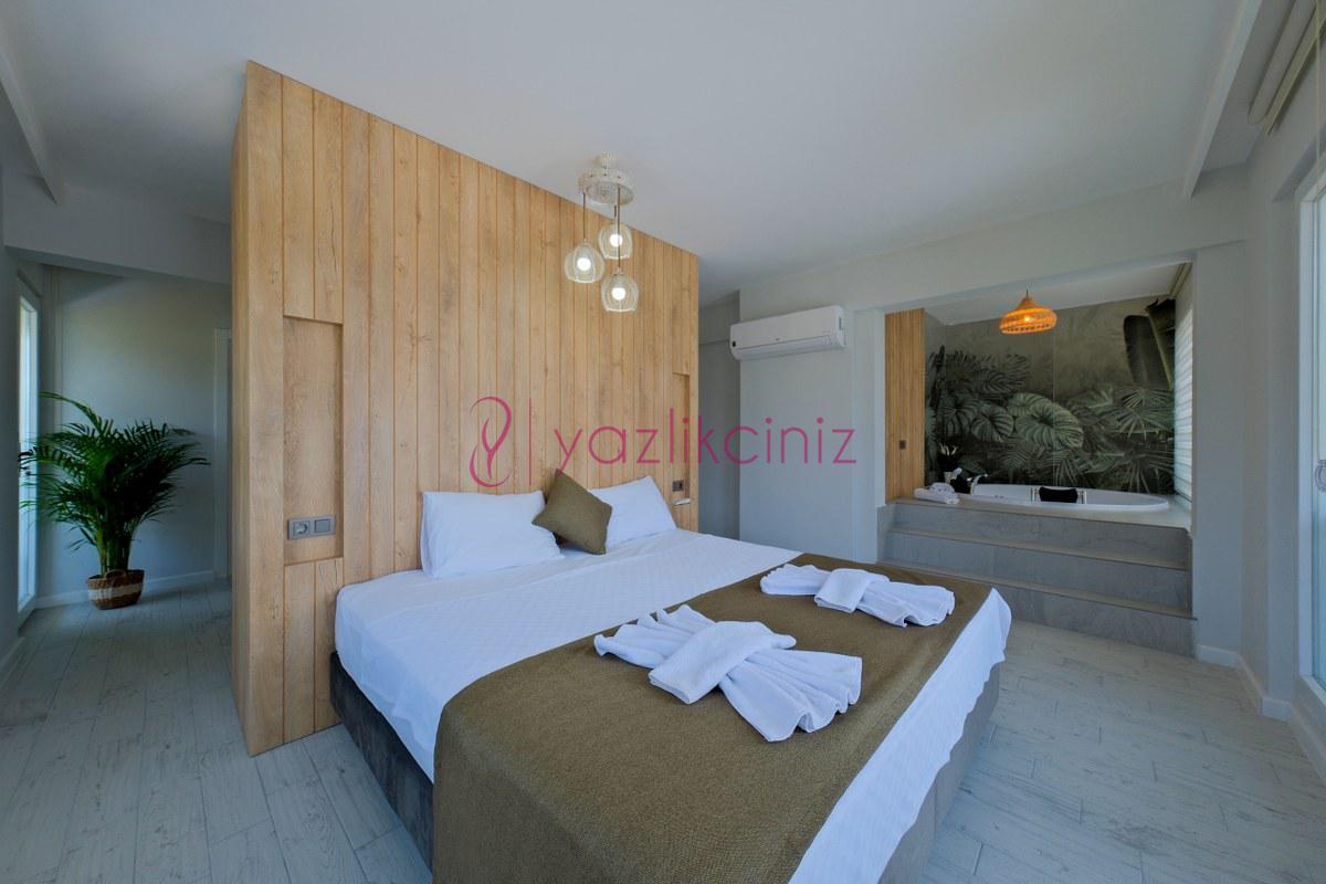 1.Yatak Odası: 1 adet çift kişilik yatak, klima, komodin, makyaj masası, jakuzi, elbise dolabı, banyo ve tuvalet bulunmaktadır.
