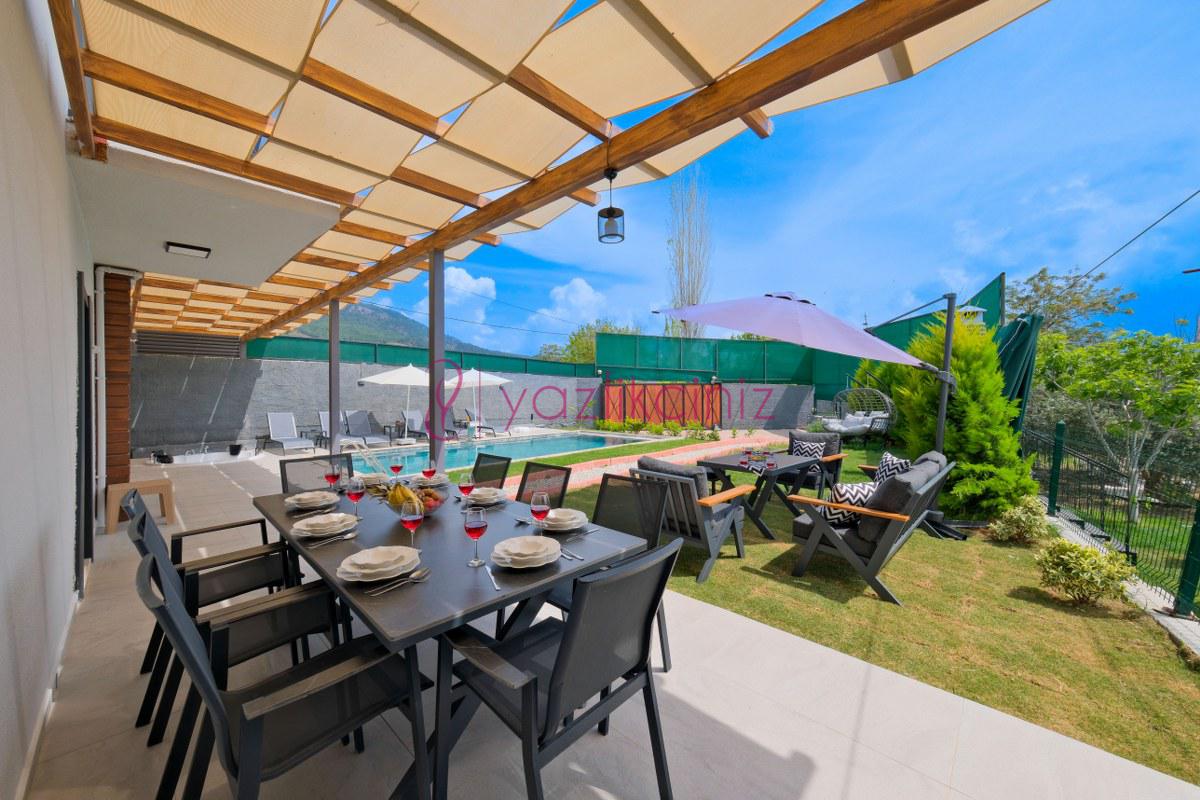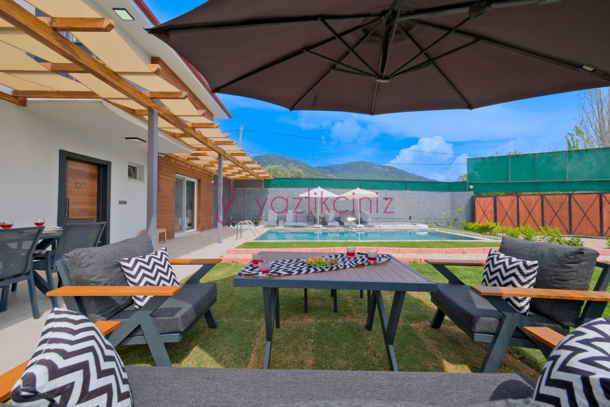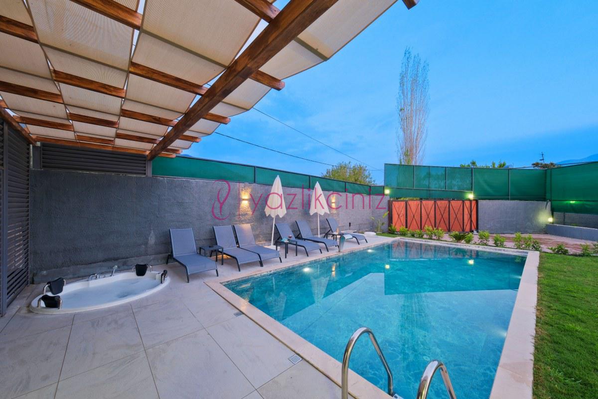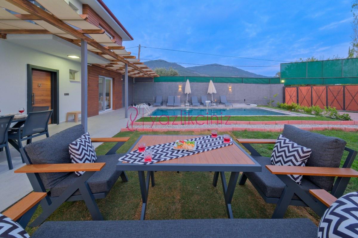 Havuz terasında özel yüzme havuzu, şezlonglar, güneş şemsiyesi, bahçe oturma grubu, salıncak bulunmaktadır.