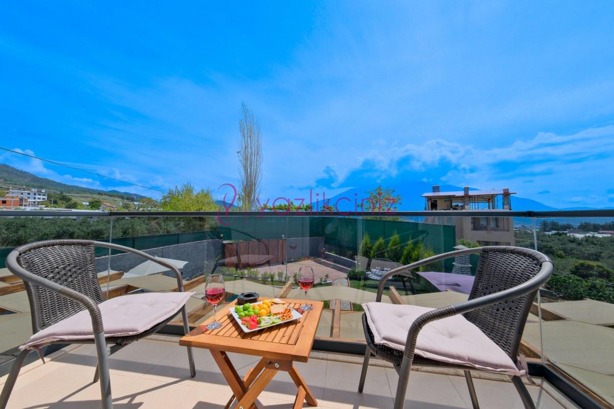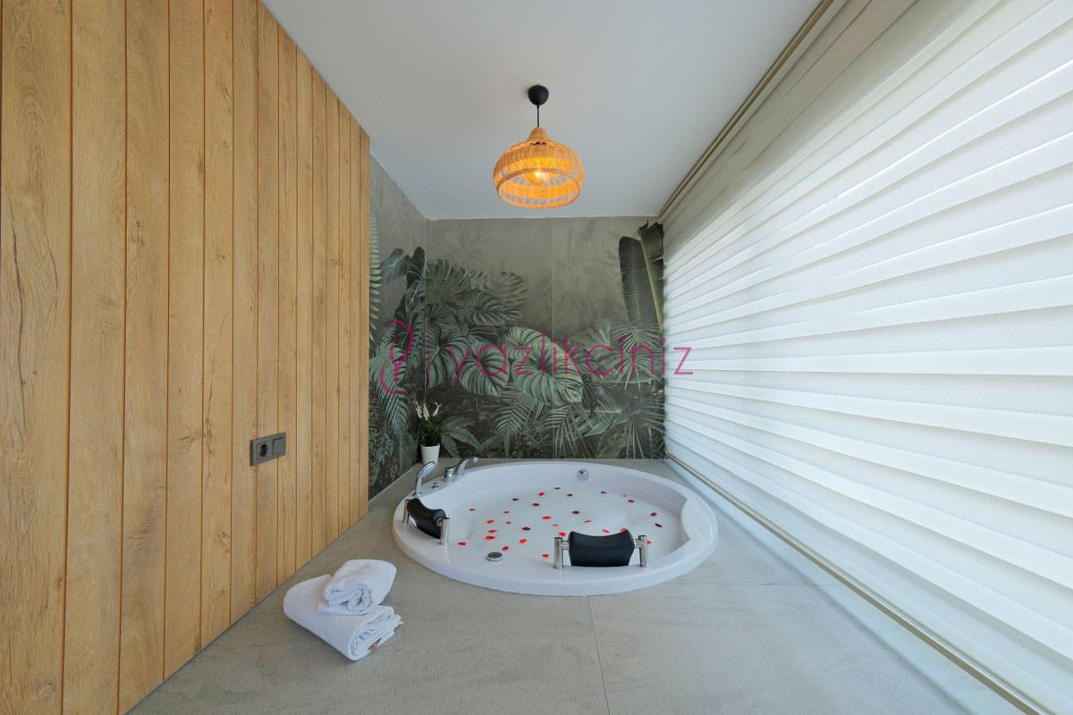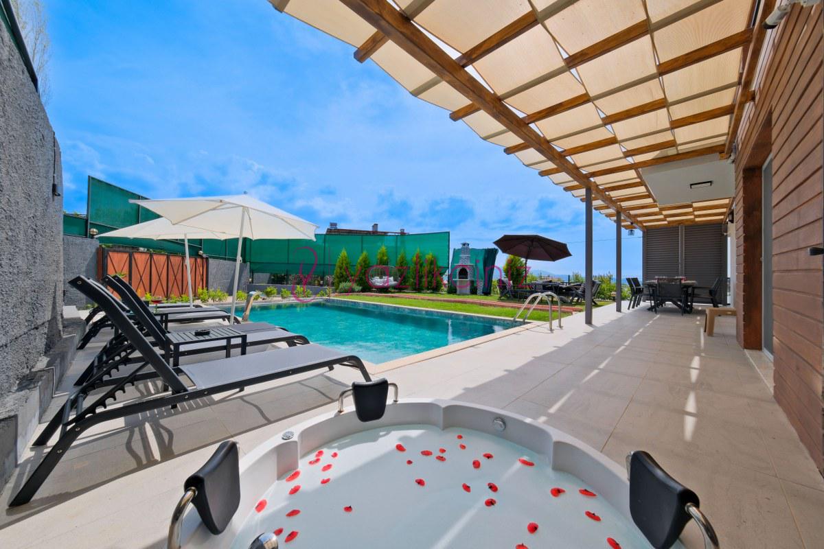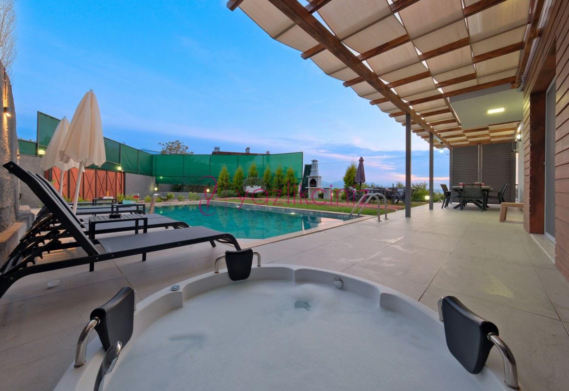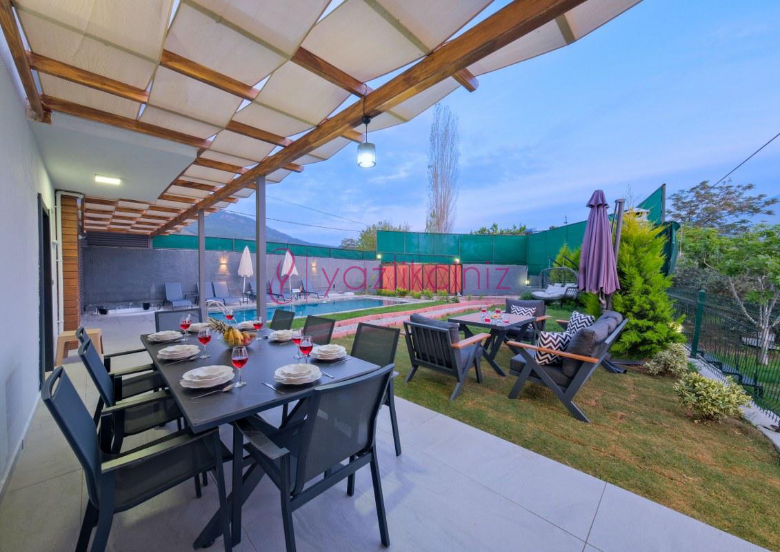 Havuz terasında özel yüzme havuzu, şezlonglar, güneş şemsiyesi, bahçe oturma grubu, salıncak bulunmaktadır.