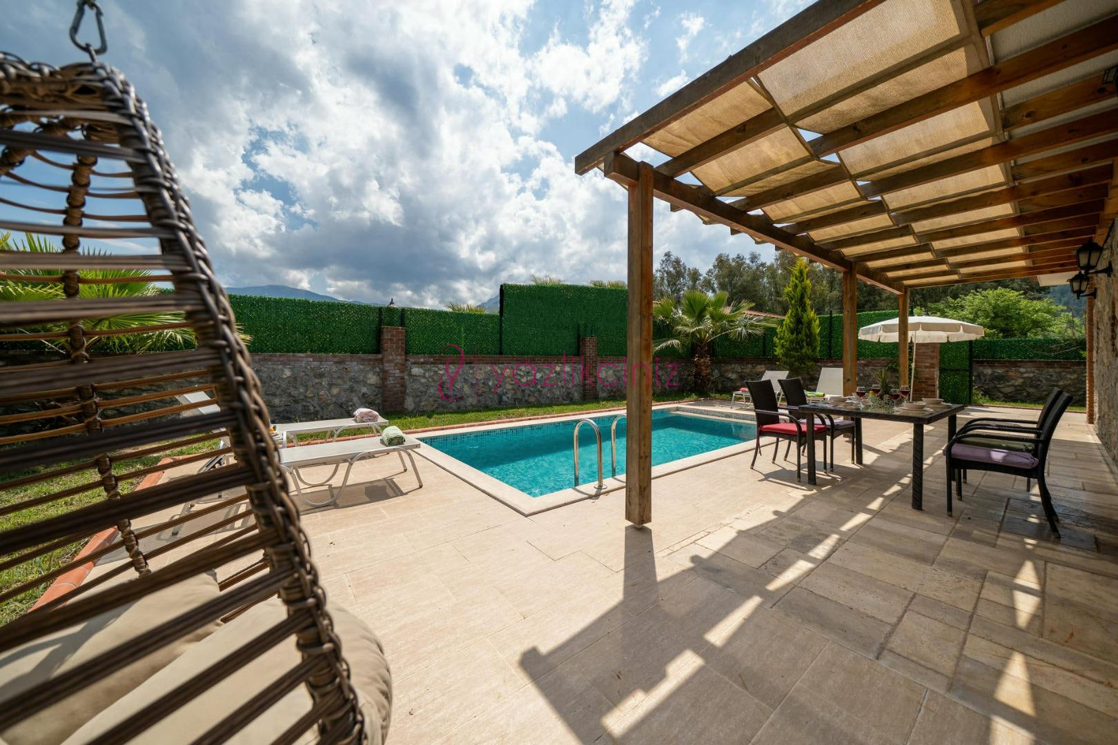 Villa Cemre Duo muhafazakâr tatil villası seçeneklerimizdendir. Tarihi dokusu ile ünlü muhteşem kayaköy de bulunan villamız 2 adet yatak odasına ve 2 banyoya sahip olup 4 kişi konaklama kapasitesine sahiptir. 2 yatak odasında 1 çift kişilik ve 2 tek kişilik yatak bulunmaktadır. Açık plan oturma/yemek odası ve mutfak bölümünden, dışarıdan görünmeyecek şekilde tasarlanmış yüzme havuzu ve mangal/veranda alanına geçilmektedir.