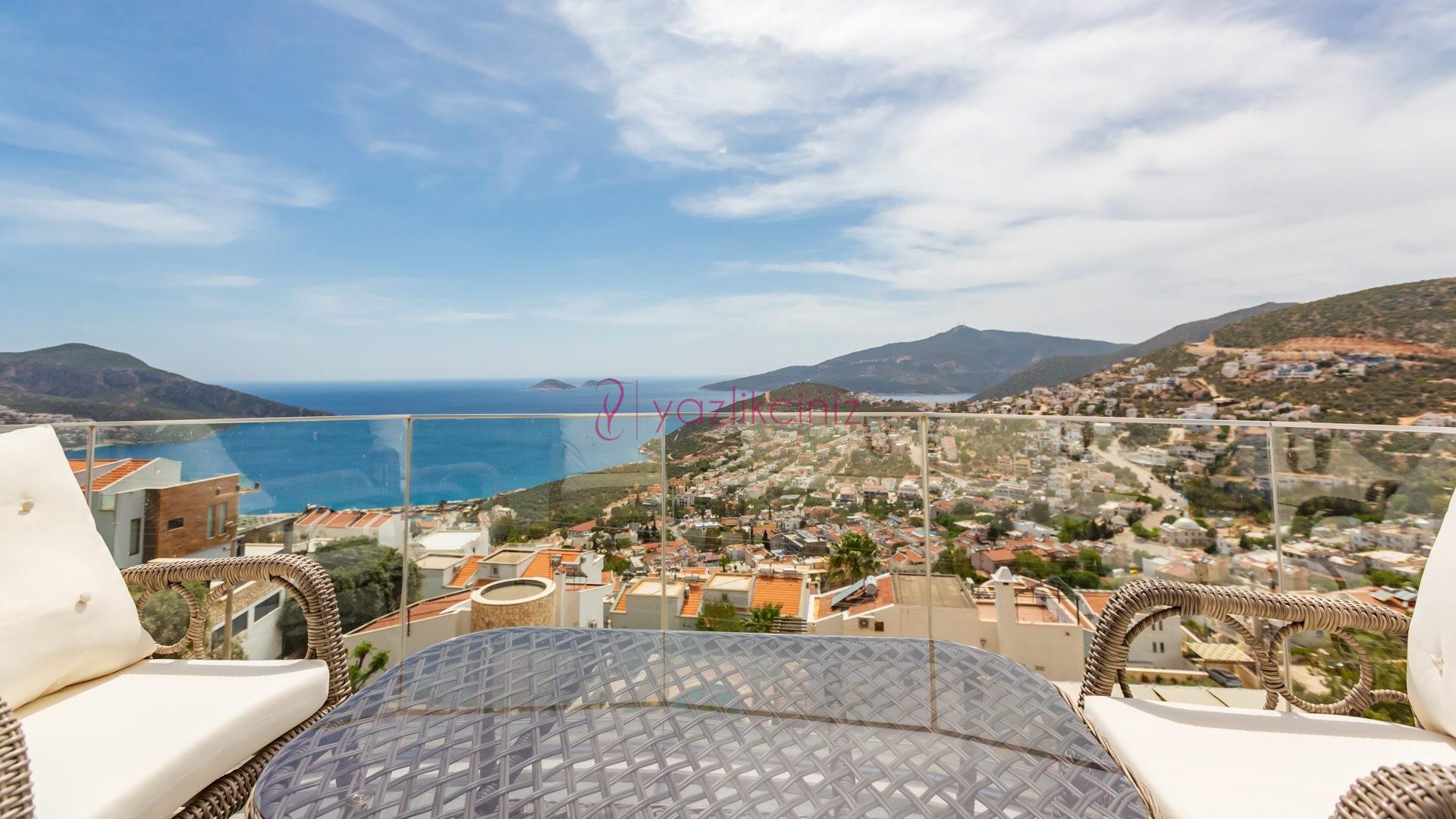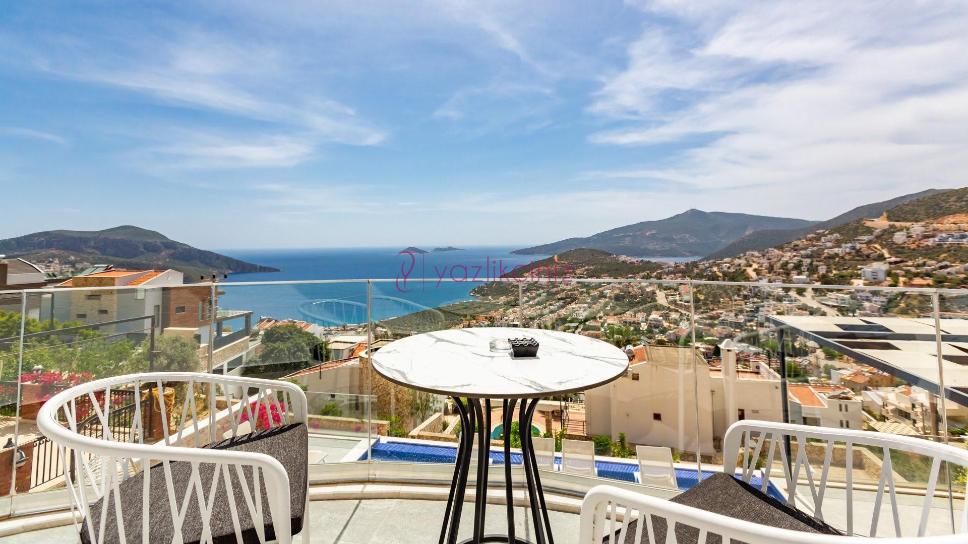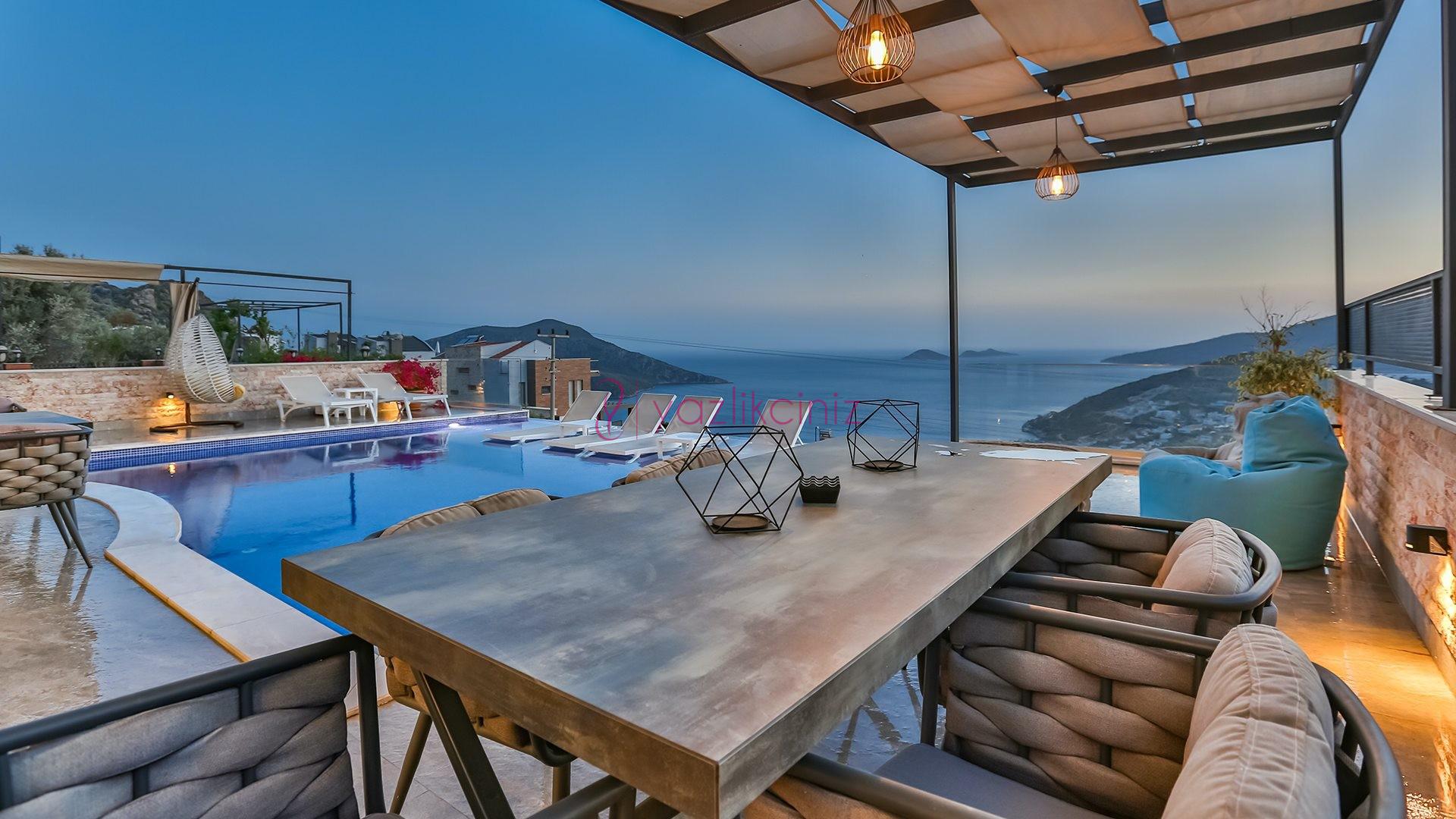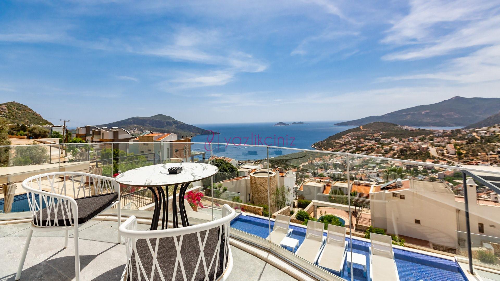 Villa Cira, Kalkan Kızıltaş mevkiinde harikulade deniz manzarası ile Kalkanı ayaklarınızın altına sermektedir.