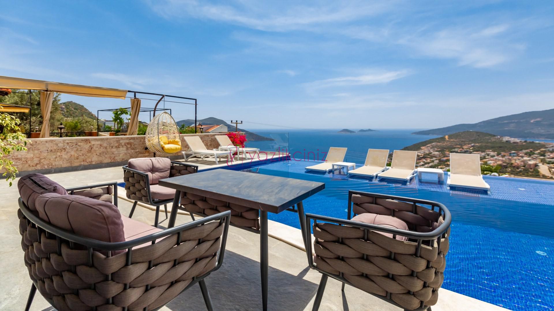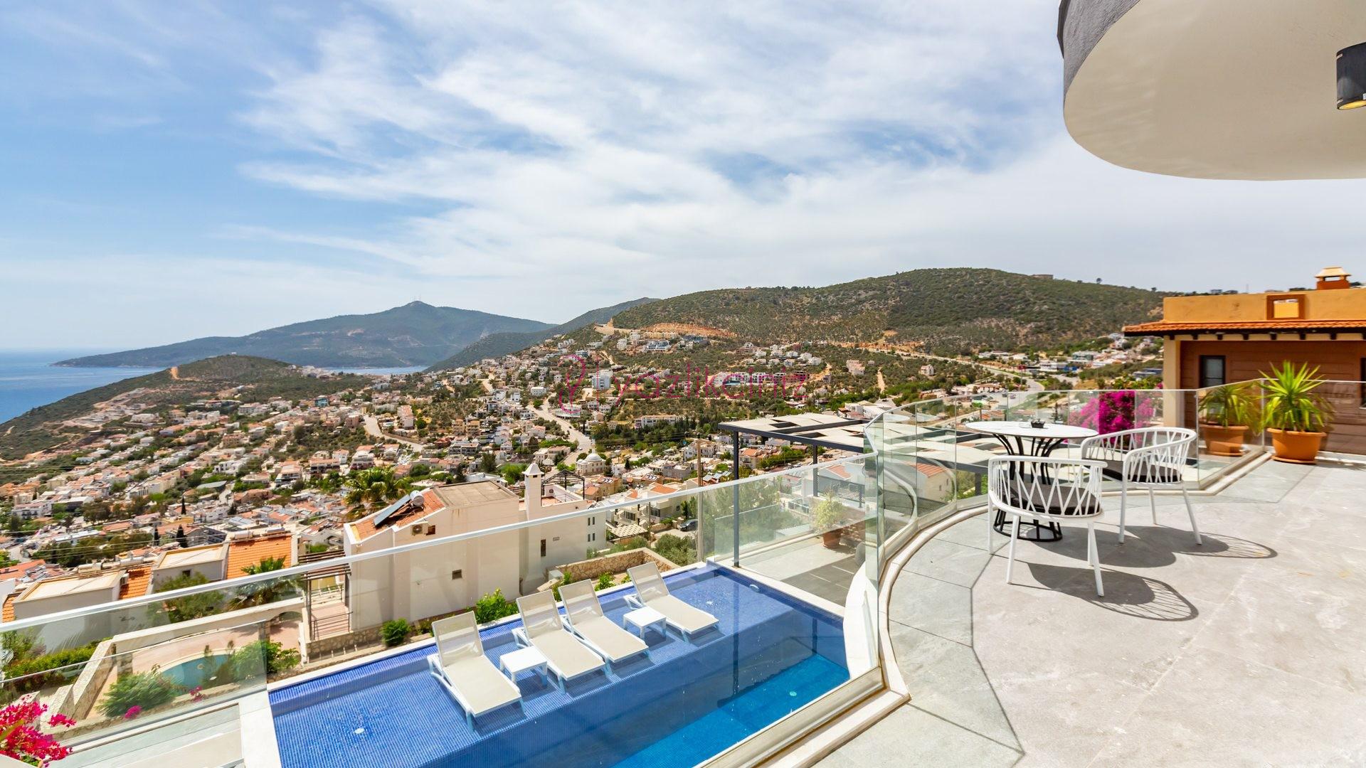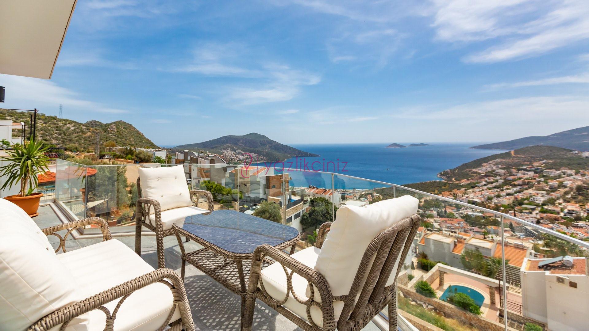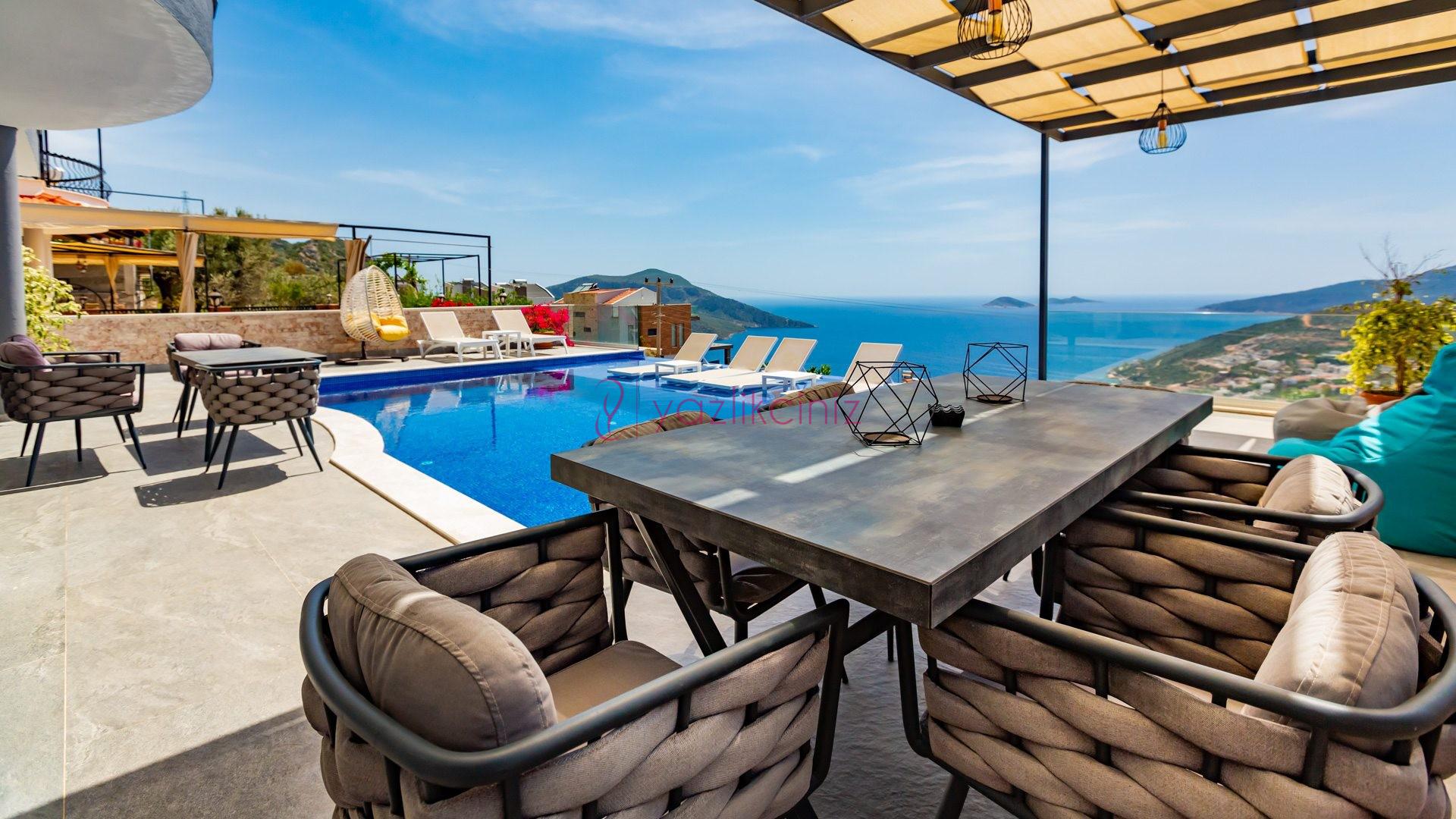 Villa Cira, Kalkan Kızıltaş mevkiinde harikulade deniz manzarası ile Kalkanı ayaklarınızın altına sermektedir.