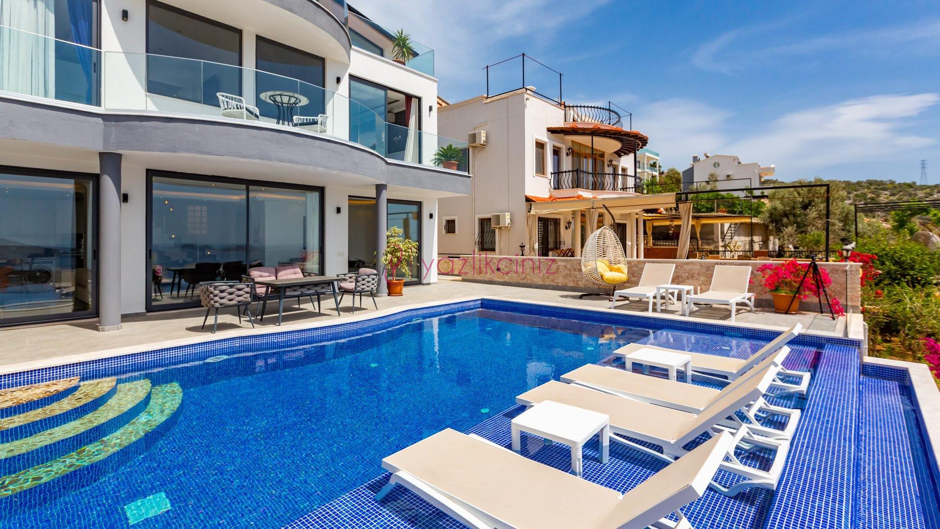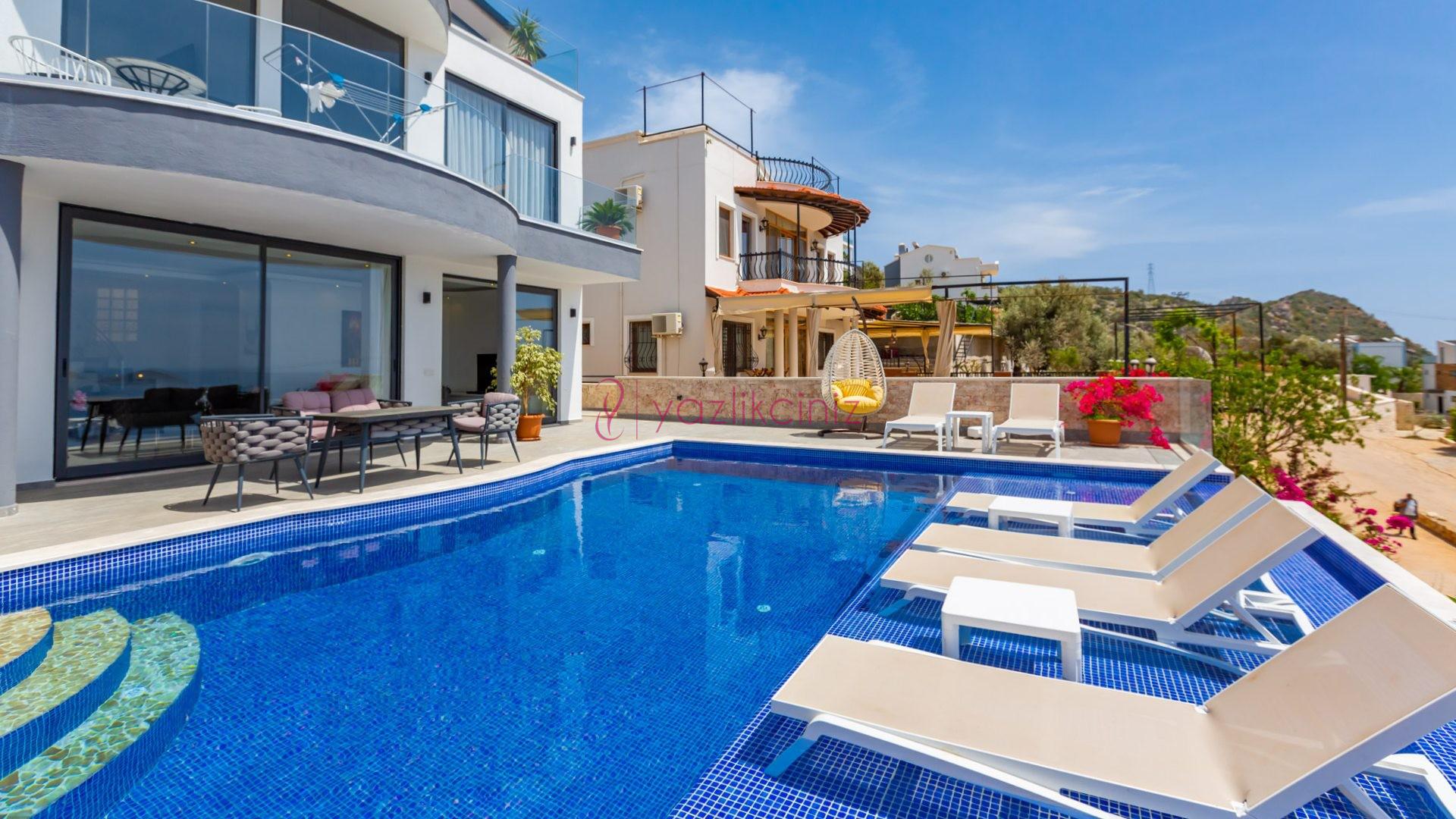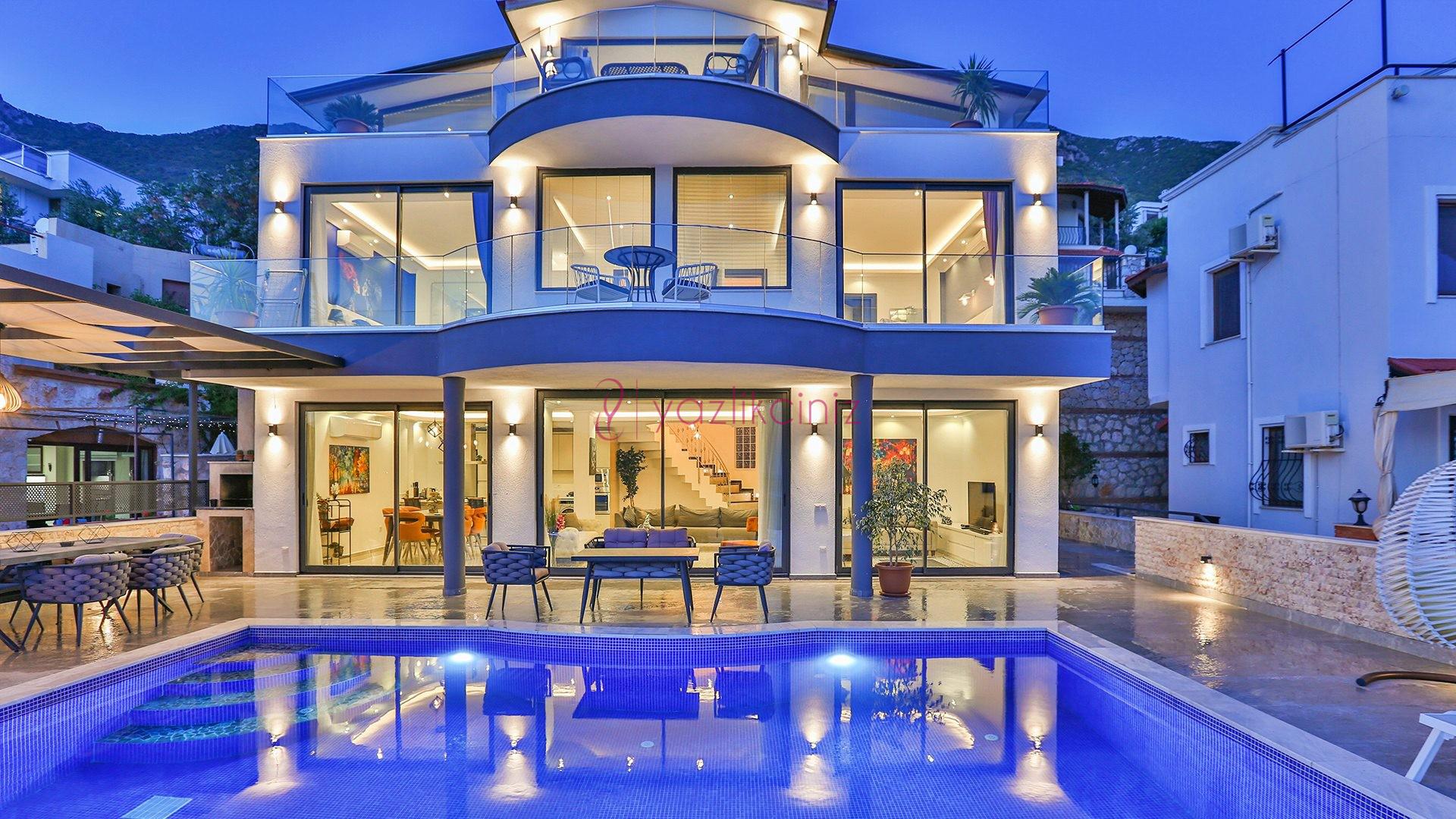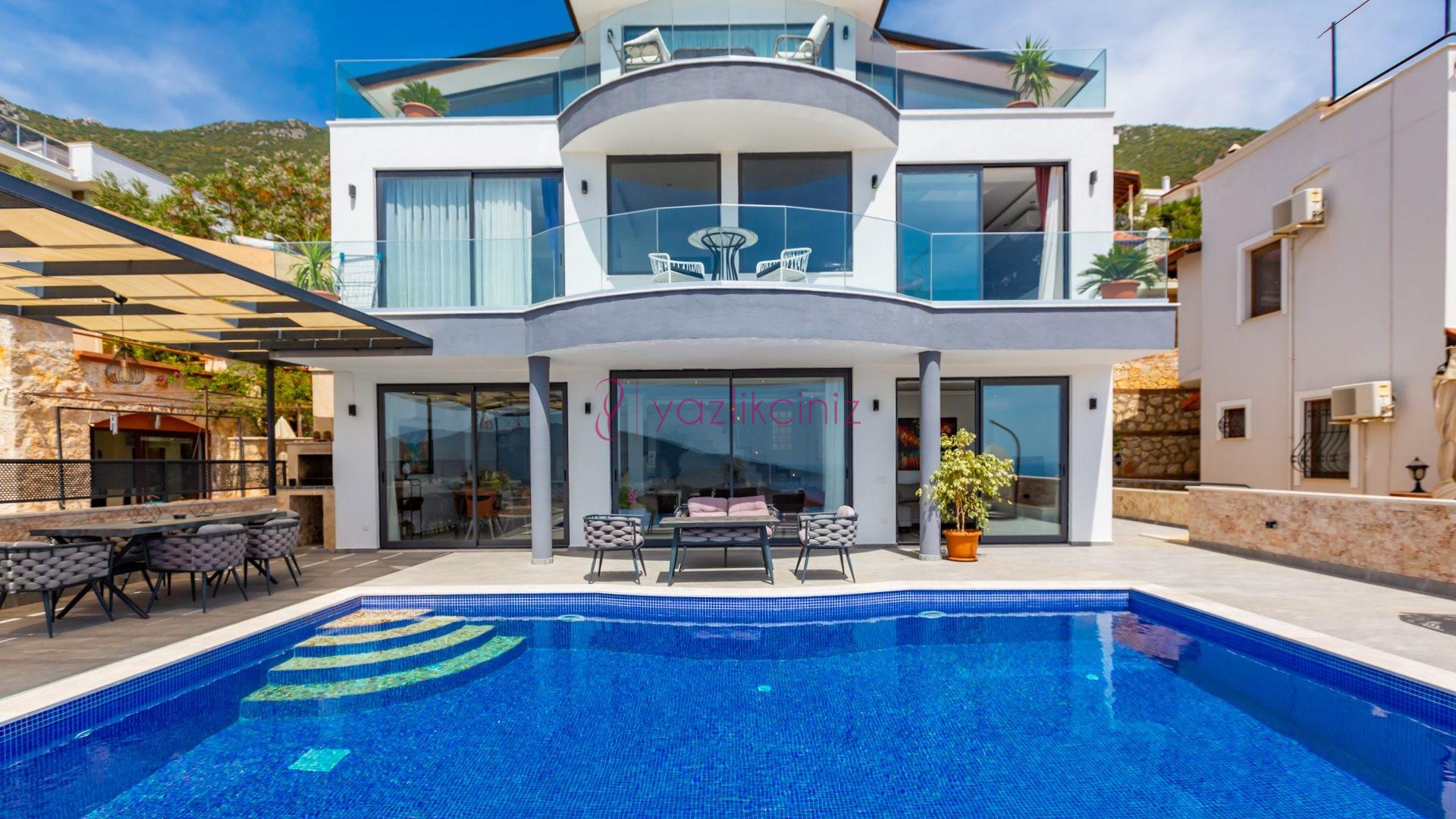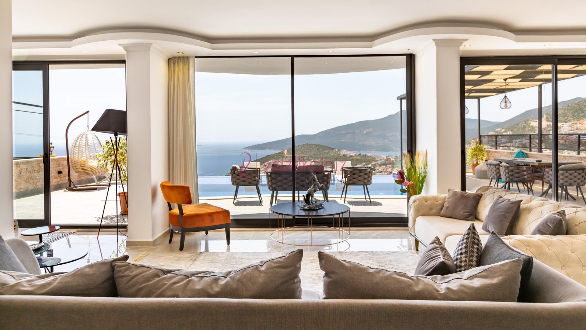 Villa Cira, Kalkan Kızıltaş mevkiinde harikulade deniz manzarası ile Kalkanı ayaklarınızın altına sermektedir.