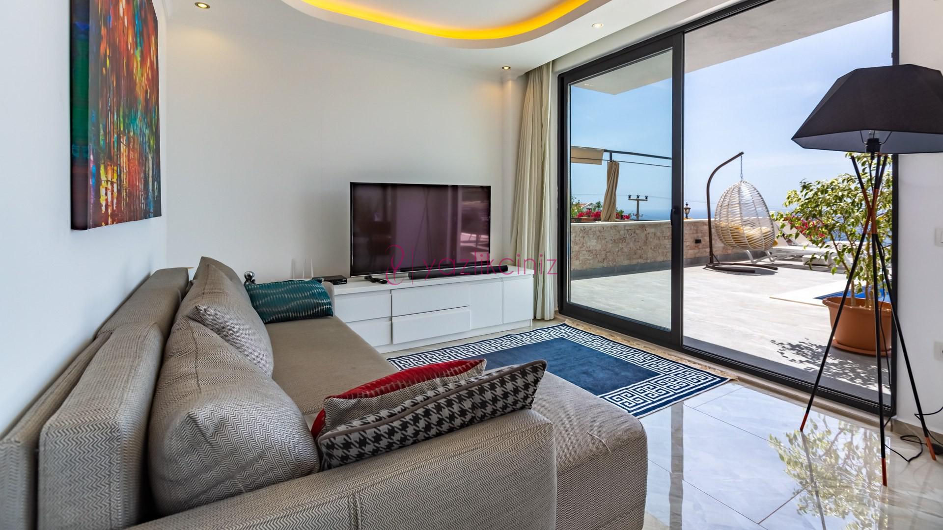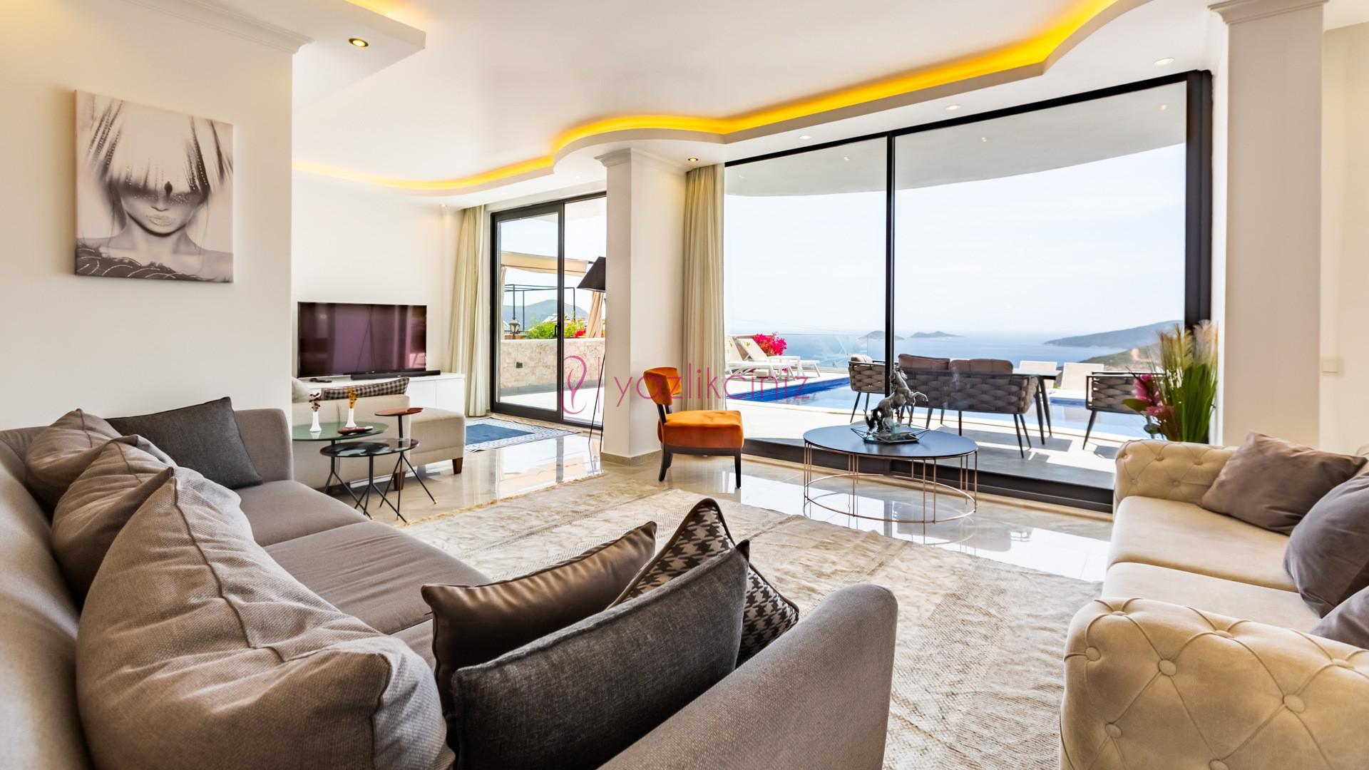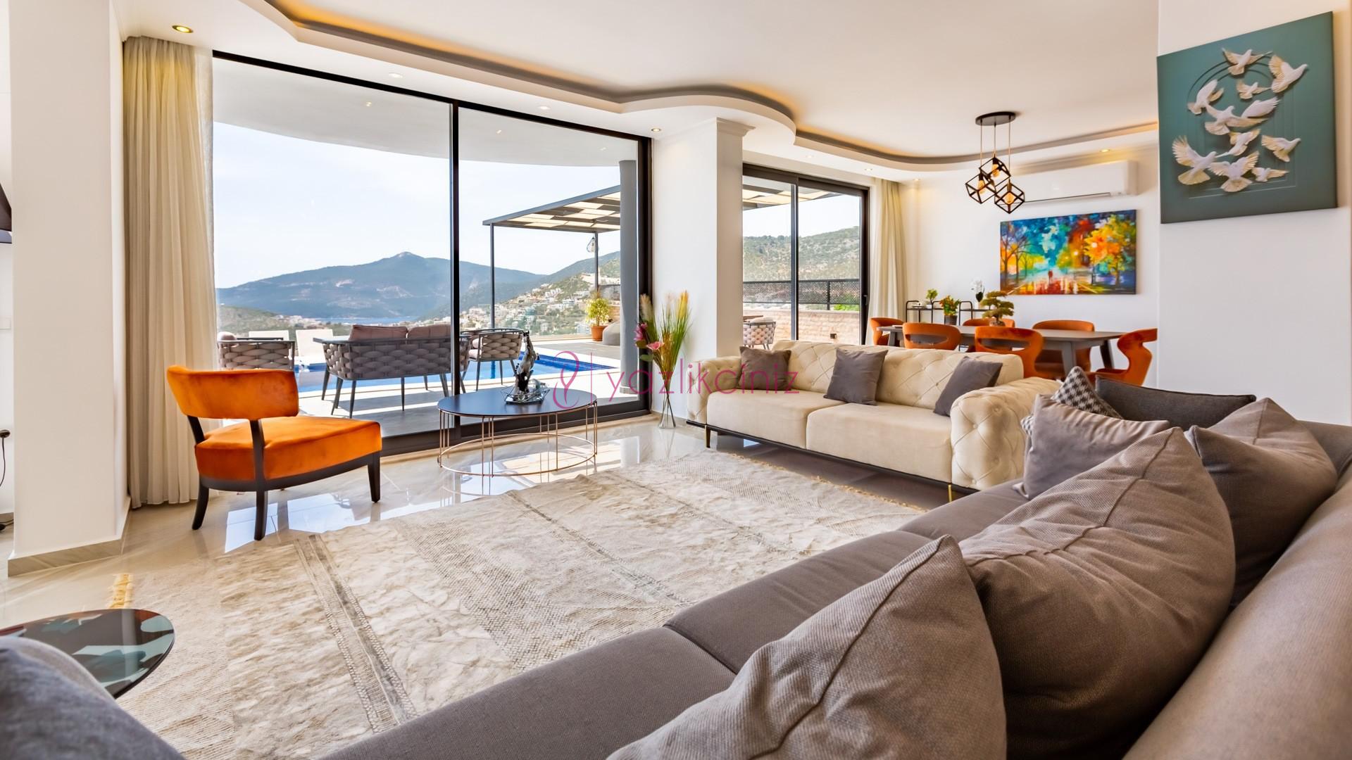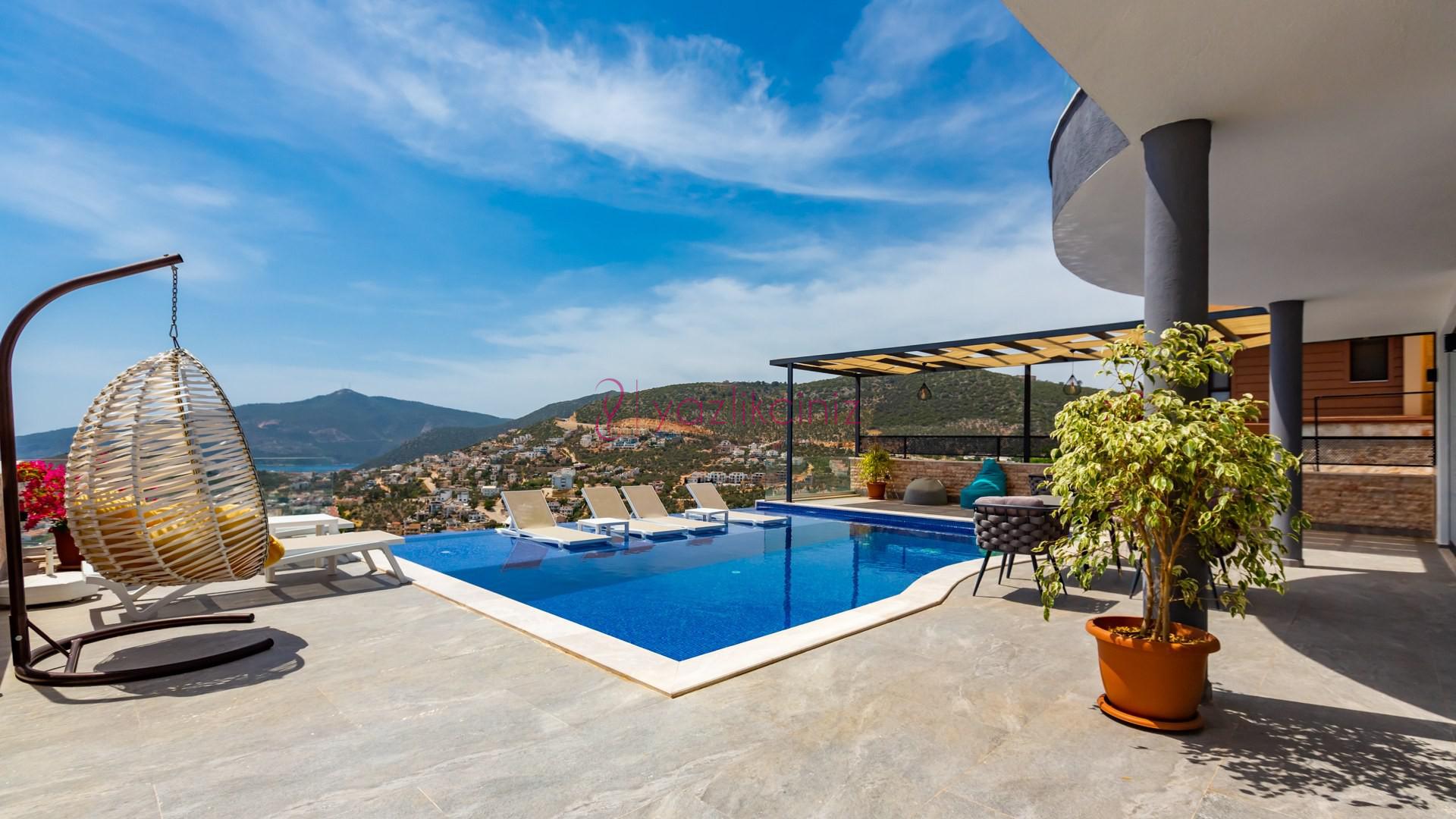 Villa Cira, Kalkan Kızıltaş mevkiinde harikulade deniz manzarası ile Kalkanı ayaklarınızın altına sermektedir.