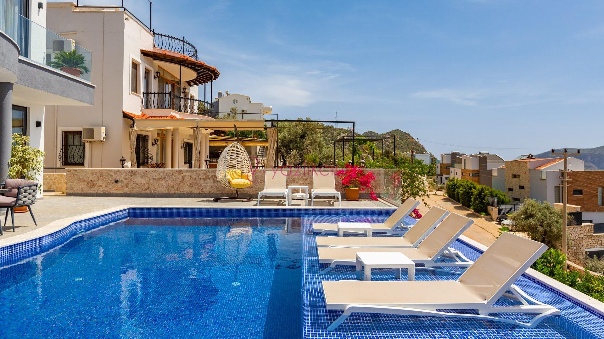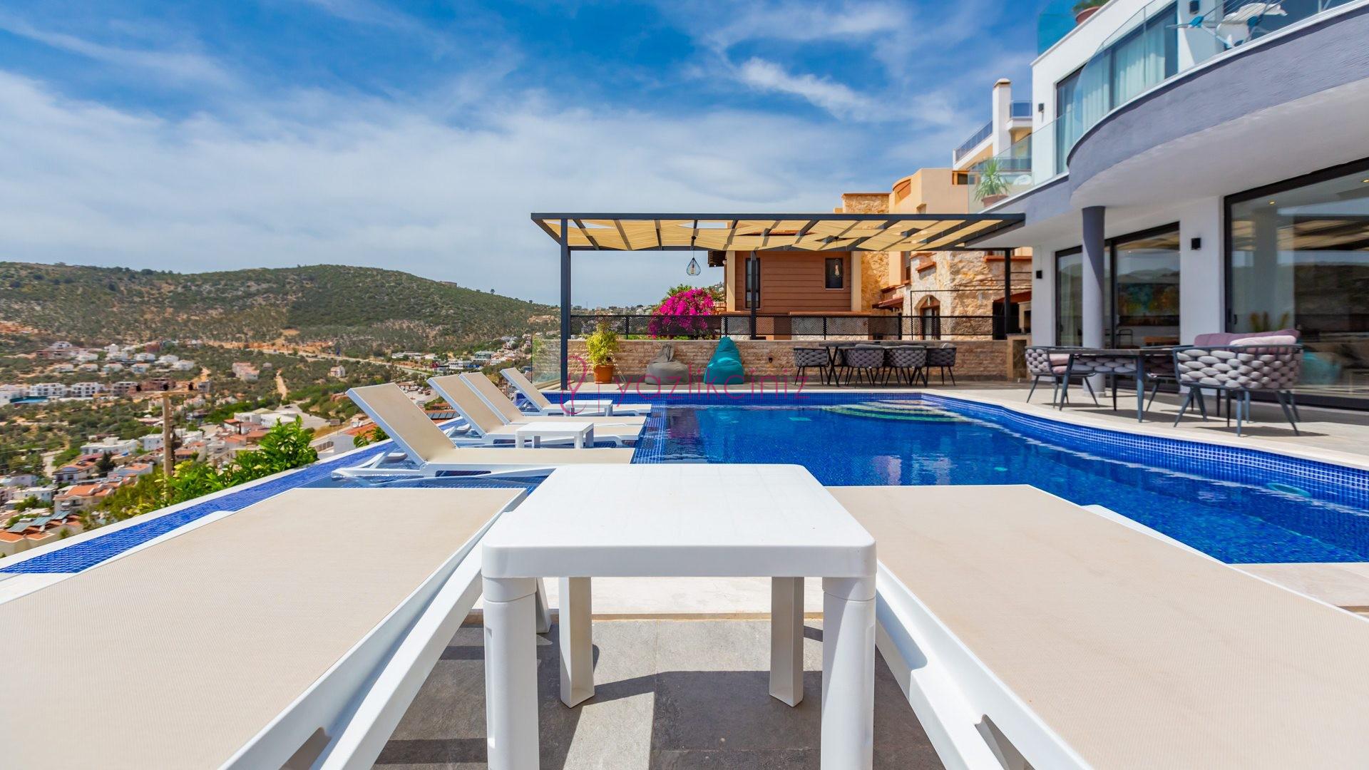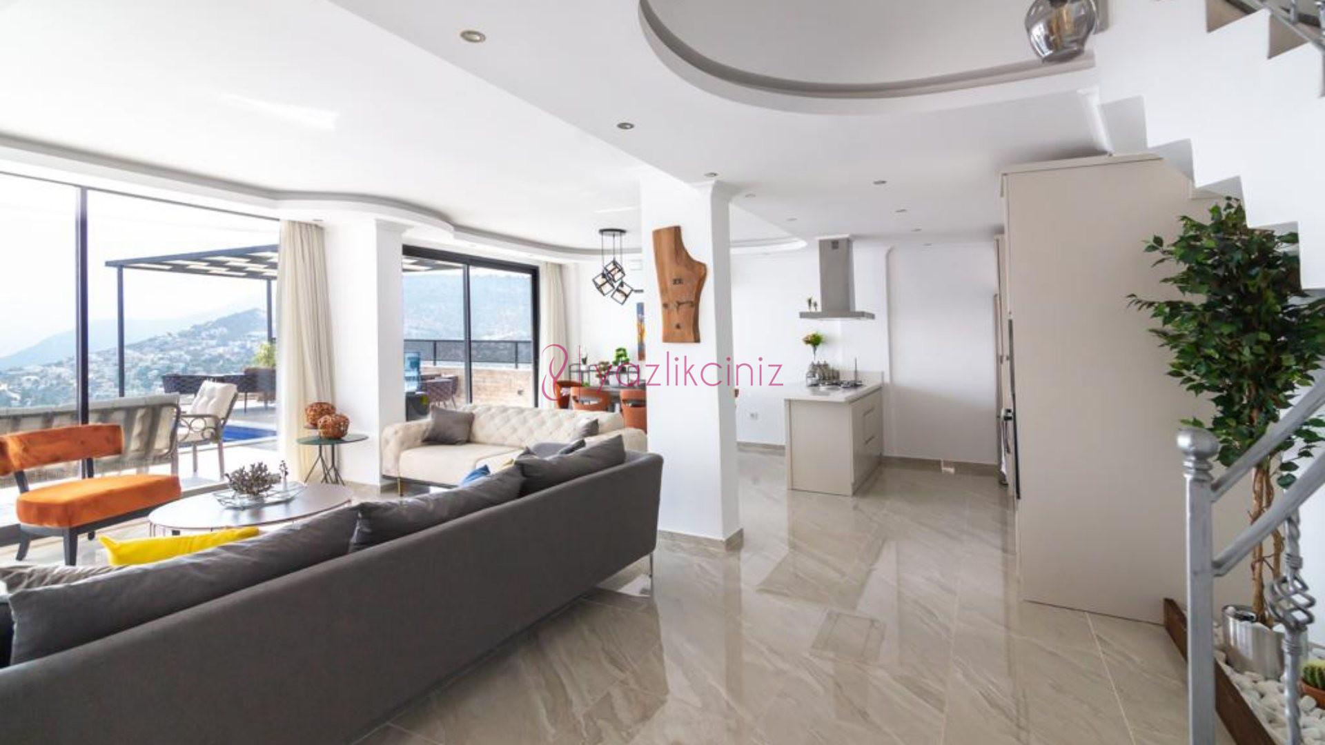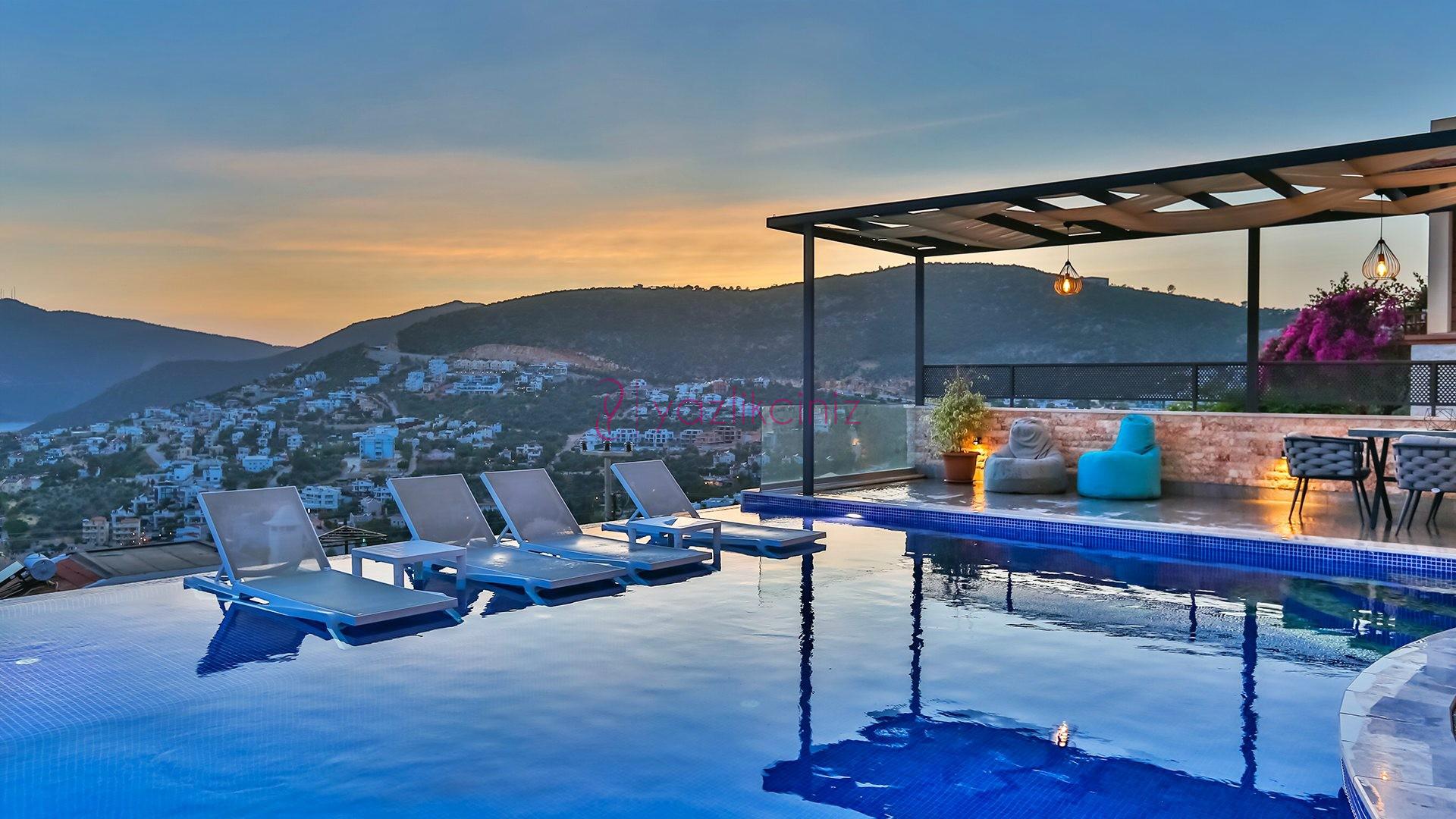 Villa Cira, Kalkan Kızıltaş mevkiinde harikulade deniz manzarası ile Kalkanı ayaklarınızın altına sermektedir.