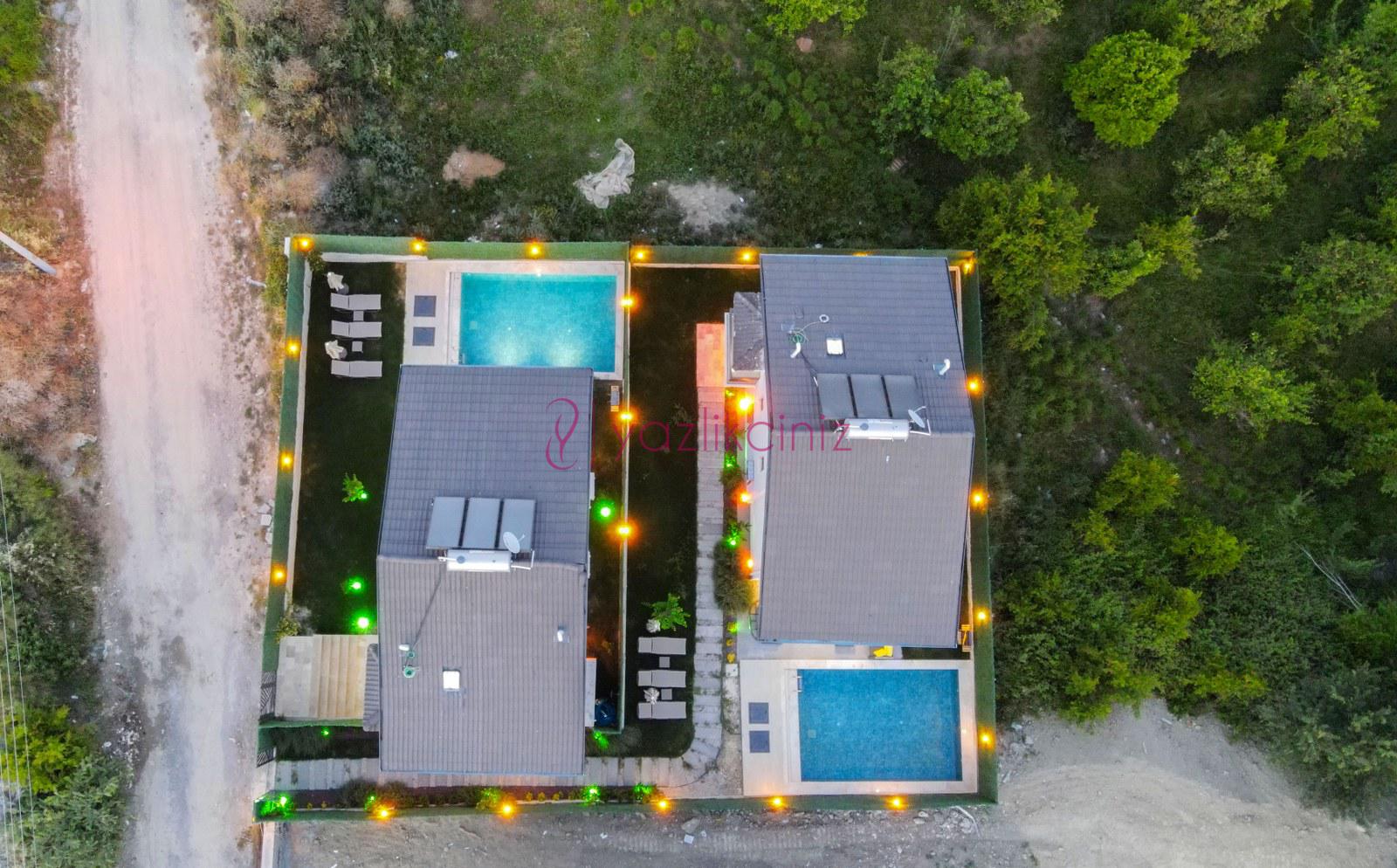 Not: Villanın güneşlenme terası ve havuzunun dış taraftan görünmemesi için gerekli önlemler alınmıştır fakat villanın diğer bölümlerinin görünürlüğü kesin olarak garanti edilememektedir.