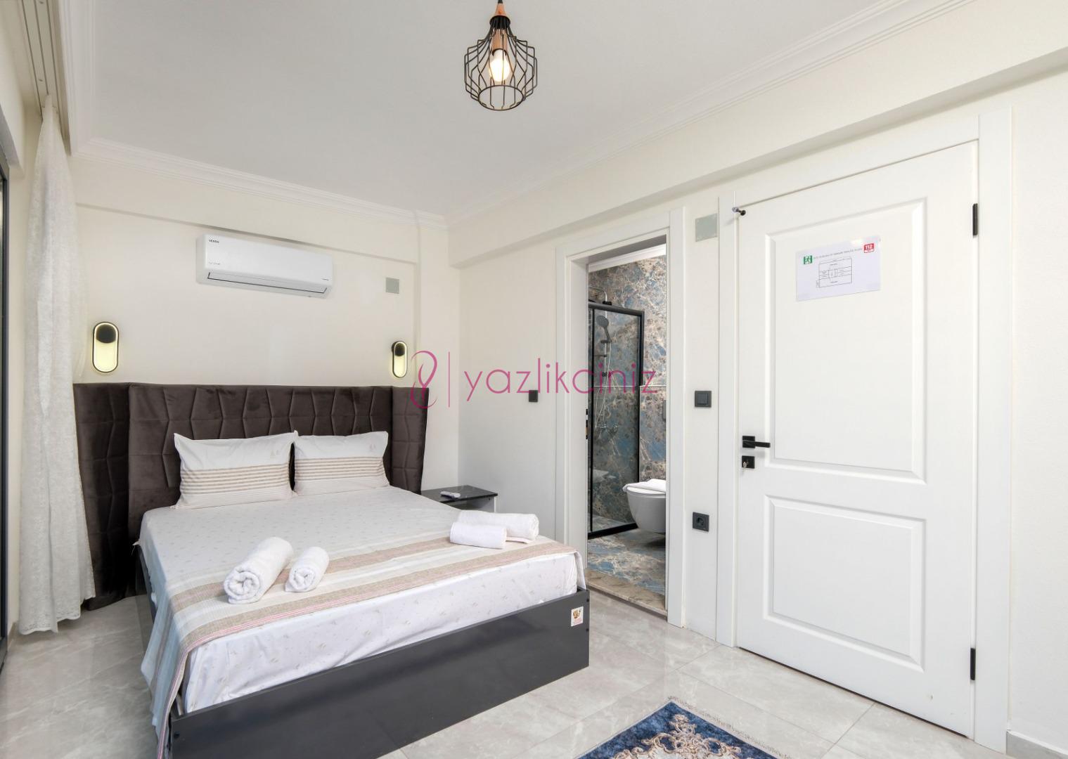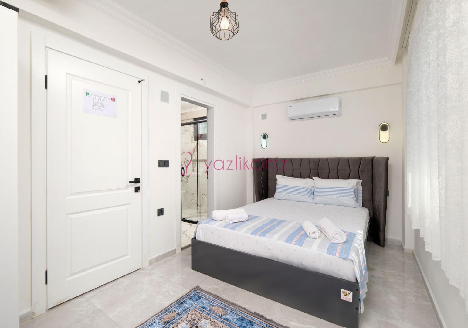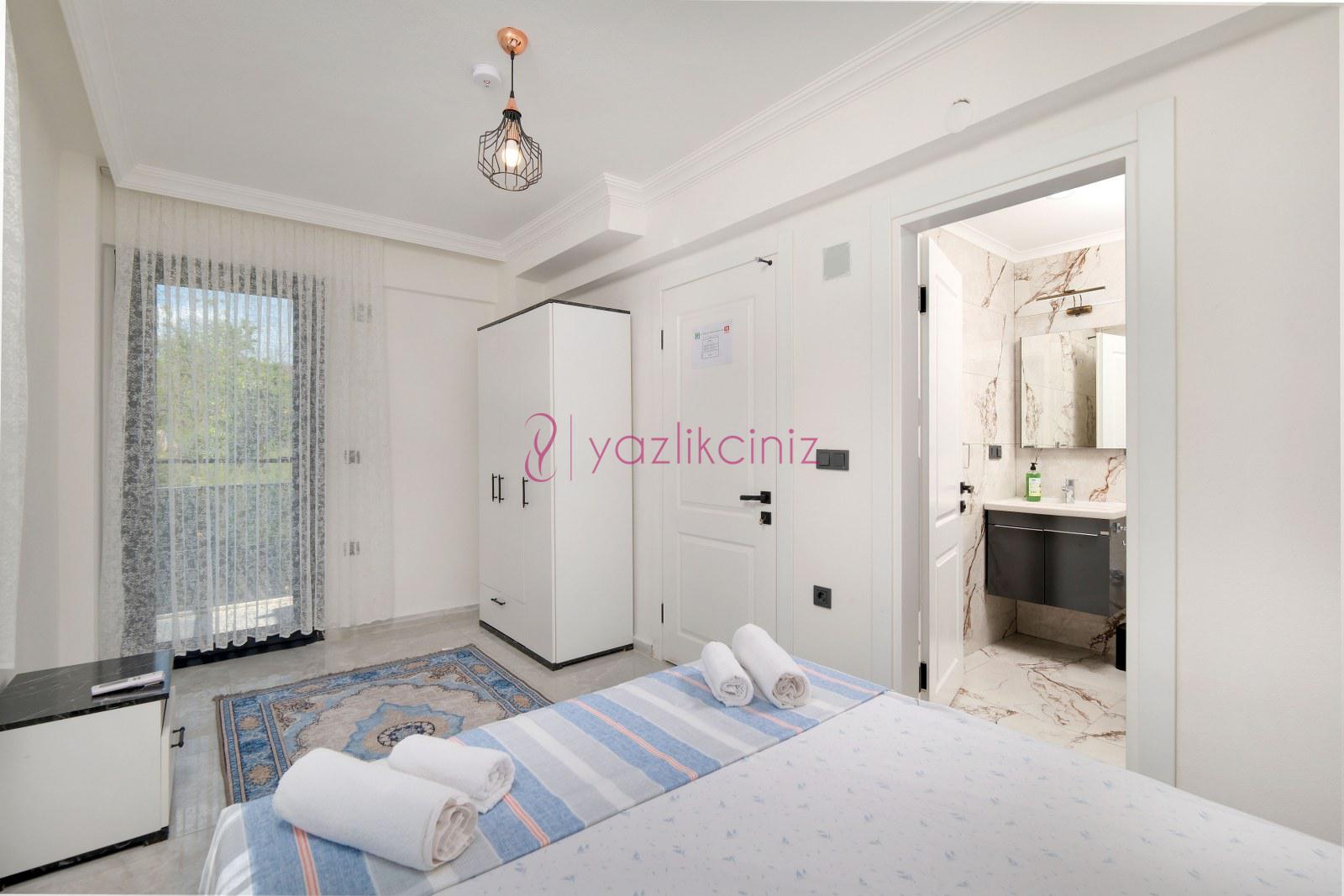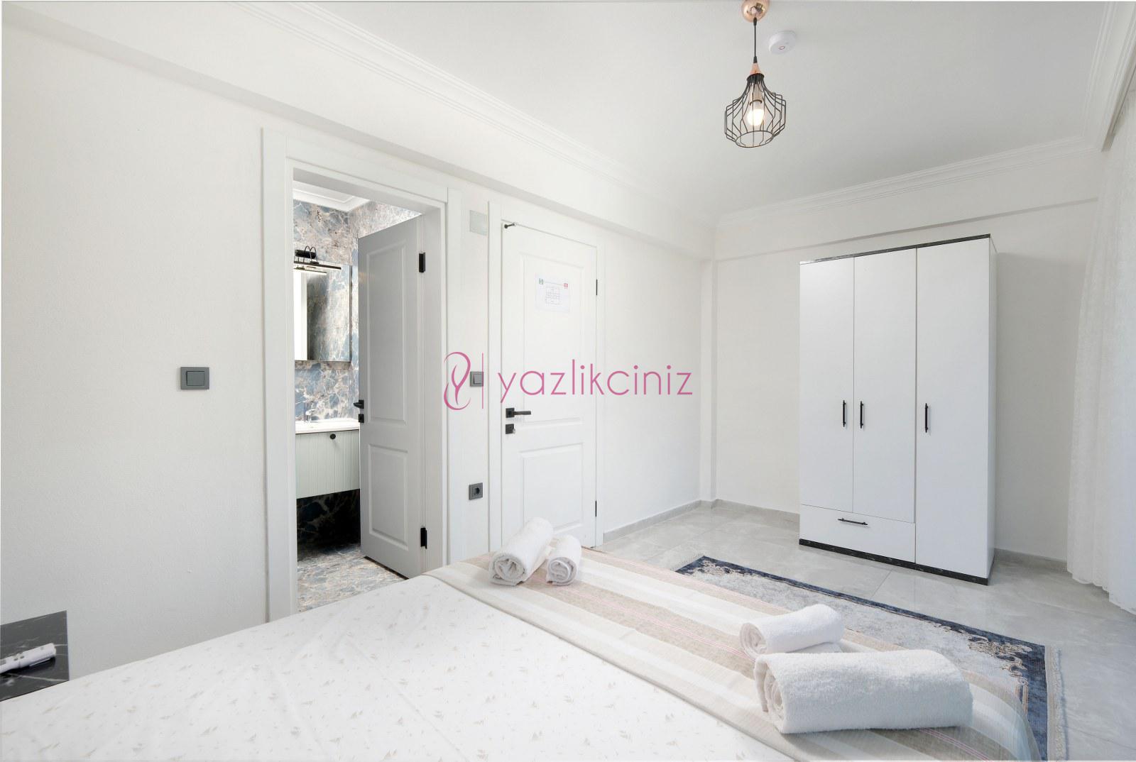 1. Yatak odası: En süit odada çift kişilik yatak, makyaj masası,klima, elbise dolabı, komodin, televizyon, tuvalet, banyo bulunmaktadır.