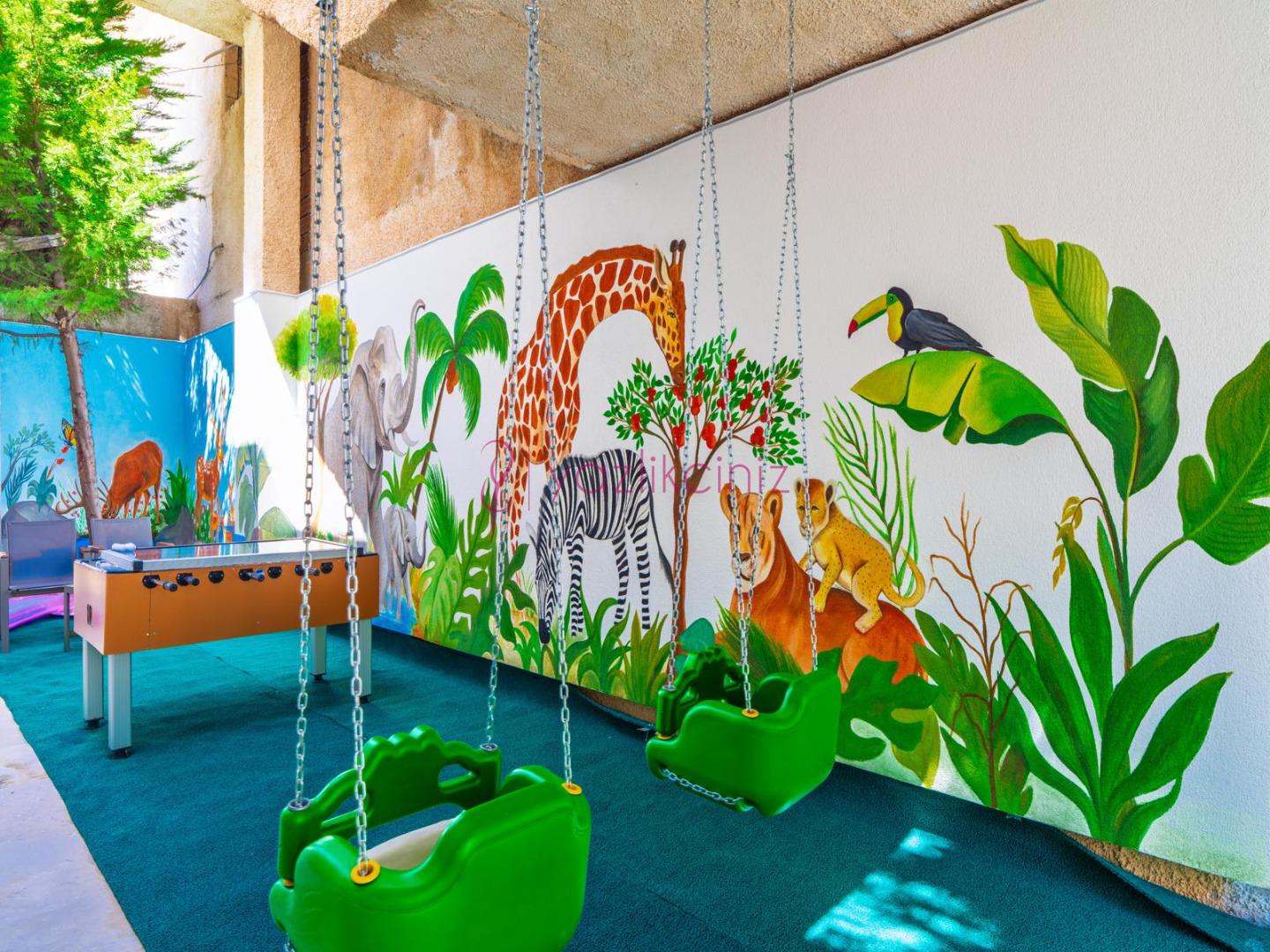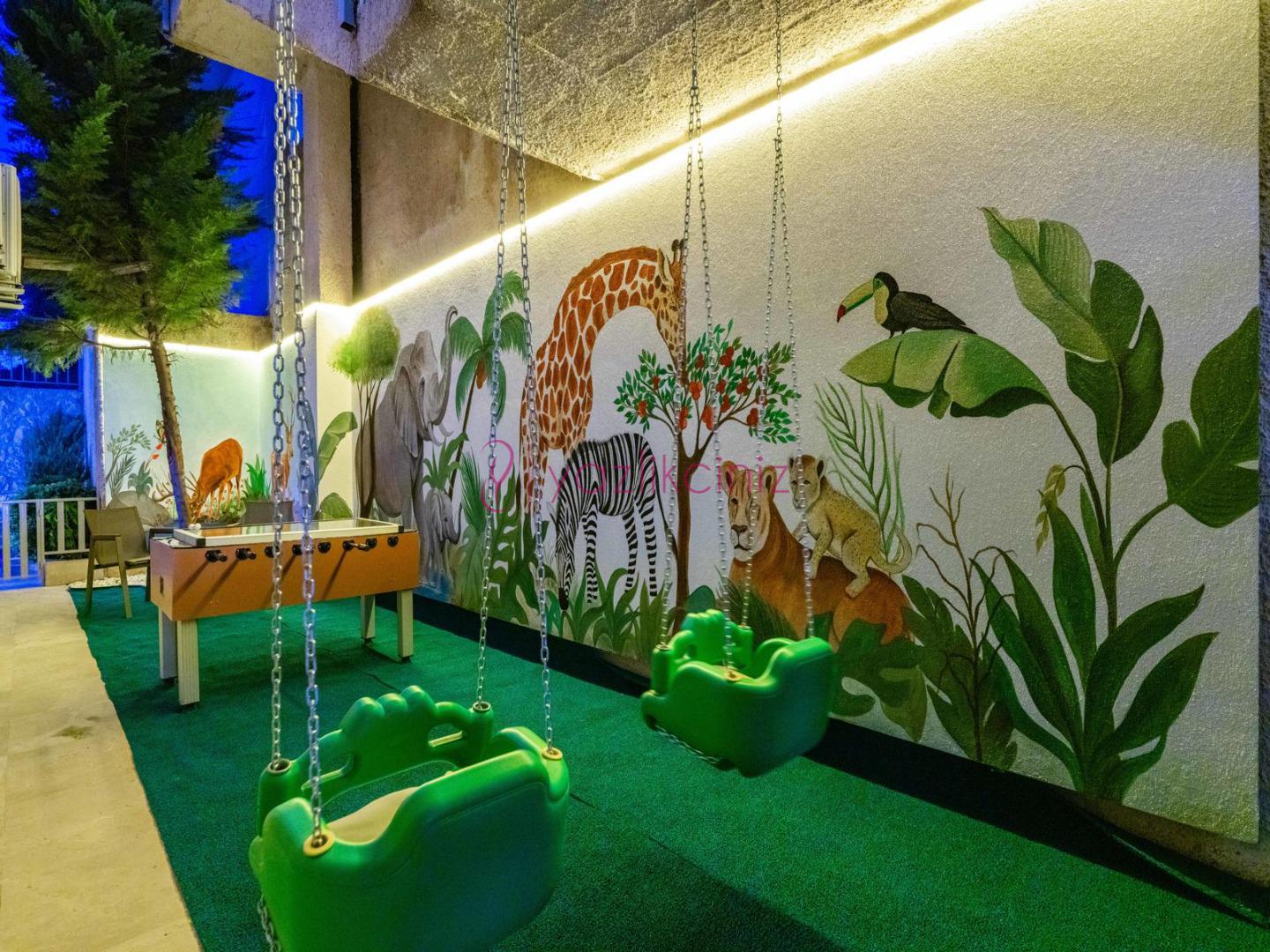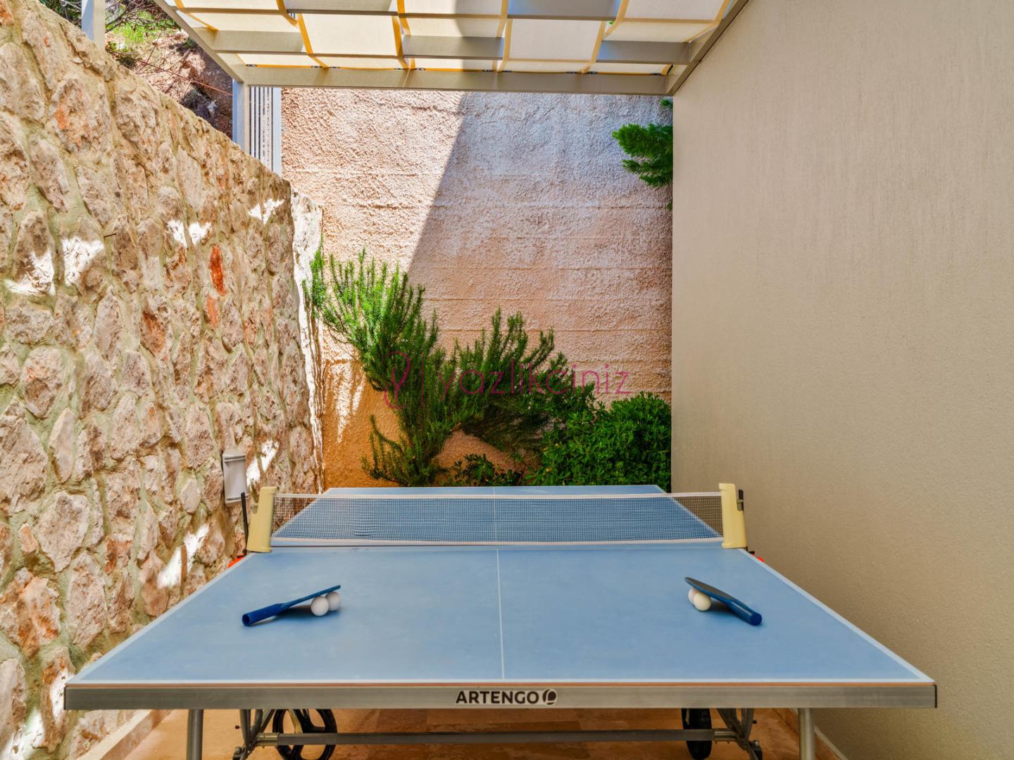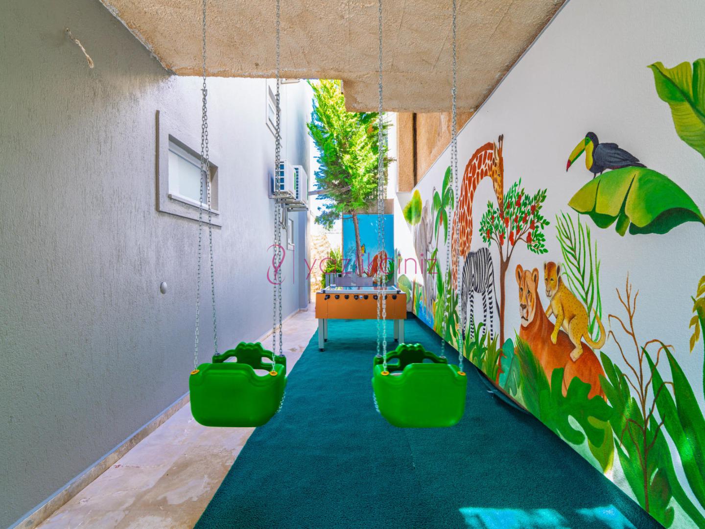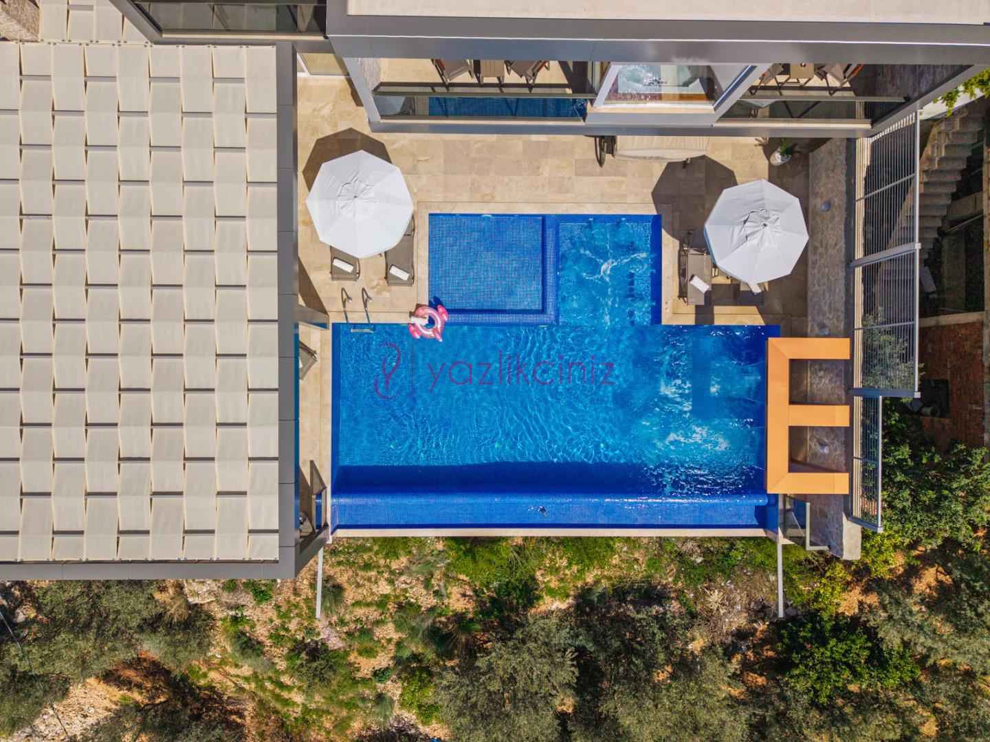 Bahçe içerisinde özel yüzme havuzu, şezlonglar, güneş şemsiyesi, bahçe mobilyaları, barbekü bulunmaktadır.