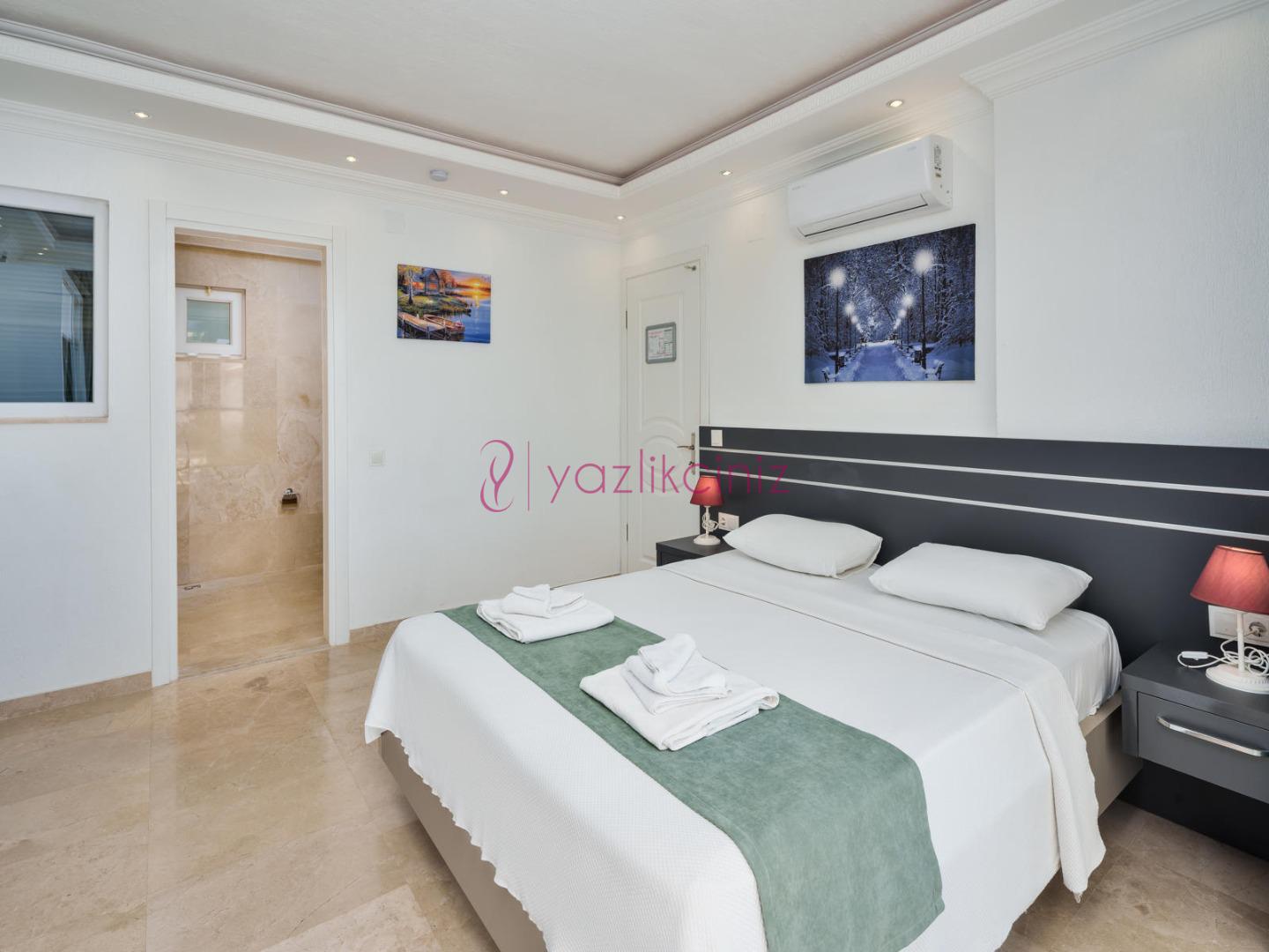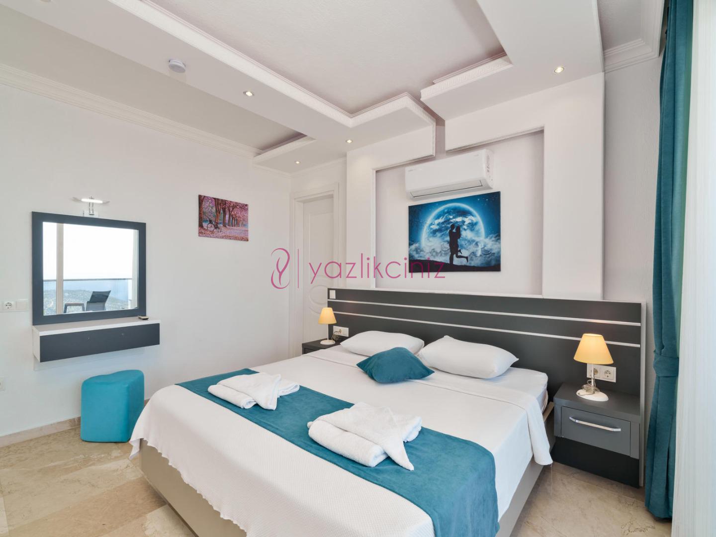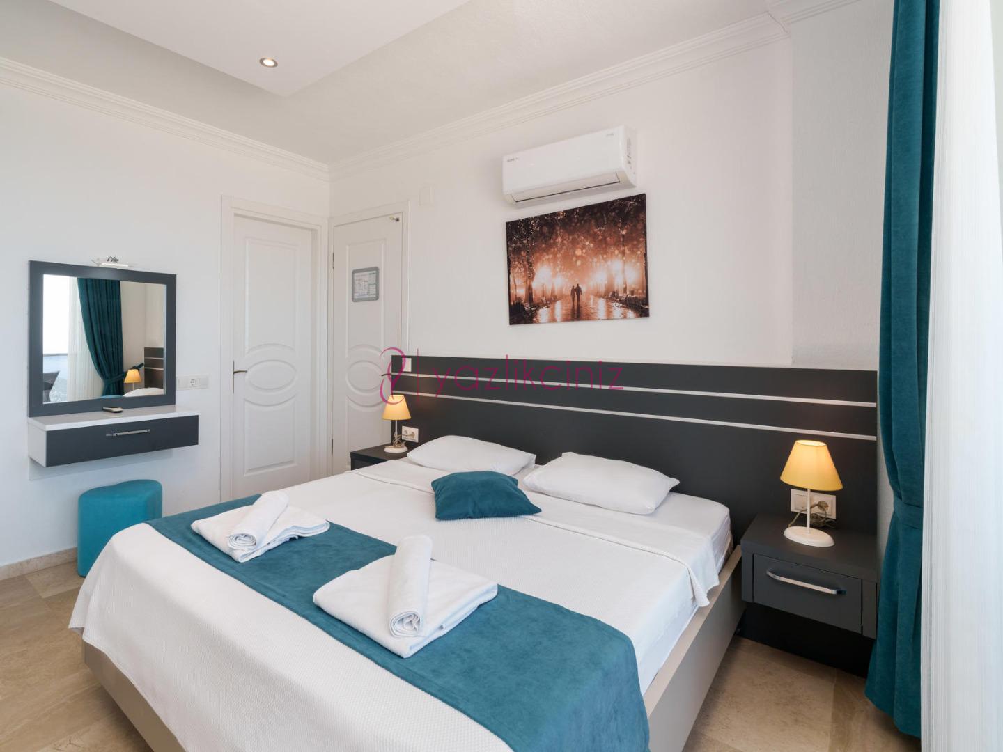 1. Yatak Odası: 1 adet çift kişilik yatak, klima, komodin, elbise dolabı, makyaj masası, televizyon, jakuzi, banyo ve tuvalet bulunmaktadır.