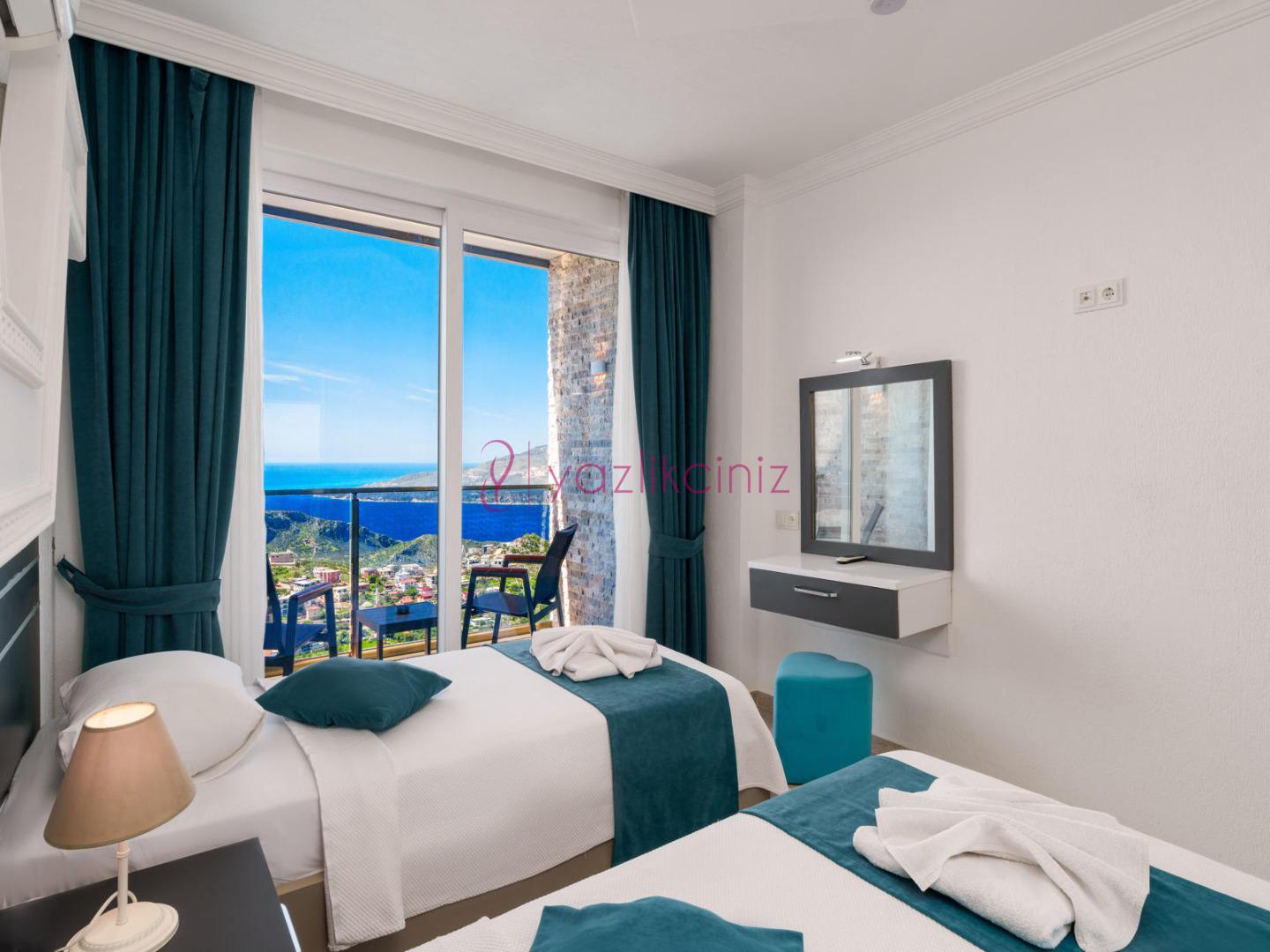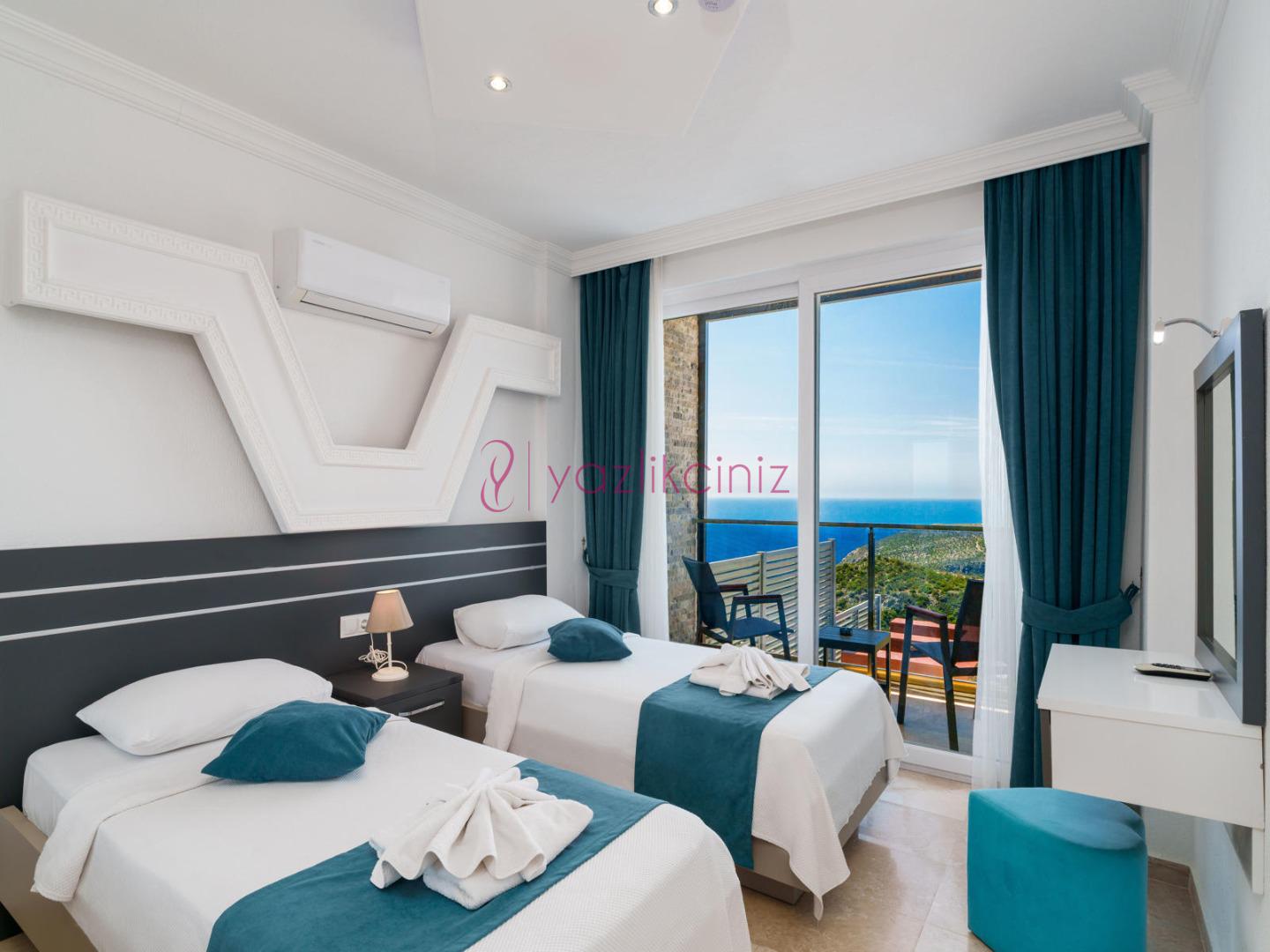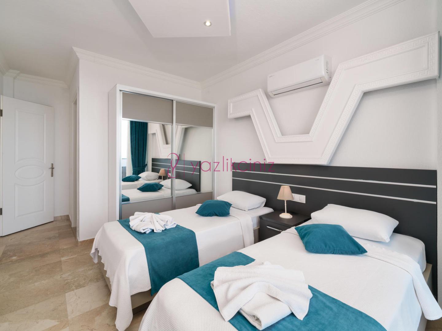 2. Yatak Odası: 2 adet tek kişilik yatak, jakuzi, klima, komodin, elbise dolabı, makyaj masası, balkon, banyo ve tuvalet bulunmaktadır.