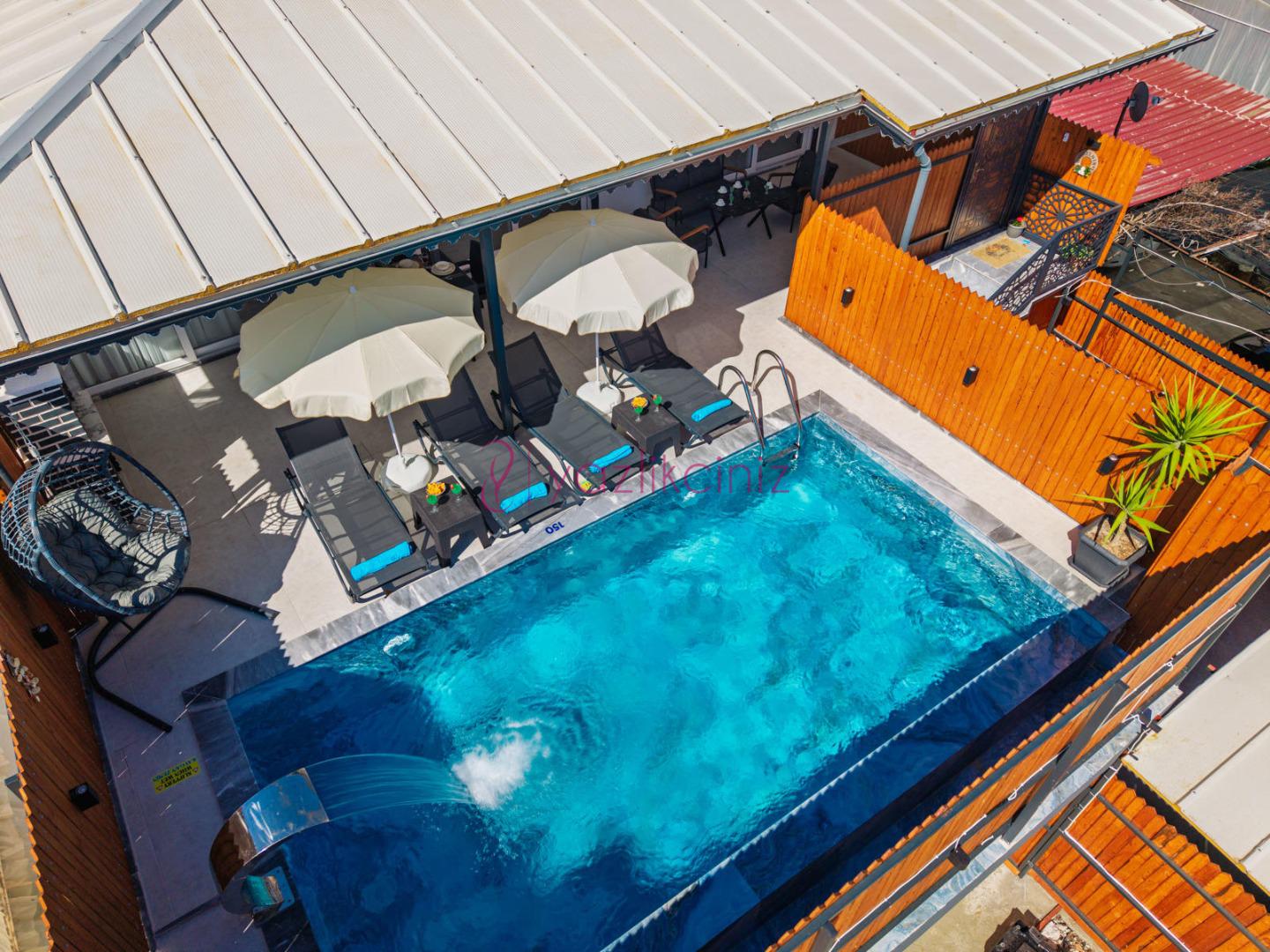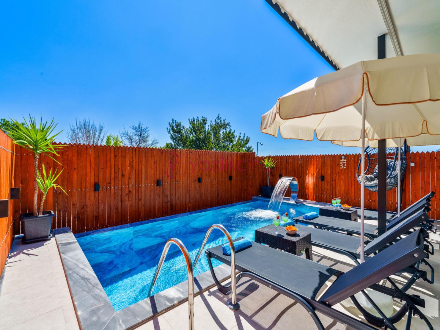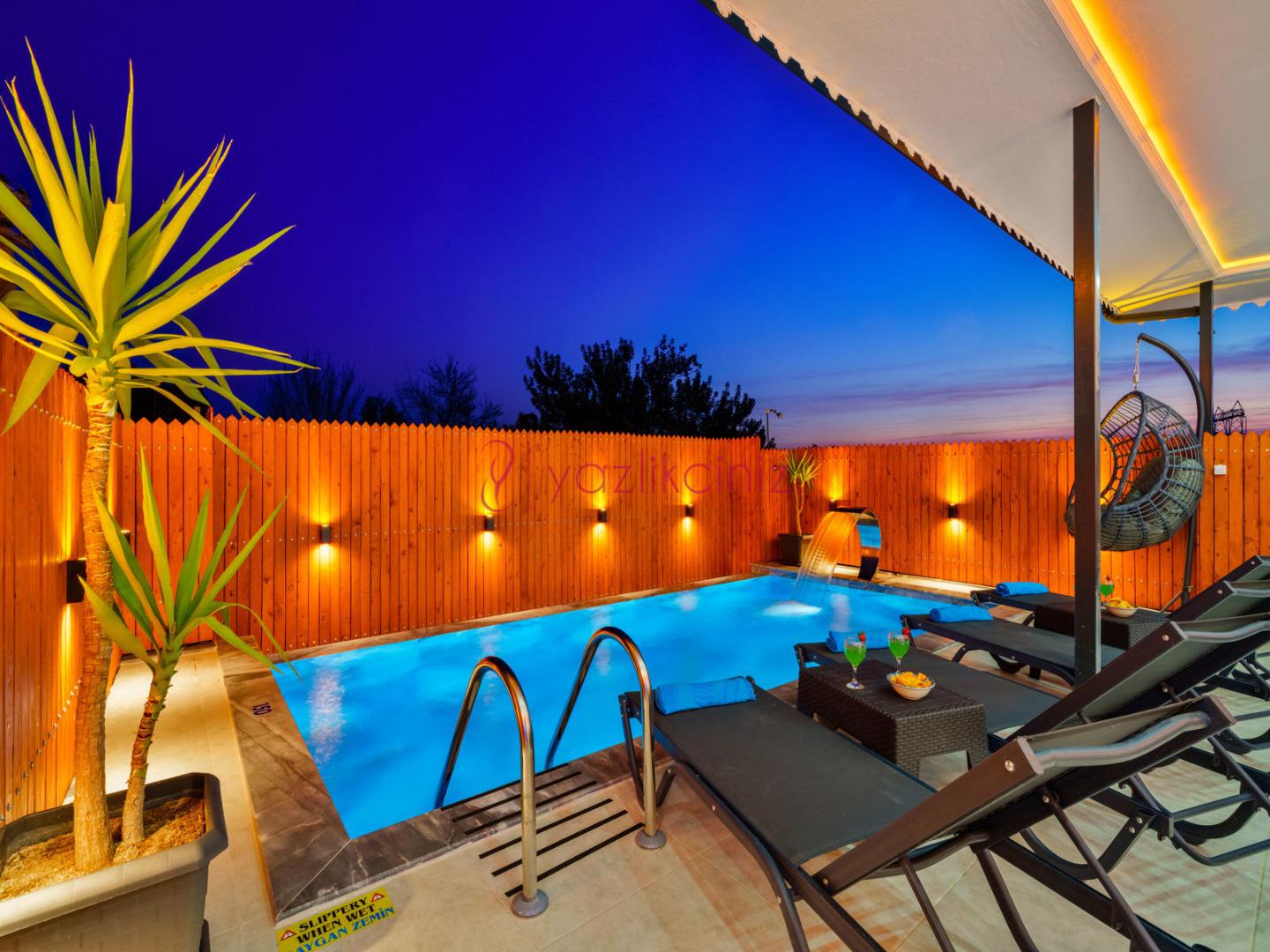 Korunaklı, lüks, geniş bahçeli, kapalı havuzlu, çift jakuzili, saunalı, kiralık tatil villası