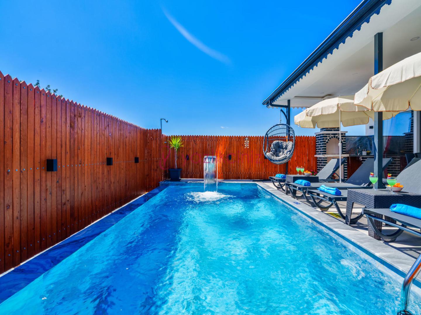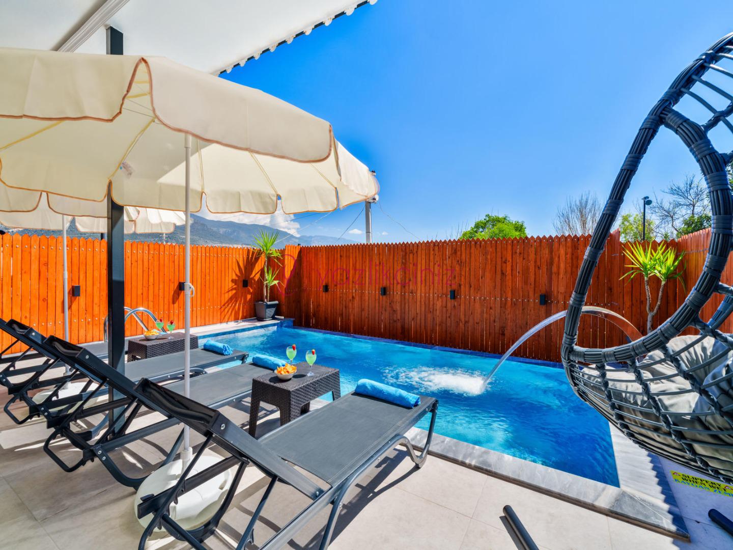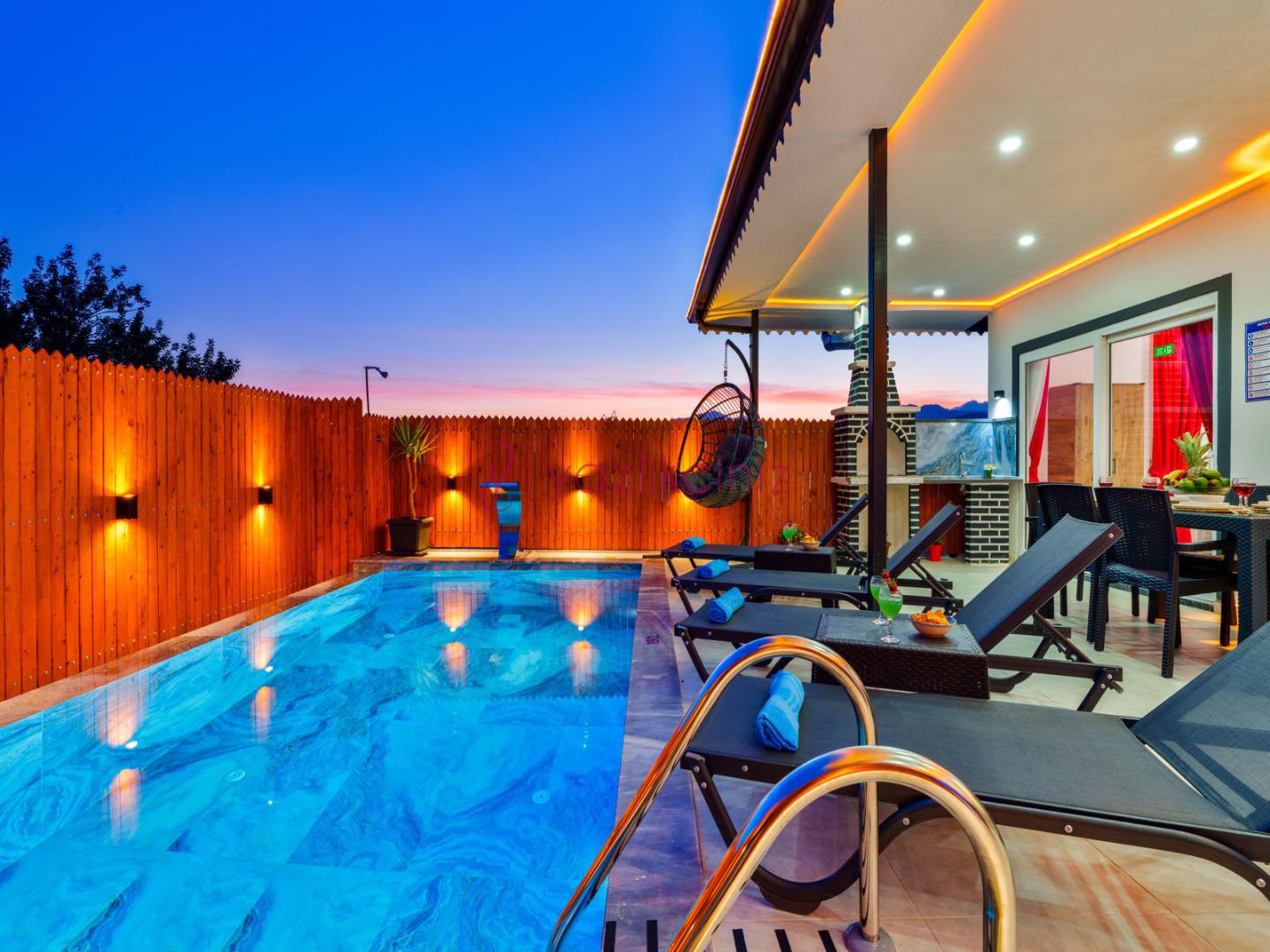 Korunaklı, lüks, geniş bahçeli, kapalı havuzlu, çift jakuzili, saunalı, kiralık tatil villası