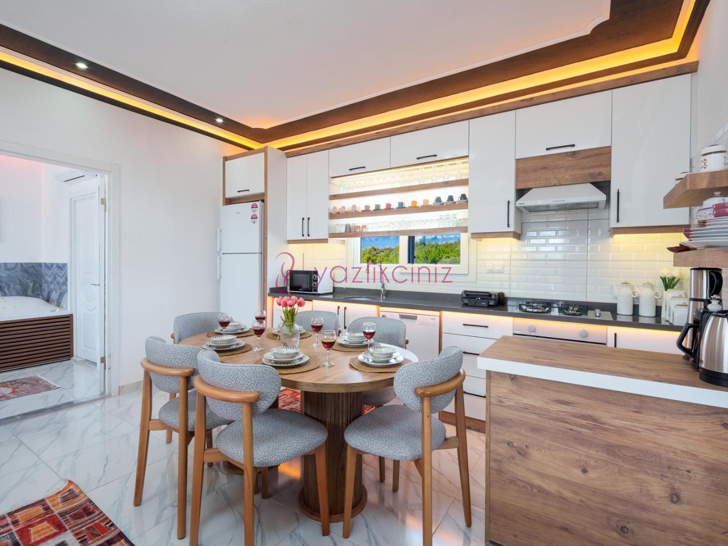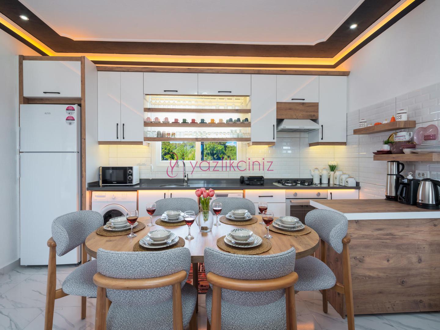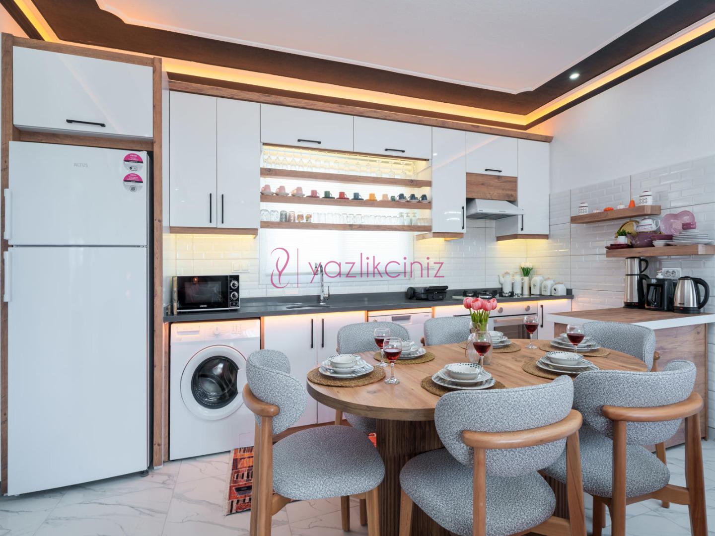 Modern Amerikan mutfak, buzdolabı, microdalga, bulaşık makinesi, çamaşır makinesi, ankastre fırın, kahve makinesi, mama sandalyesi, tost makinesi, ekmek kızartma makinesi, ankastre 4’lü ocak, elektrikli su ısıtıcısı(kettle), yemek masası, yemek takımı, çeşitli mutfak araç gereçleri bulunmaktadır.