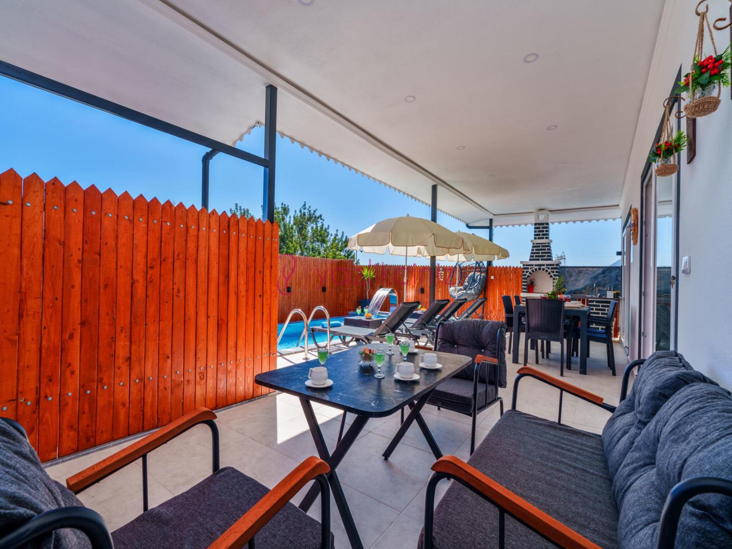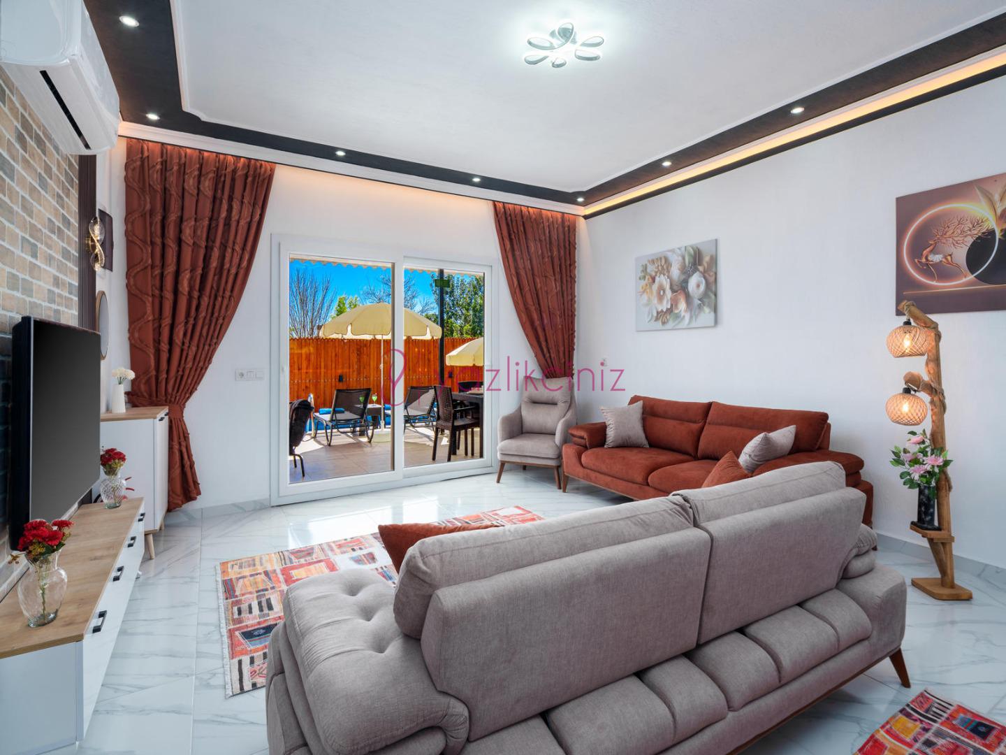 Oturma grubu, uydu alıcı, televizyon, klima, orta sehpa, internet ve havuza çıkış bulunmaktadır.