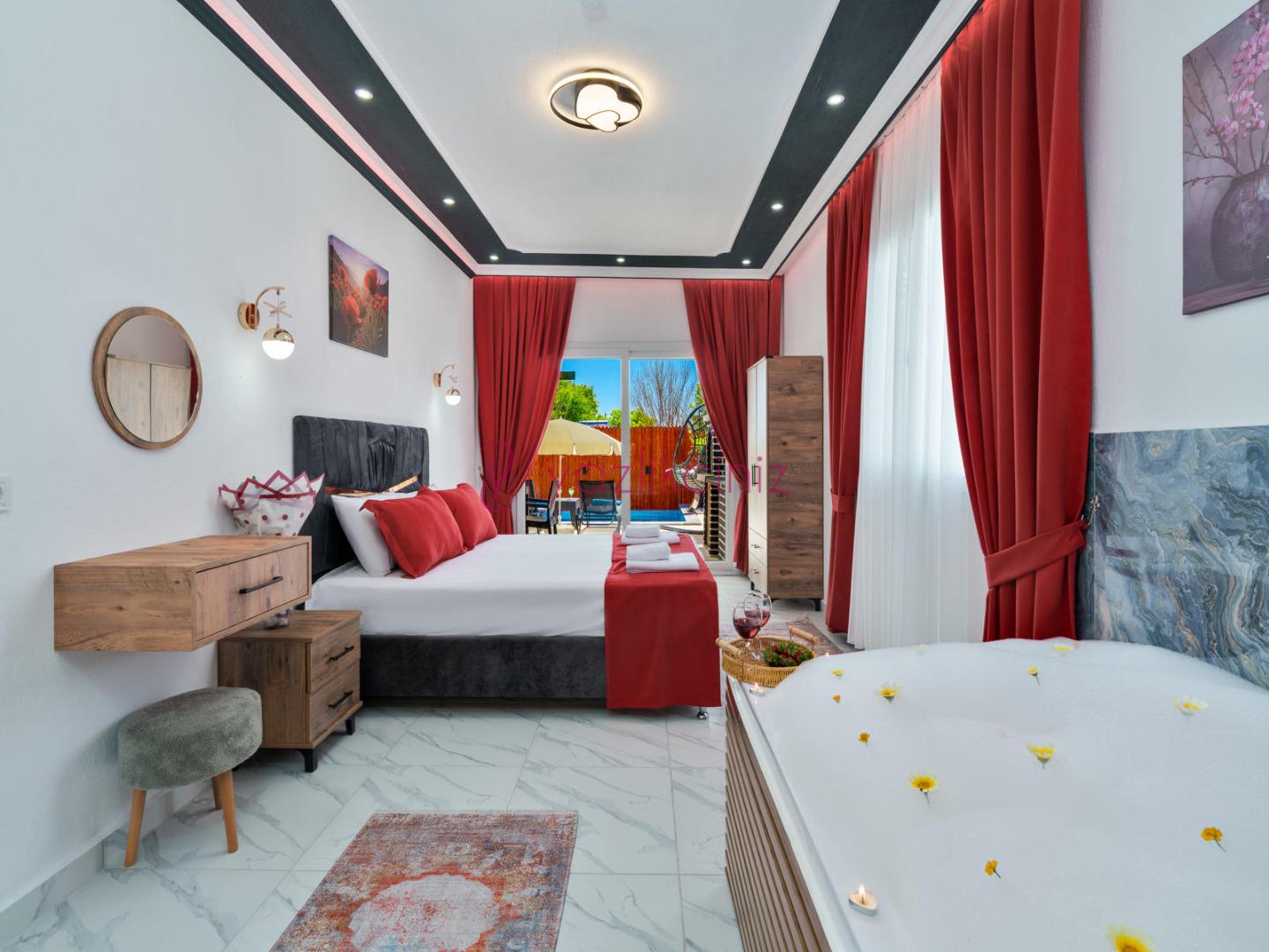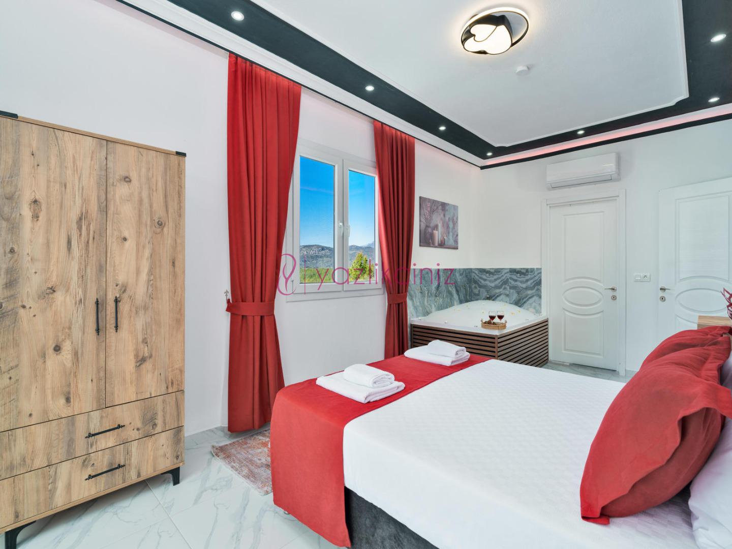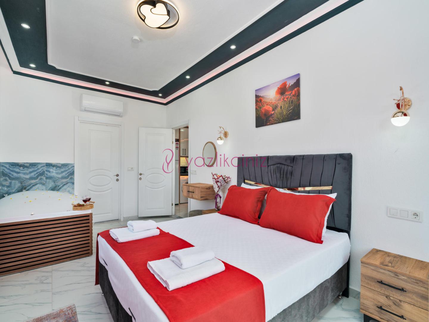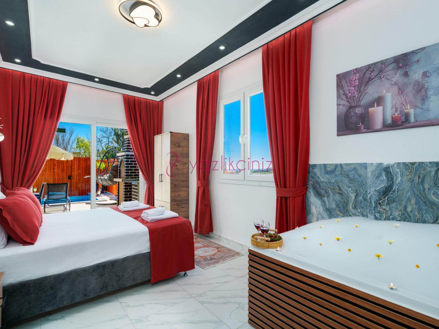 2. Yatak Odası: 1 adet çift kişilik yatak, 1 adet tek kişilik yatak, jakuzi, televizyon, klima, komodin, elbise dolabı, makyaj masası, banyo ve tuvalet bulunmaktadır.
