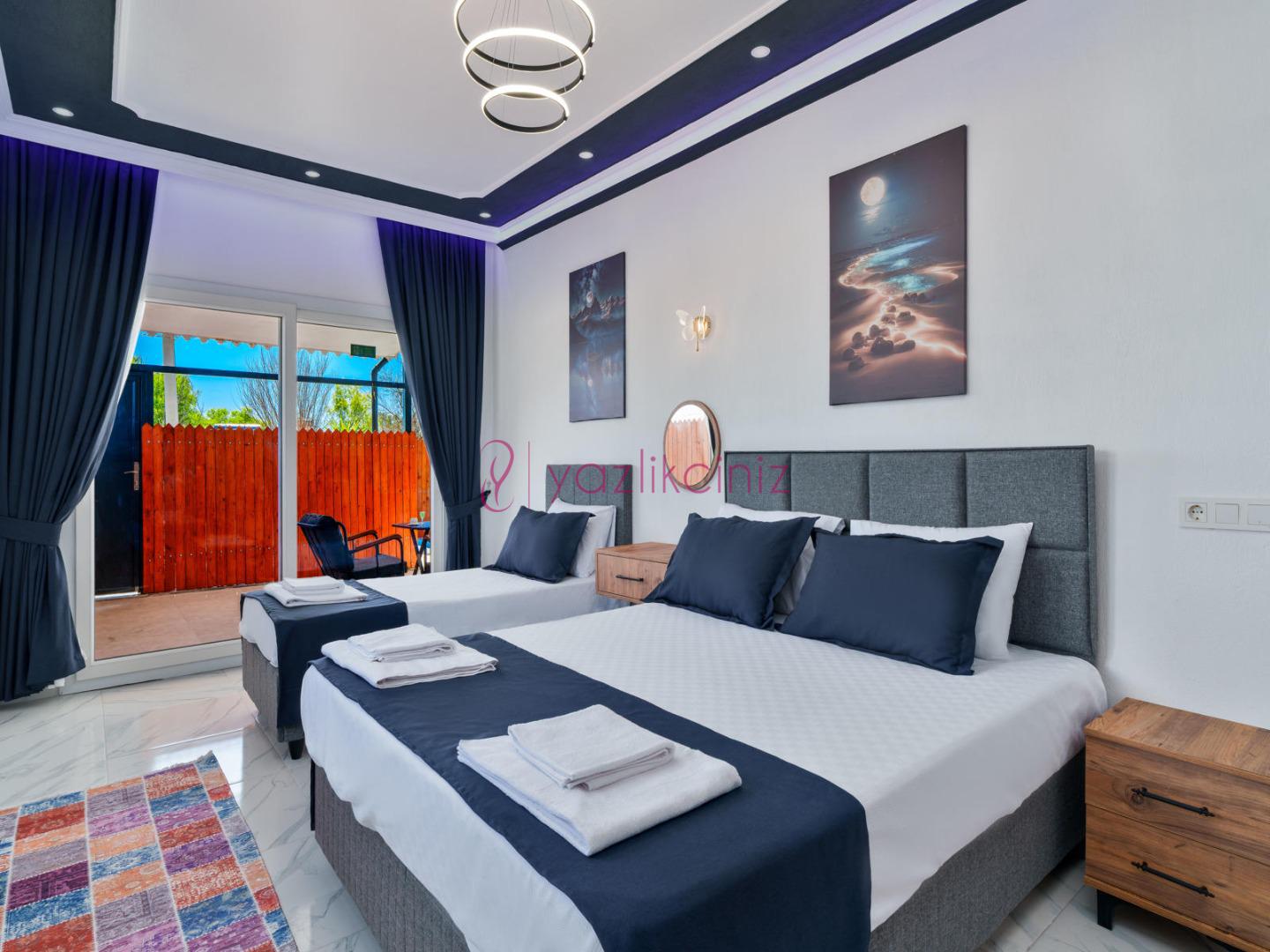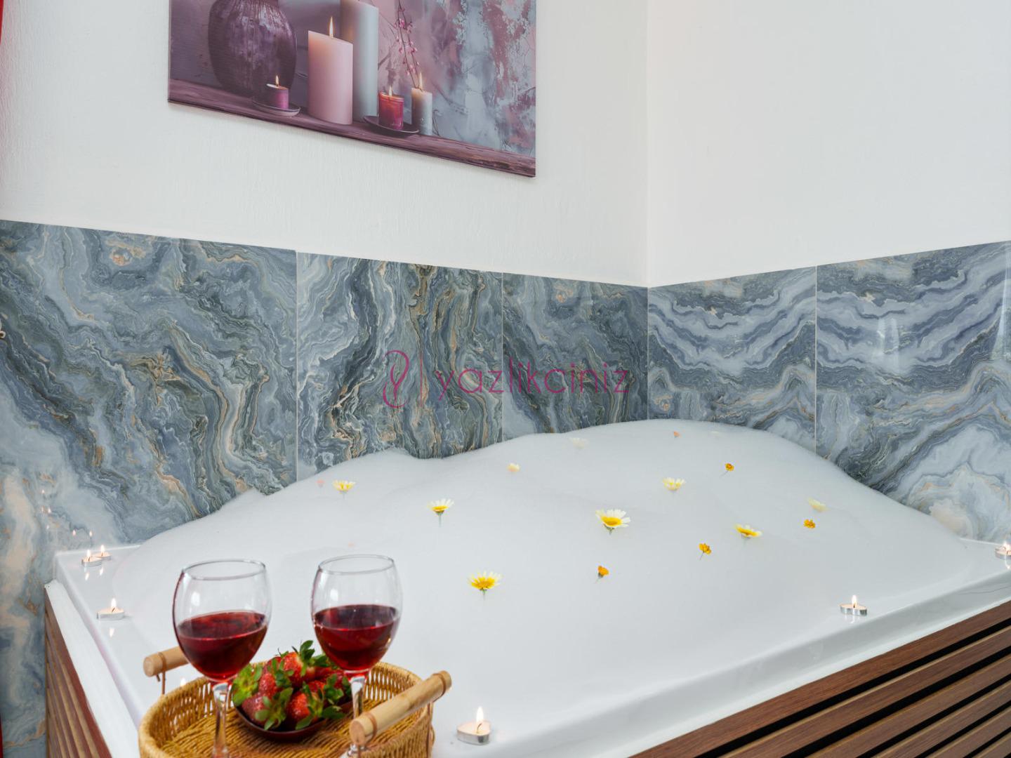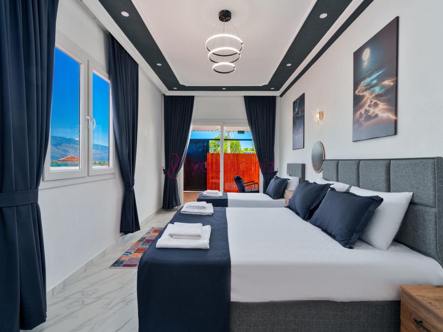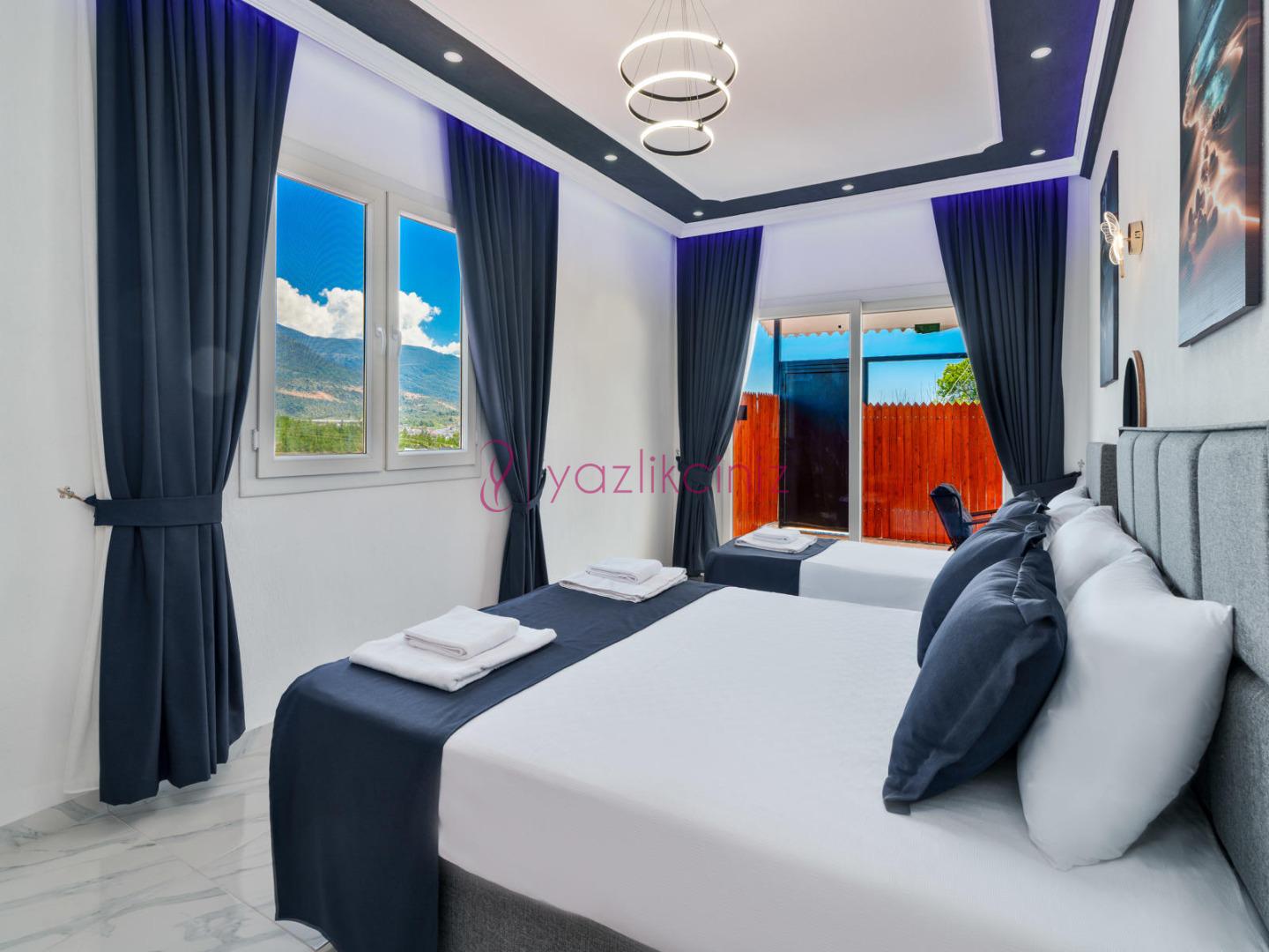 2. Yatak Odası: 1 adet çift kişilik yatak, 1 adet tek kişilik yatak, jakuzi, televizyon, klima, komodin, elbise dolabı, makyaj masası, banyo ve tuvalet bulunmaktadır.